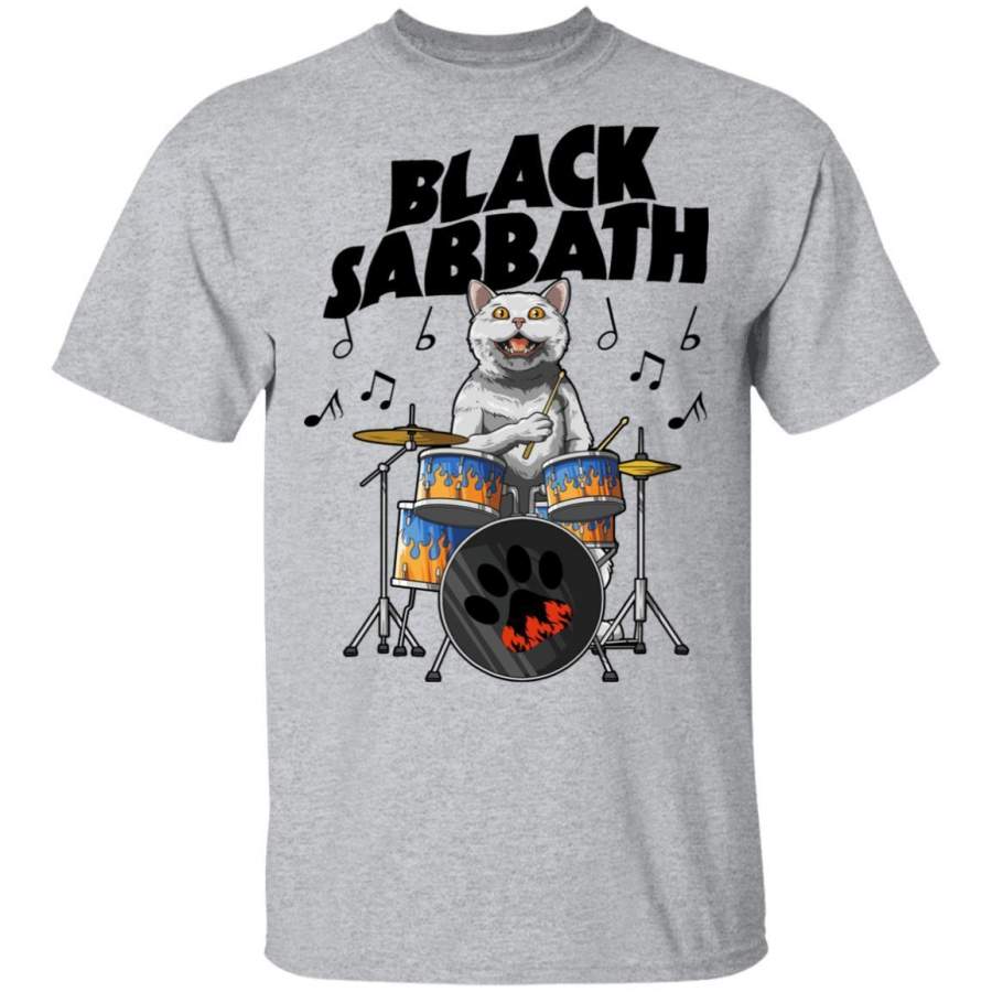 Cat Drummer Black Sabbath T-shirt Rock Tee MT04