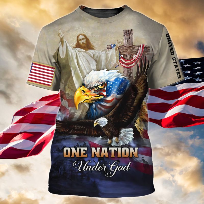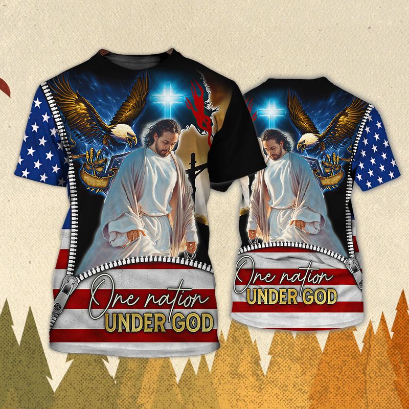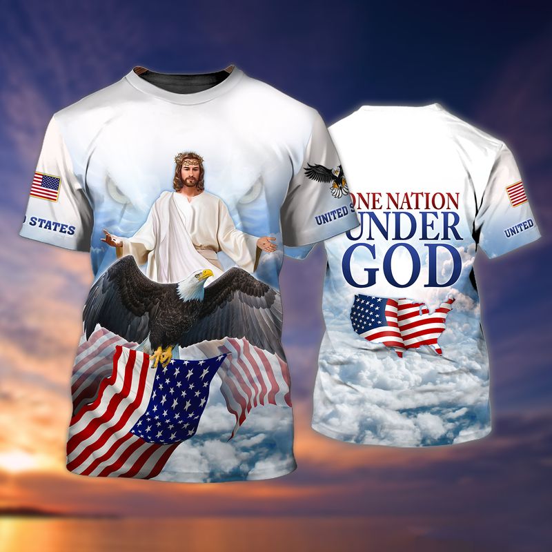 Christian Jesus 3D Full Print, Jesus One Nation Under God, Faith Christian Jesus 3D Shirt For Men, Woman