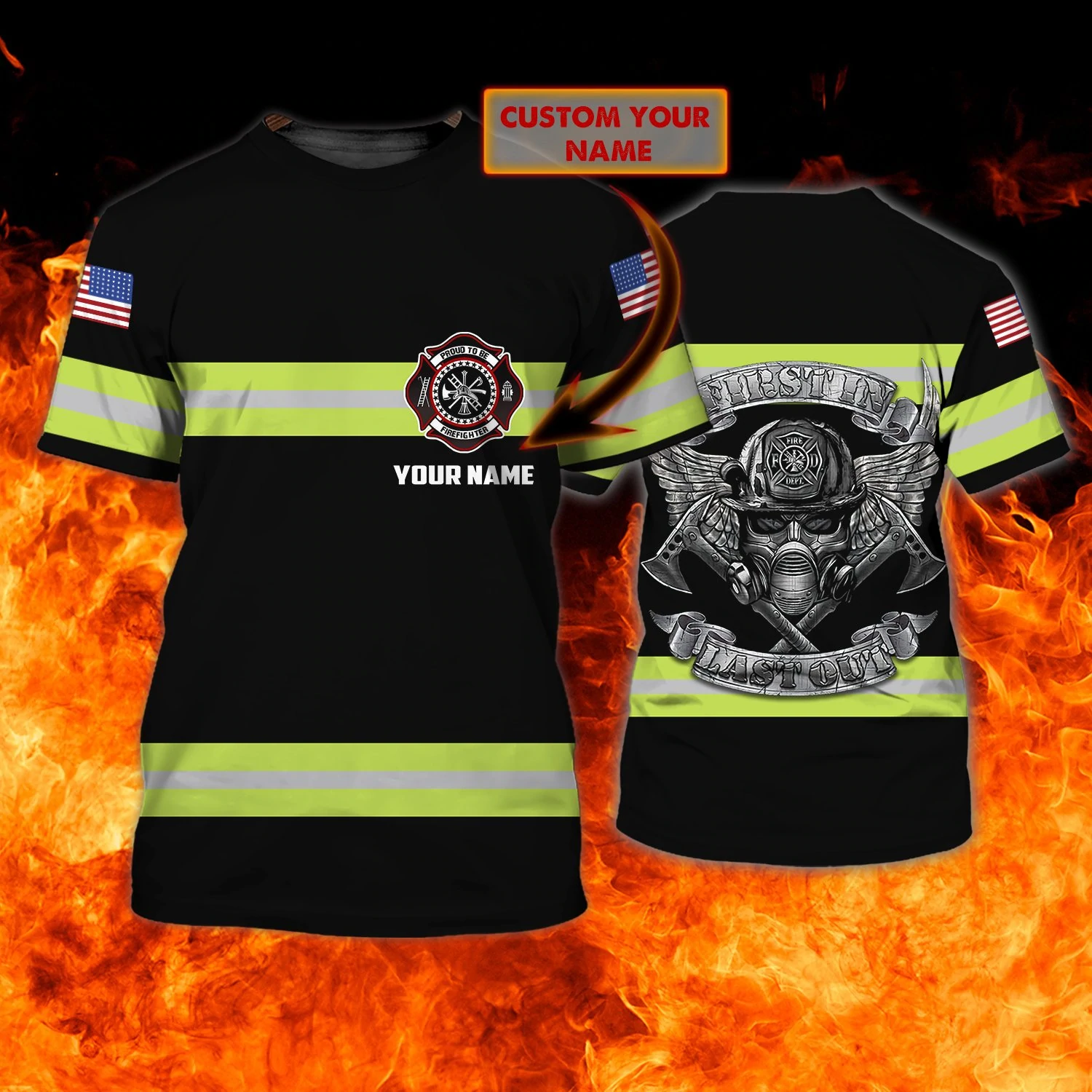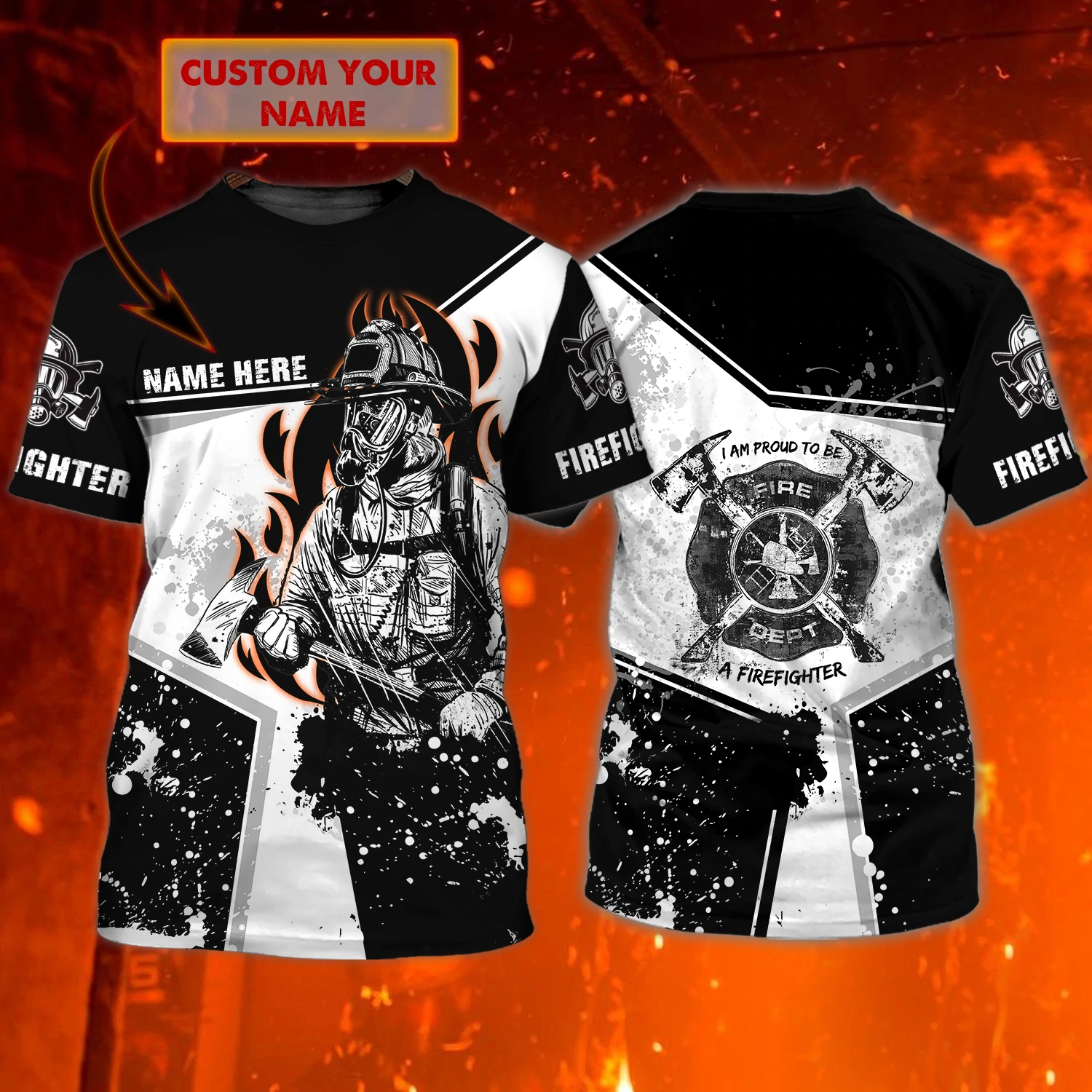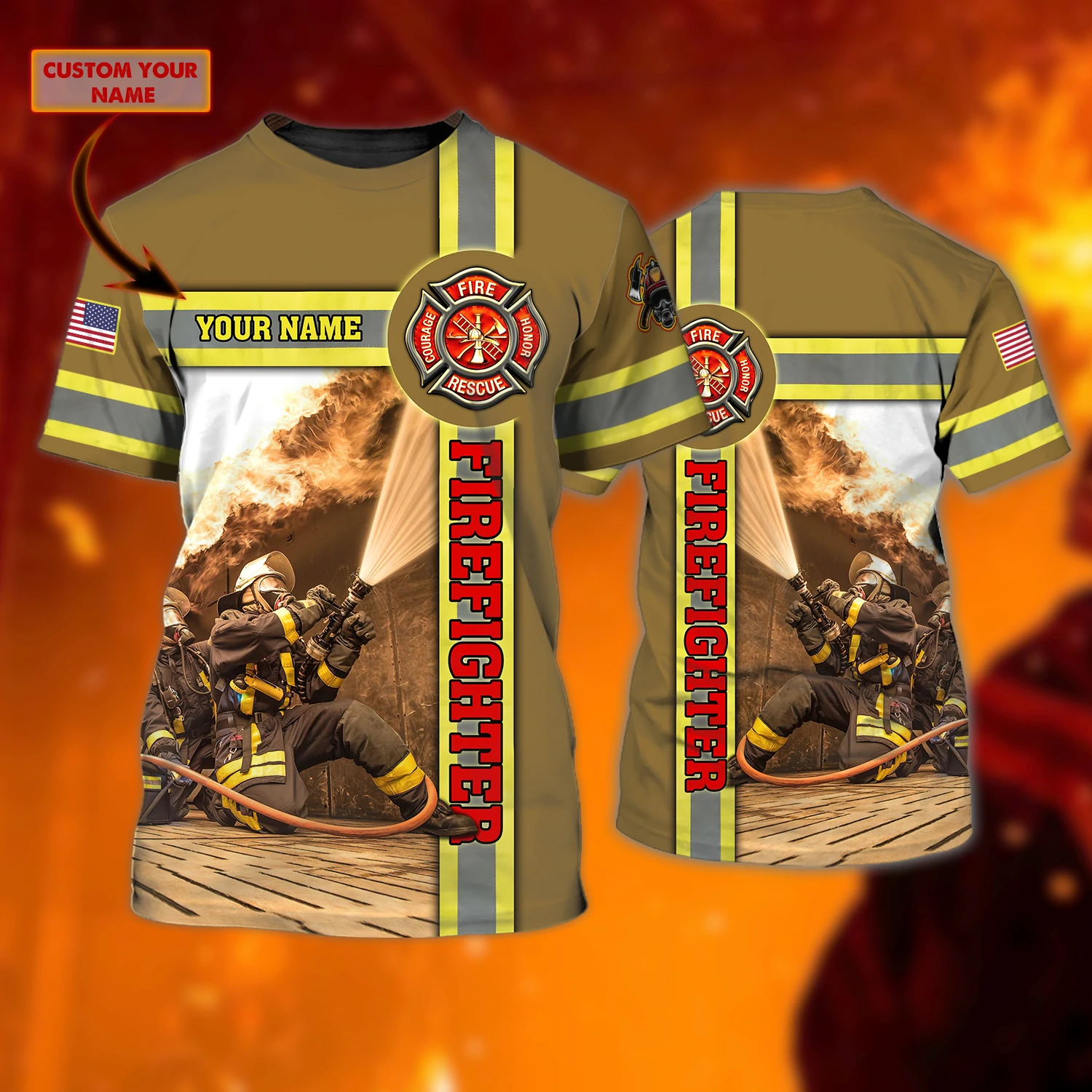 Customize Name Firefighter 3D All Printed T-Shirt For Men And Women