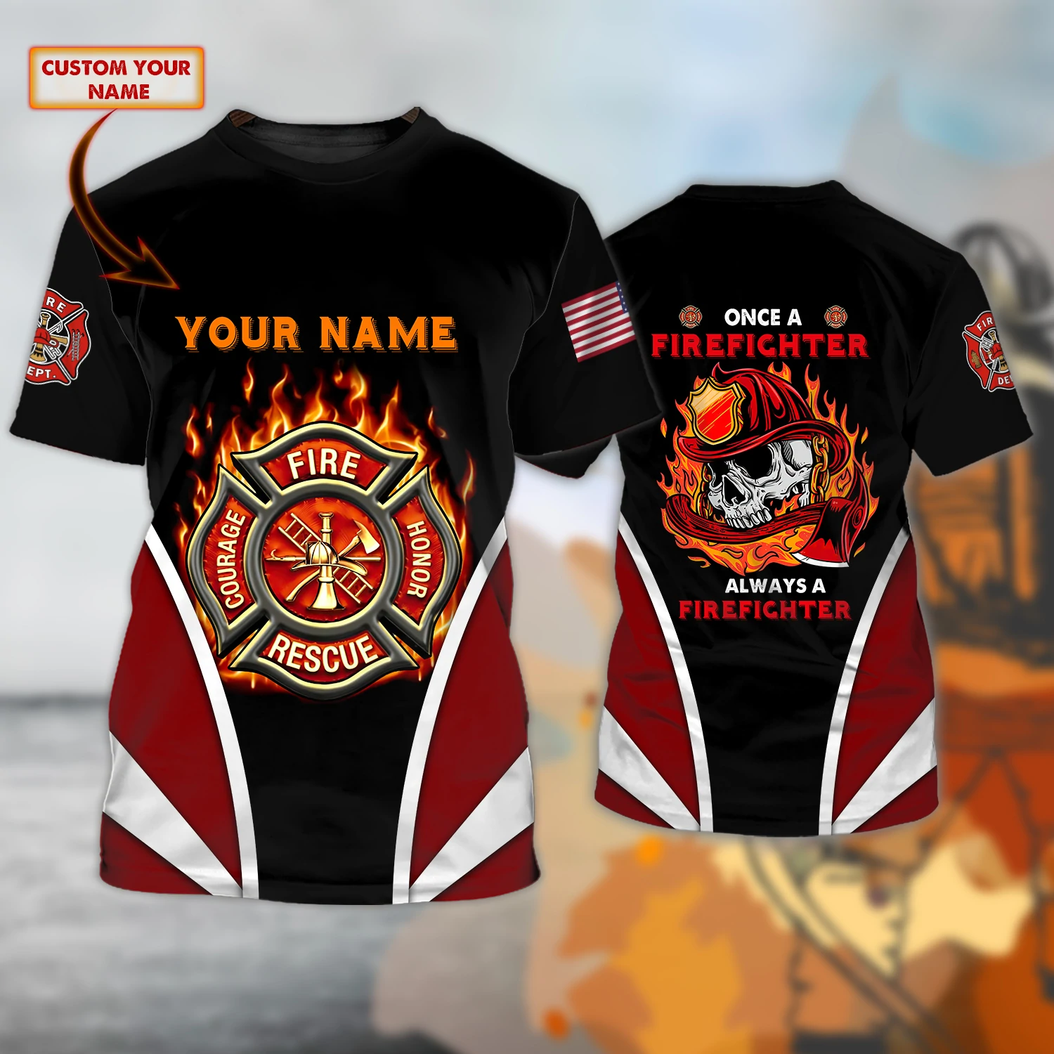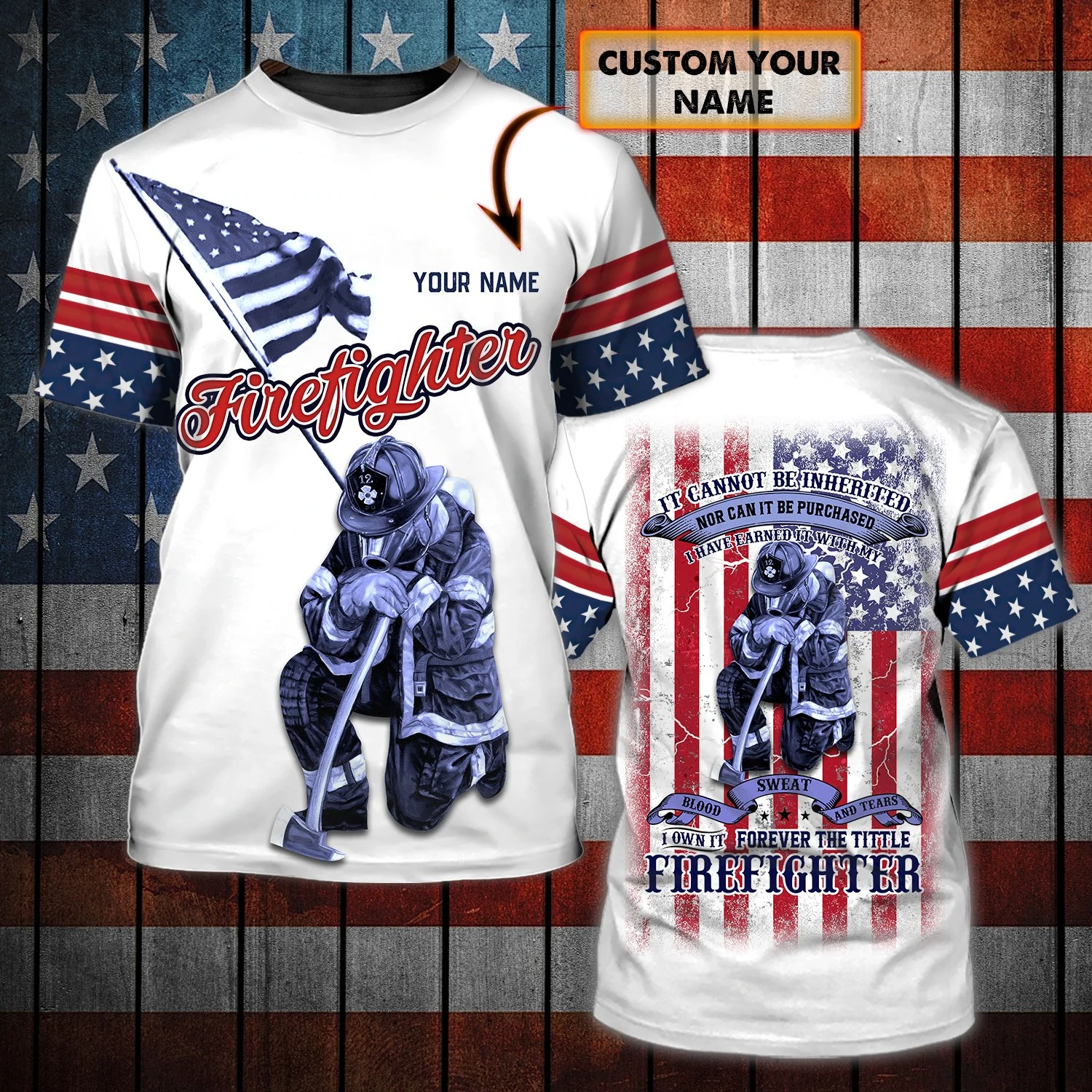 Customize Name Firefighter 3D All Printed T-Shirt For Men, Firefighter Gift, Fireman Shirt