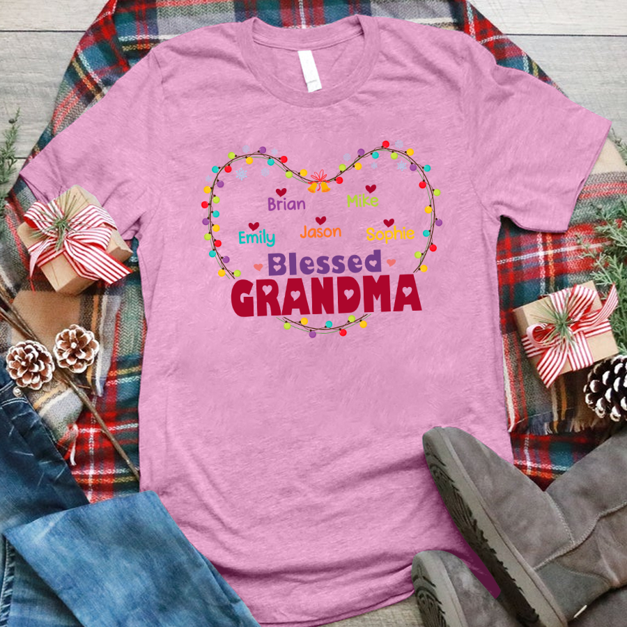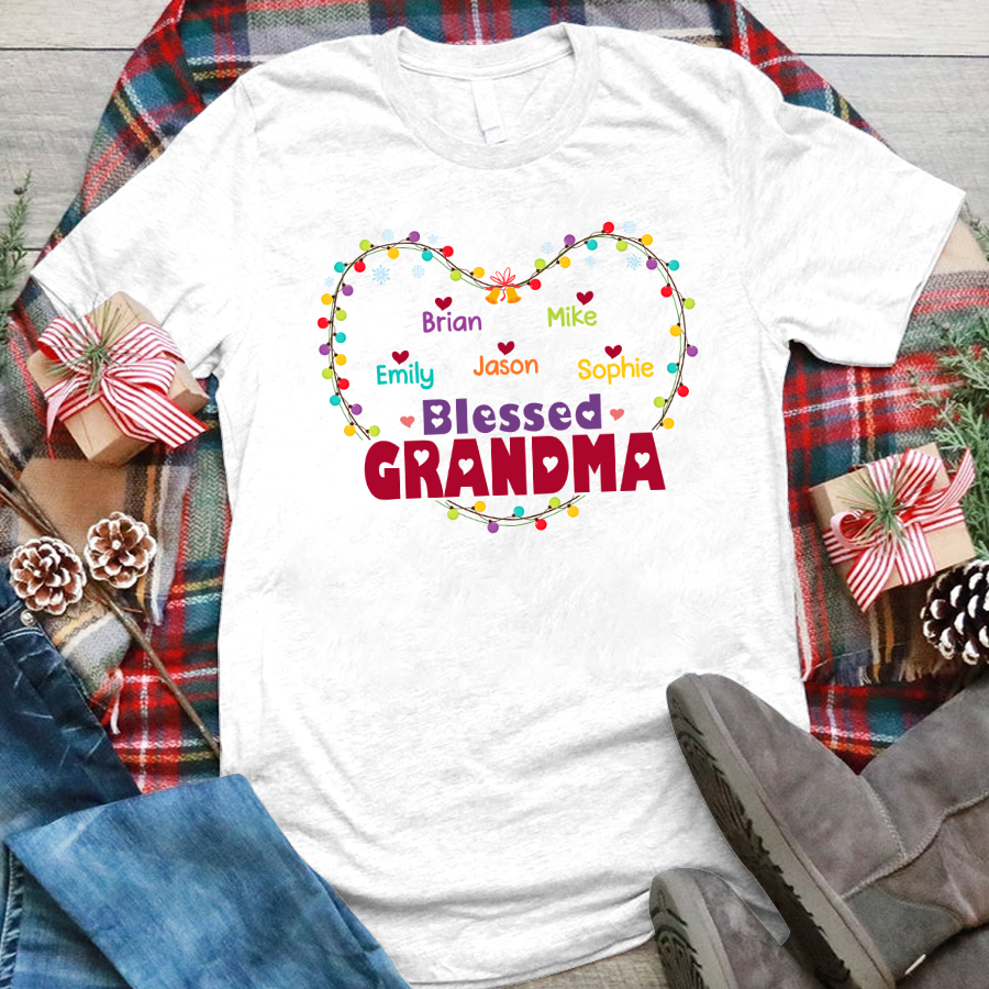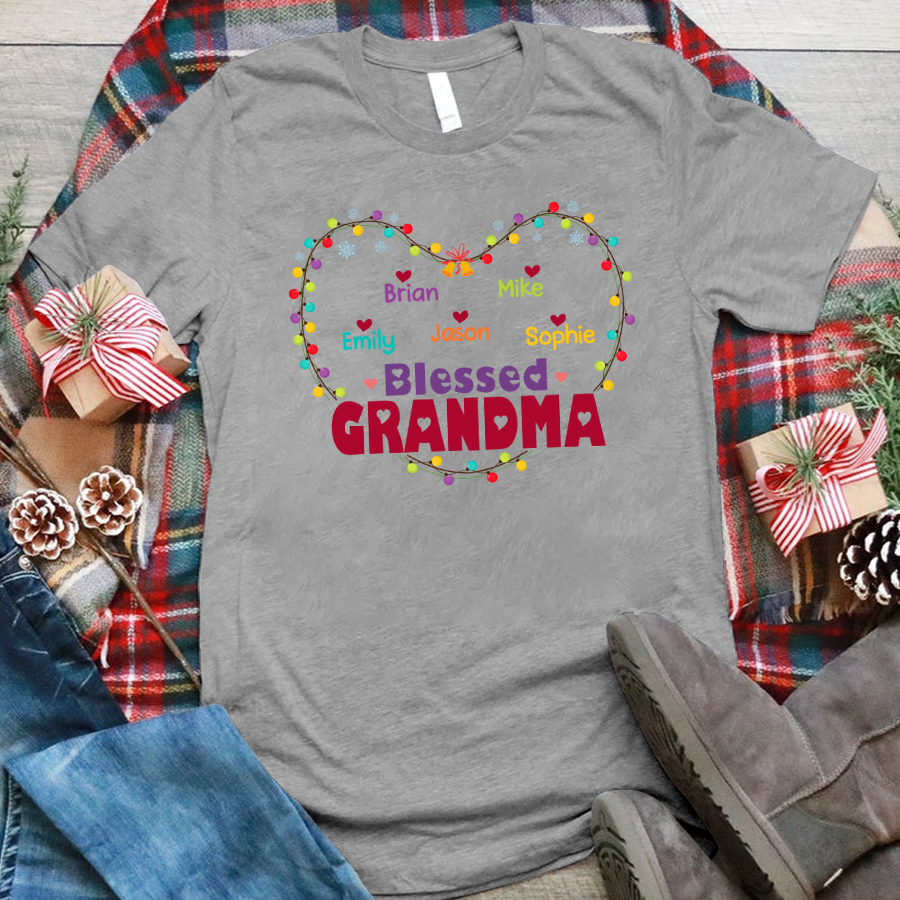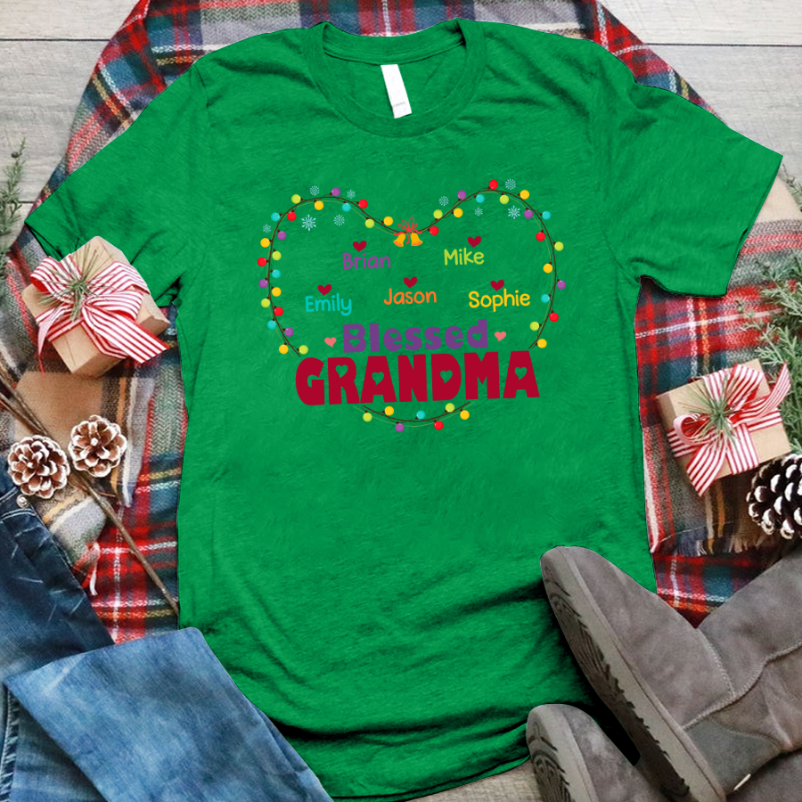 Personalized Blessed Grandma Christmas Shirt, Custom Grandkids Grandma Shirt