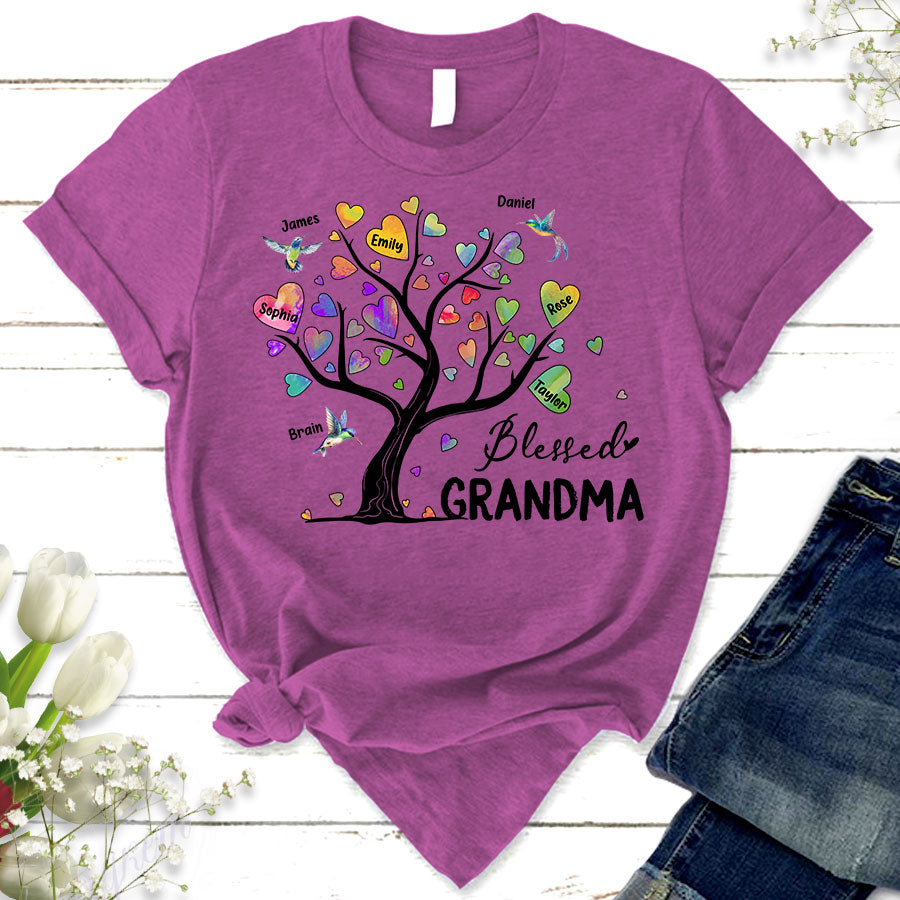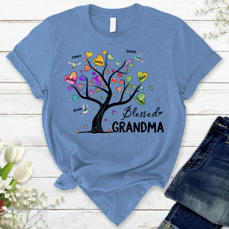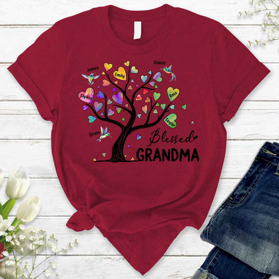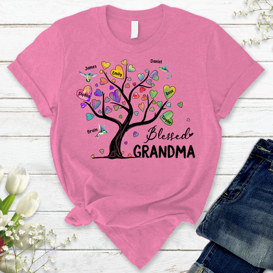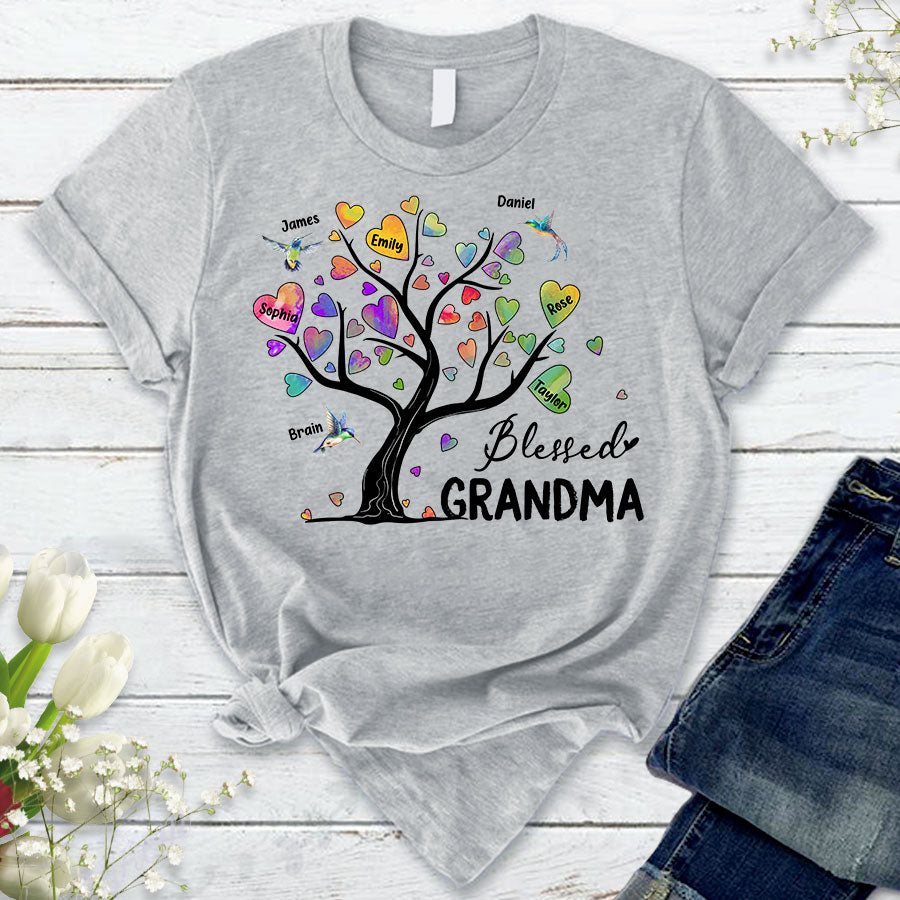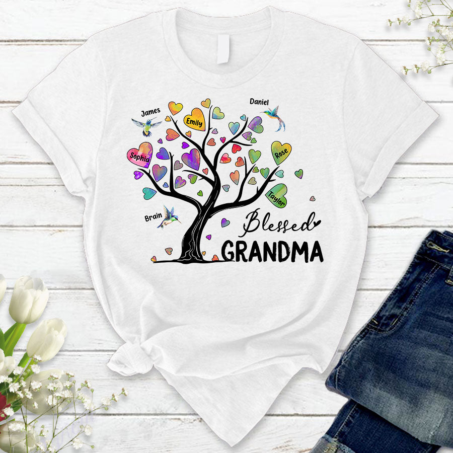 Personalized Blessed Grandma With Grandkids Love Tree Heart T-Shirt L94
