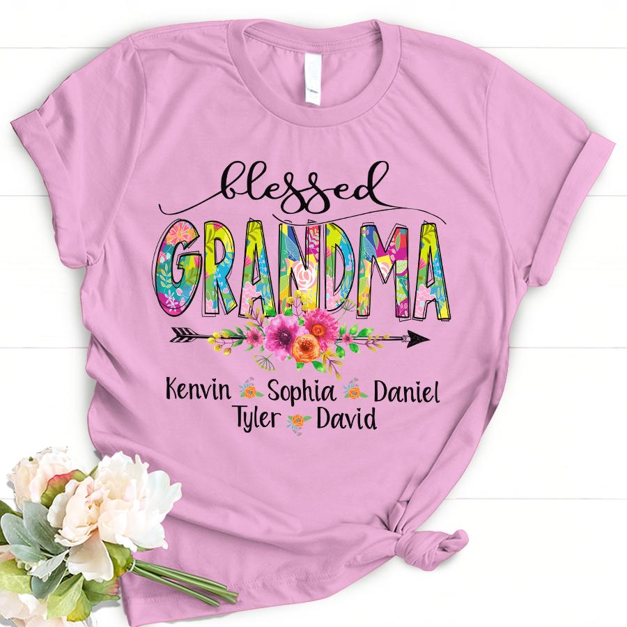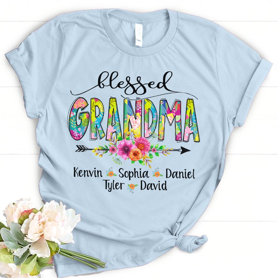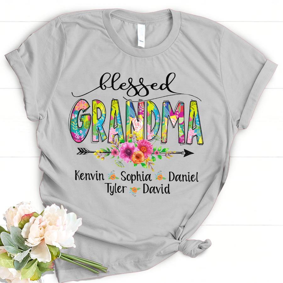 Personalized Blessed Grandma With Grandkids T-Shirt Women