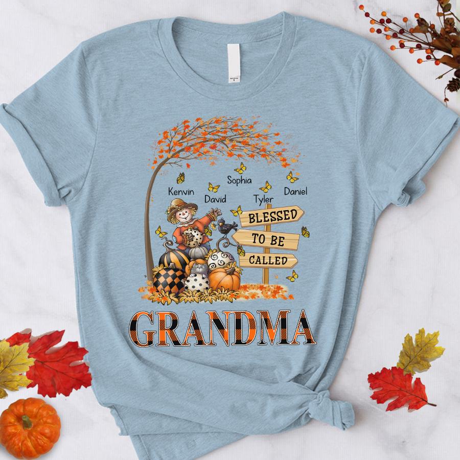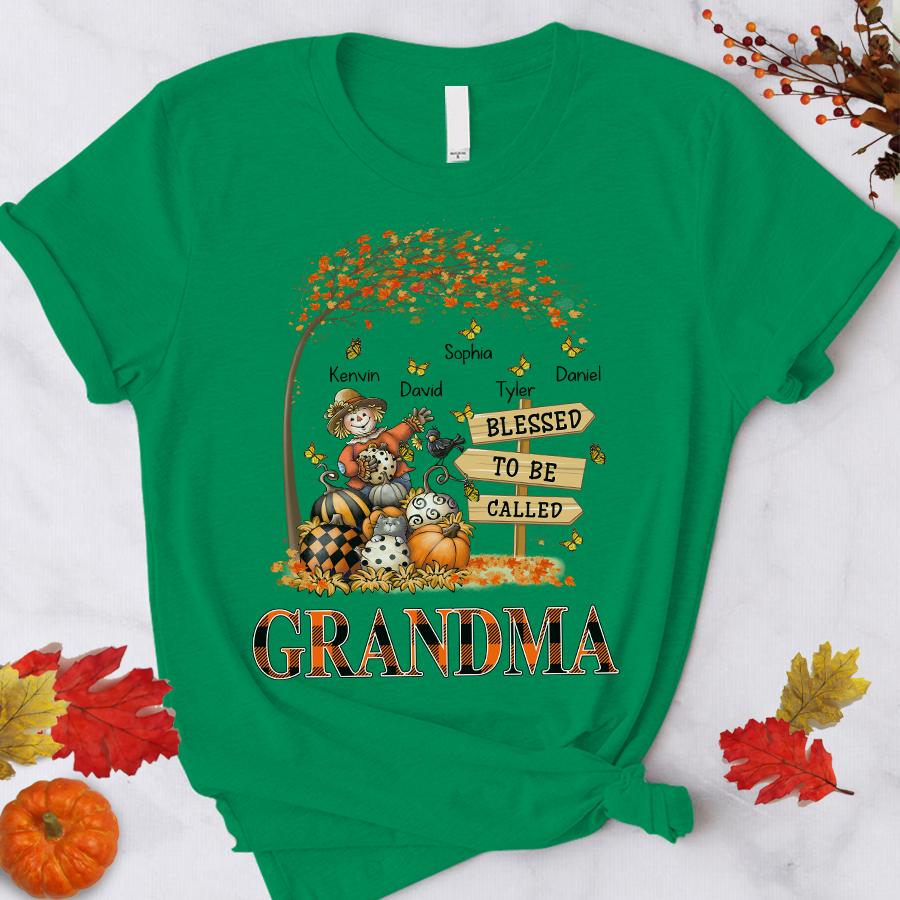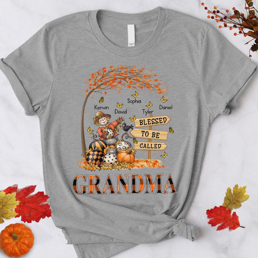 Personalized Blessed To Be Called Grandma, Personalized Fall Shirt For Grandma With Grandkids Names Women