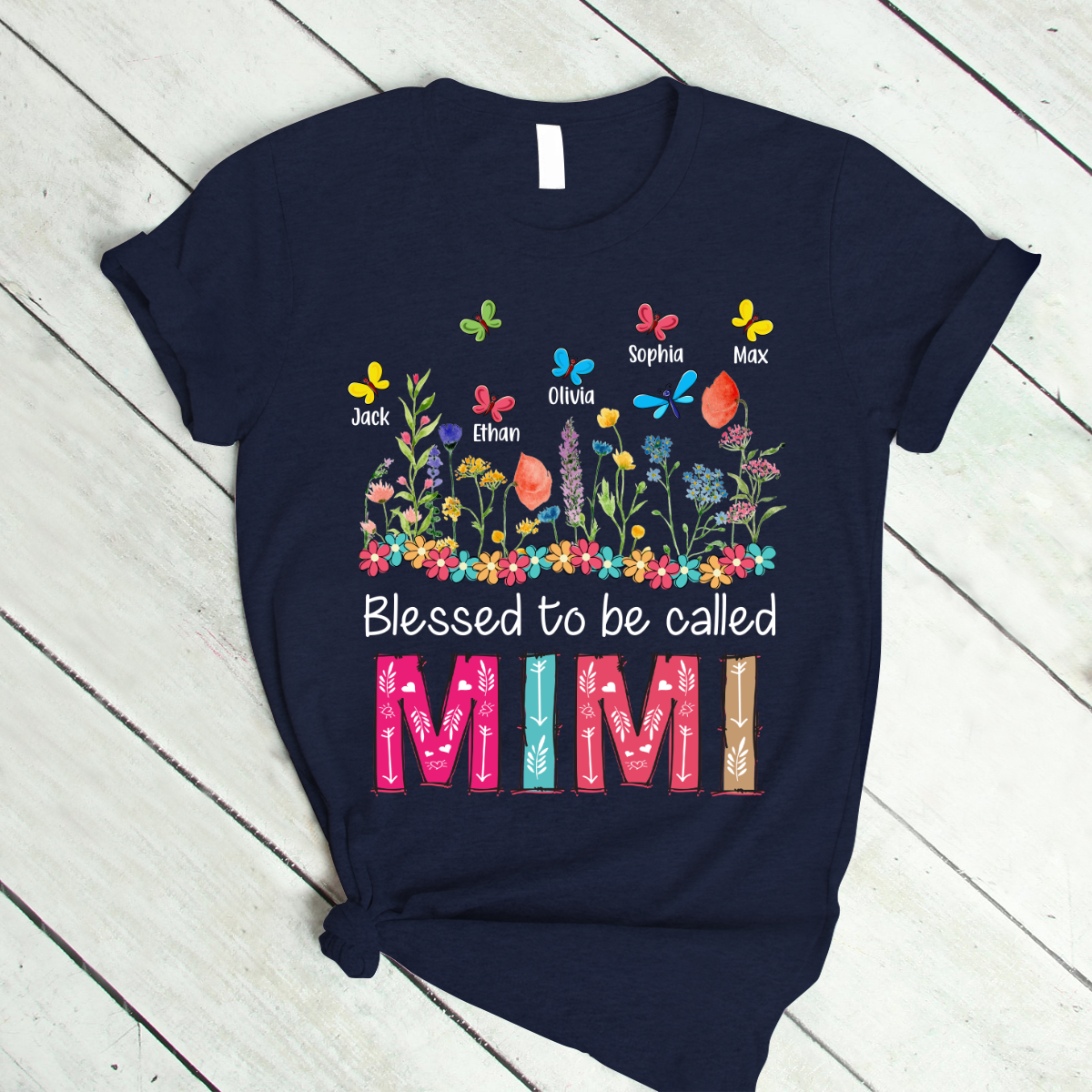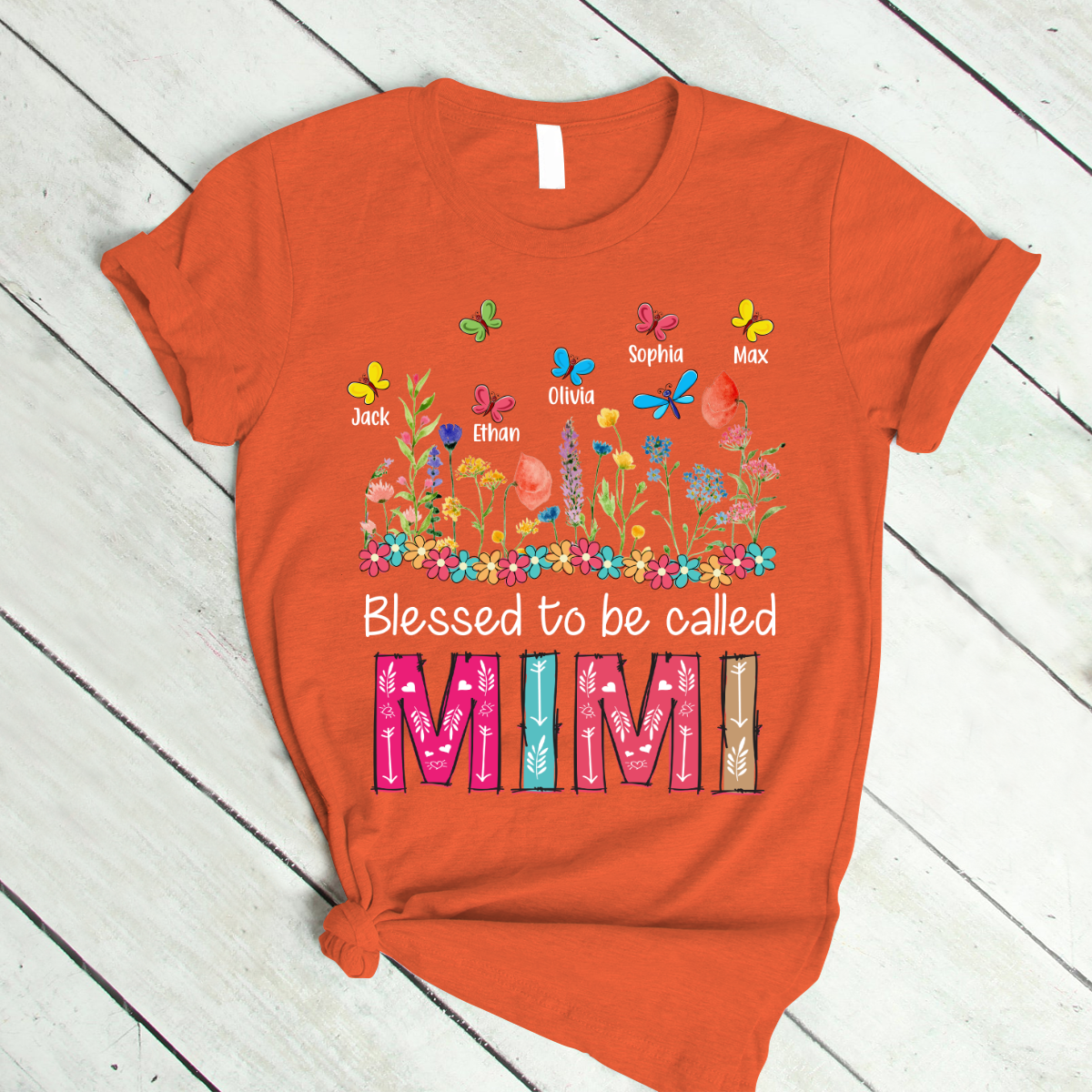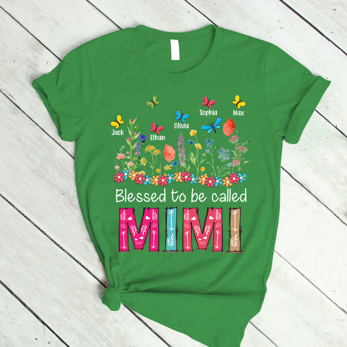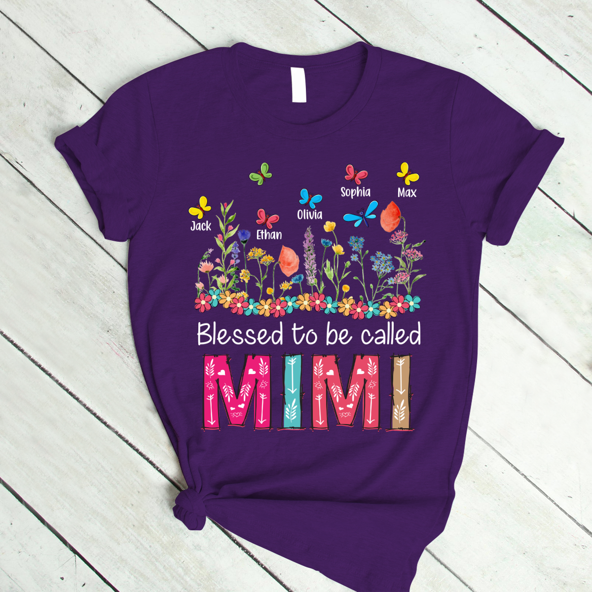 Personalized Blessed To Be Called Grandma With Grandkids Watercolor T-Shirt