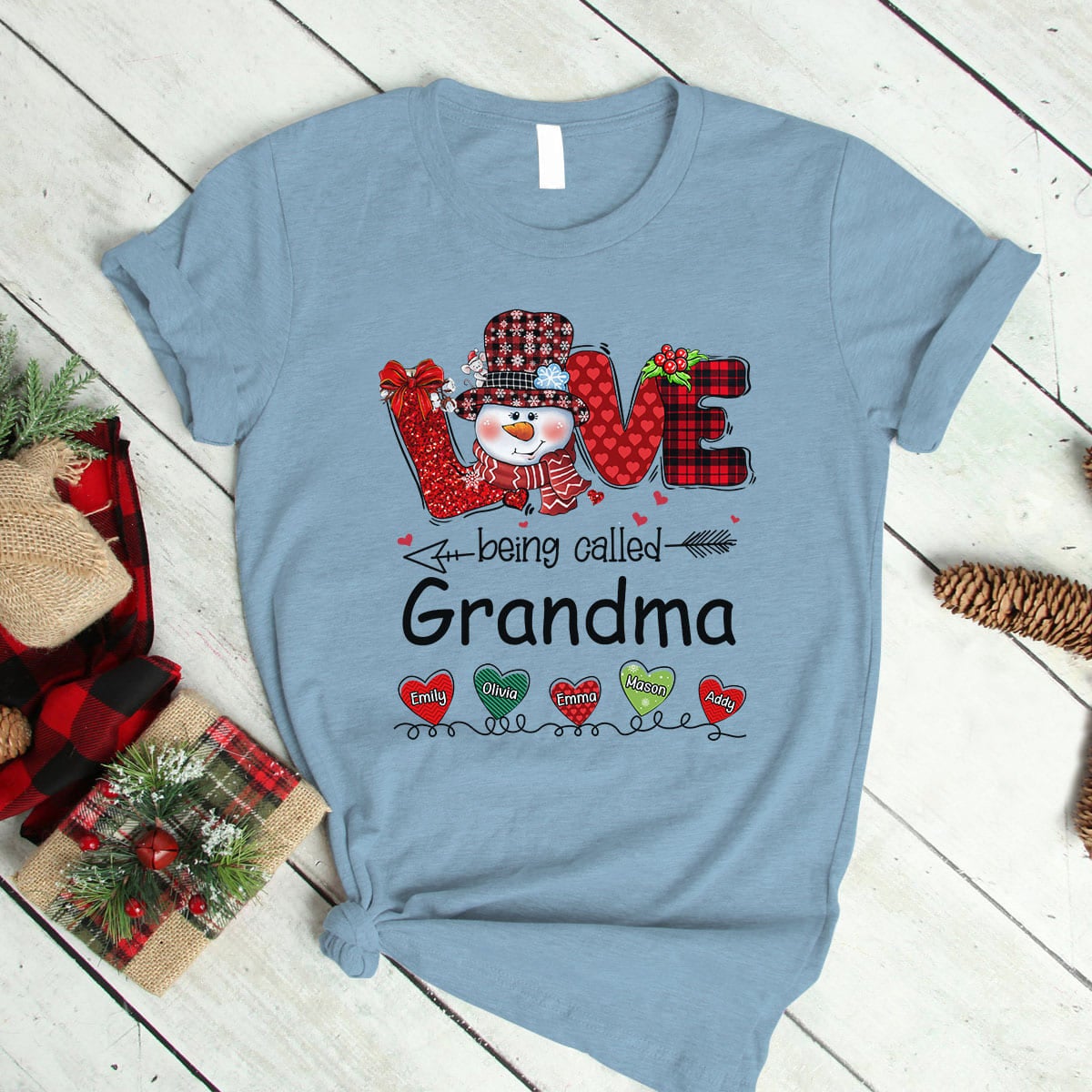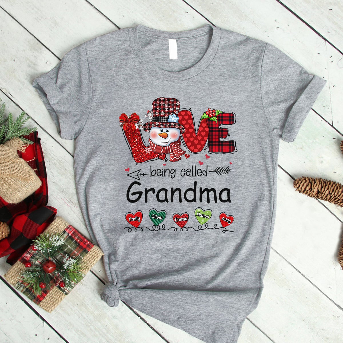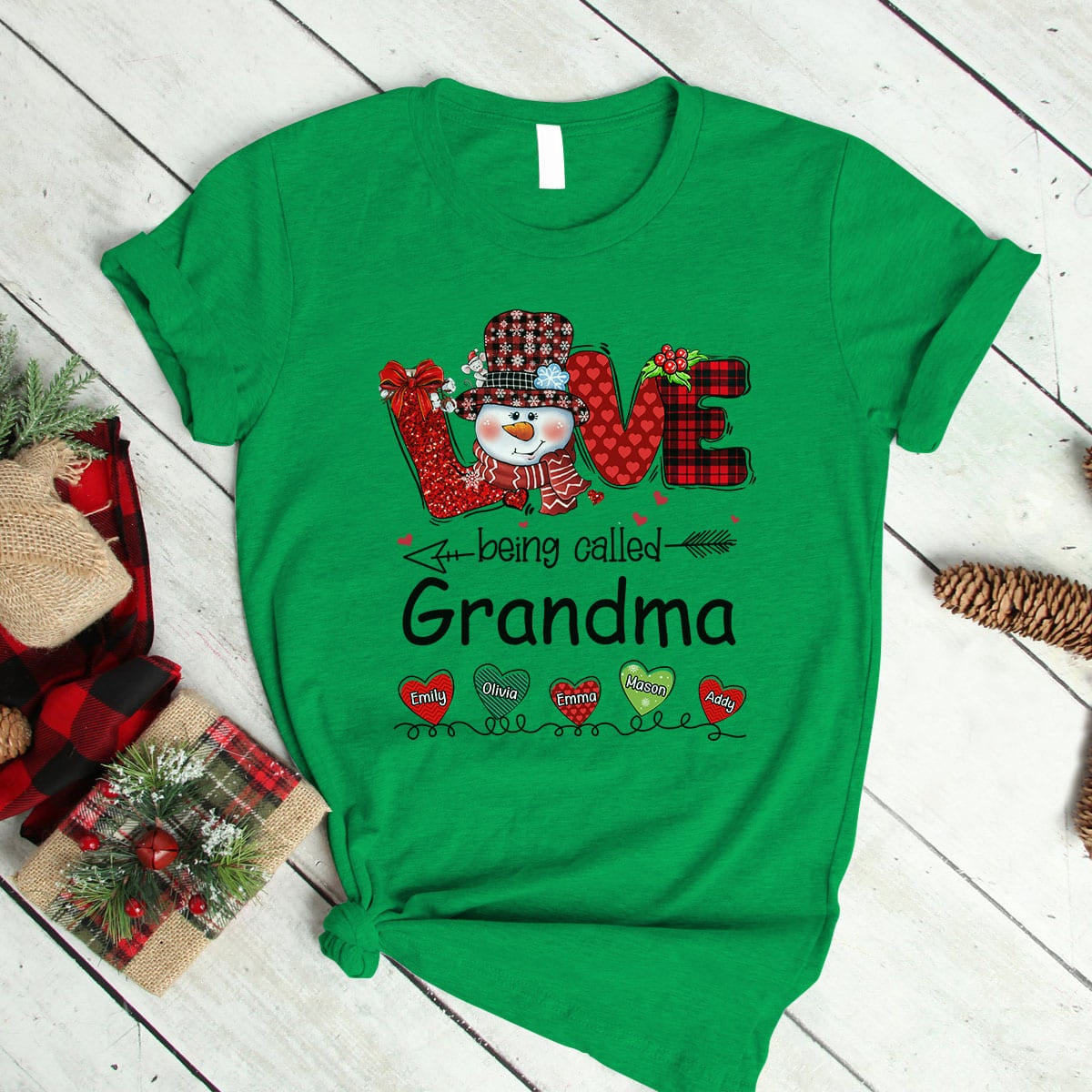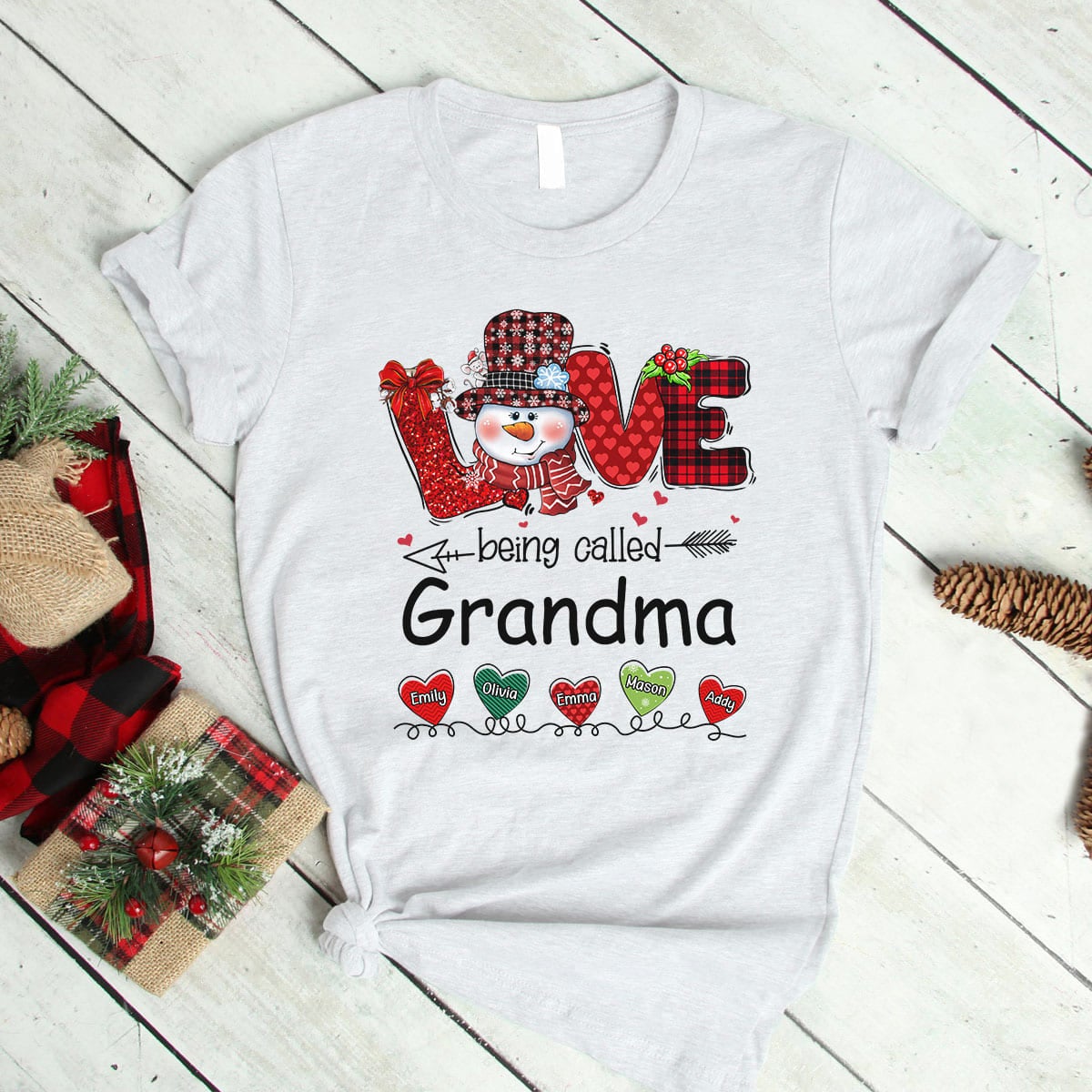 Personalized Christmas Grandma, Love Being Called Grandma, Snowman Shirt, Custom Grandkids Names Shirt