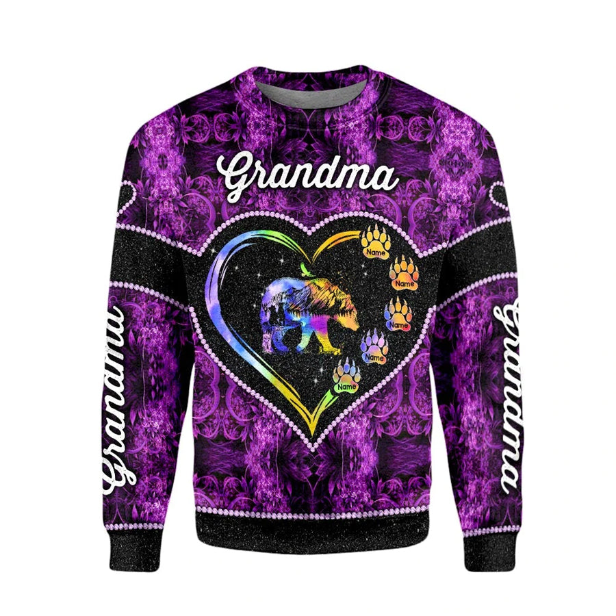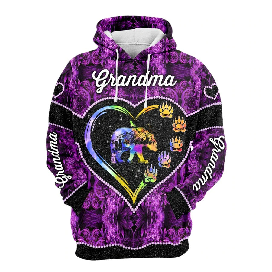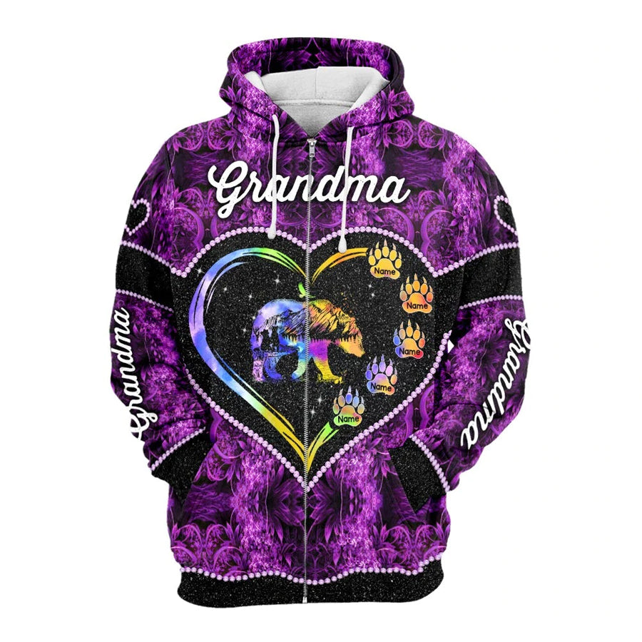 Personalized Grandma Bear Heart 3D Shirt, Grandma With Grandkids Name Bear 3D All Over Print Shirt Hoodie Zip Hoodie