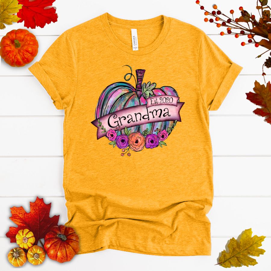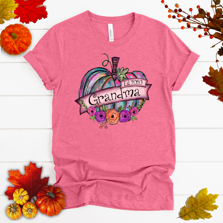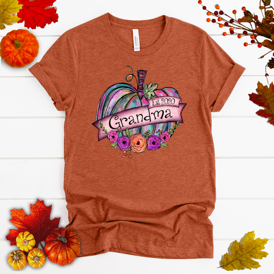Personalized Grandma Est Pumpkin Flower Classic Canvas Shirt