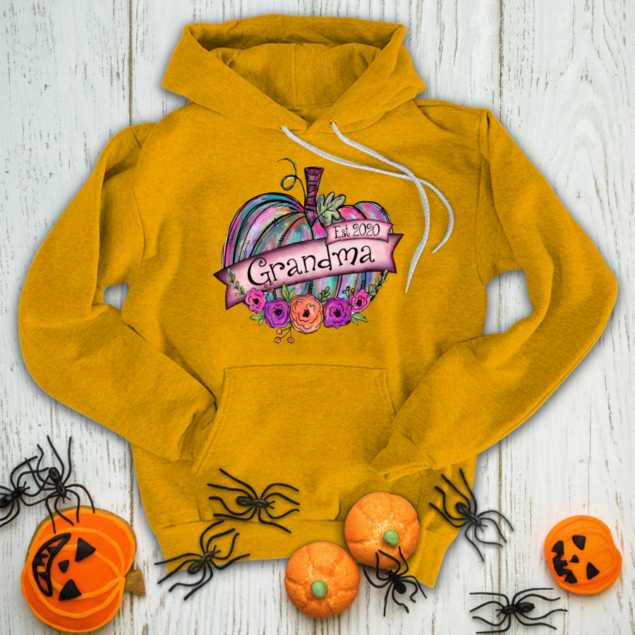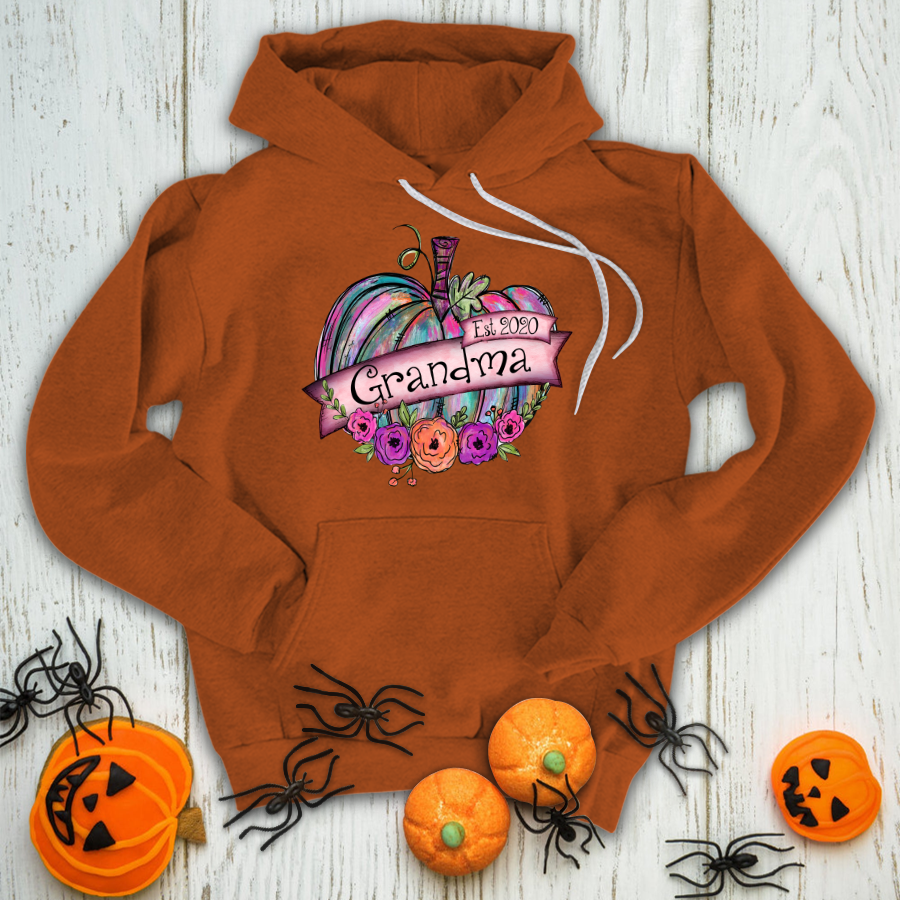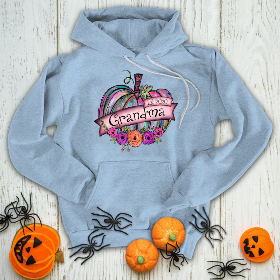 Personalized Grandma Est Pumpkin Flower Hoodie