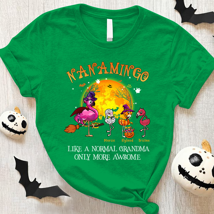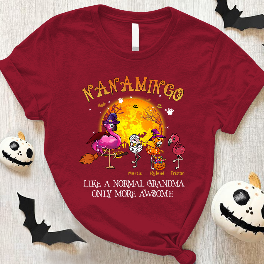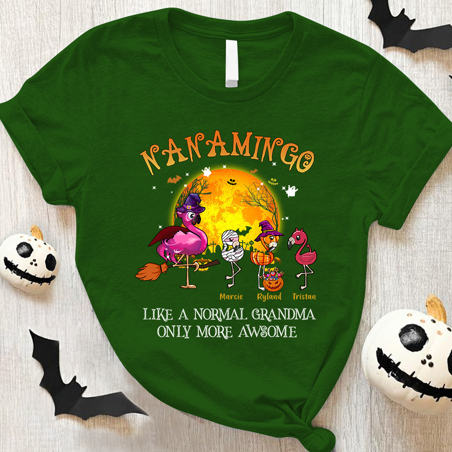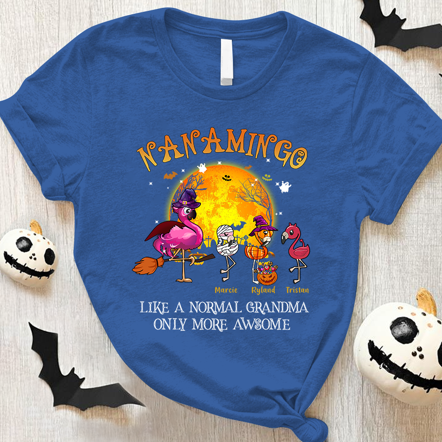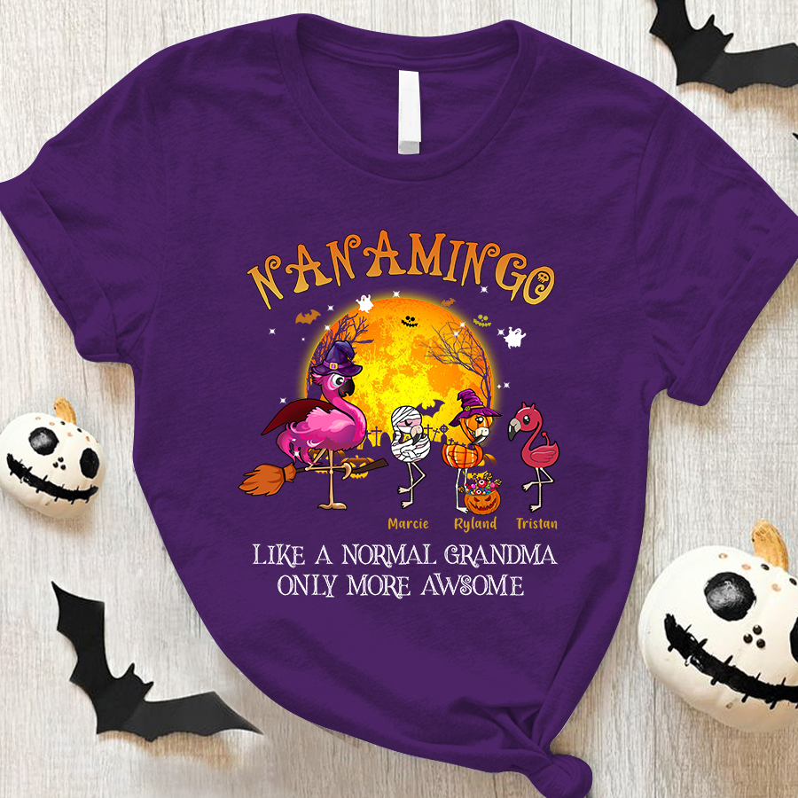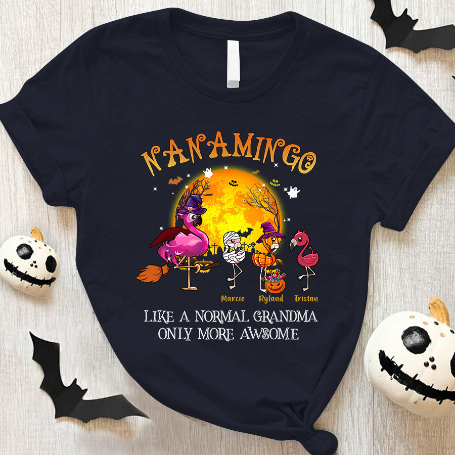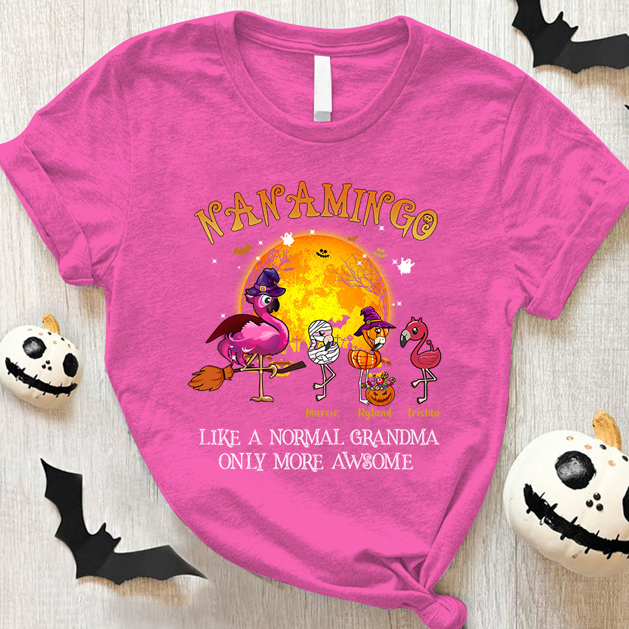 Personalized Grandma Flamingo Fall Halloween Tshirt Gift
