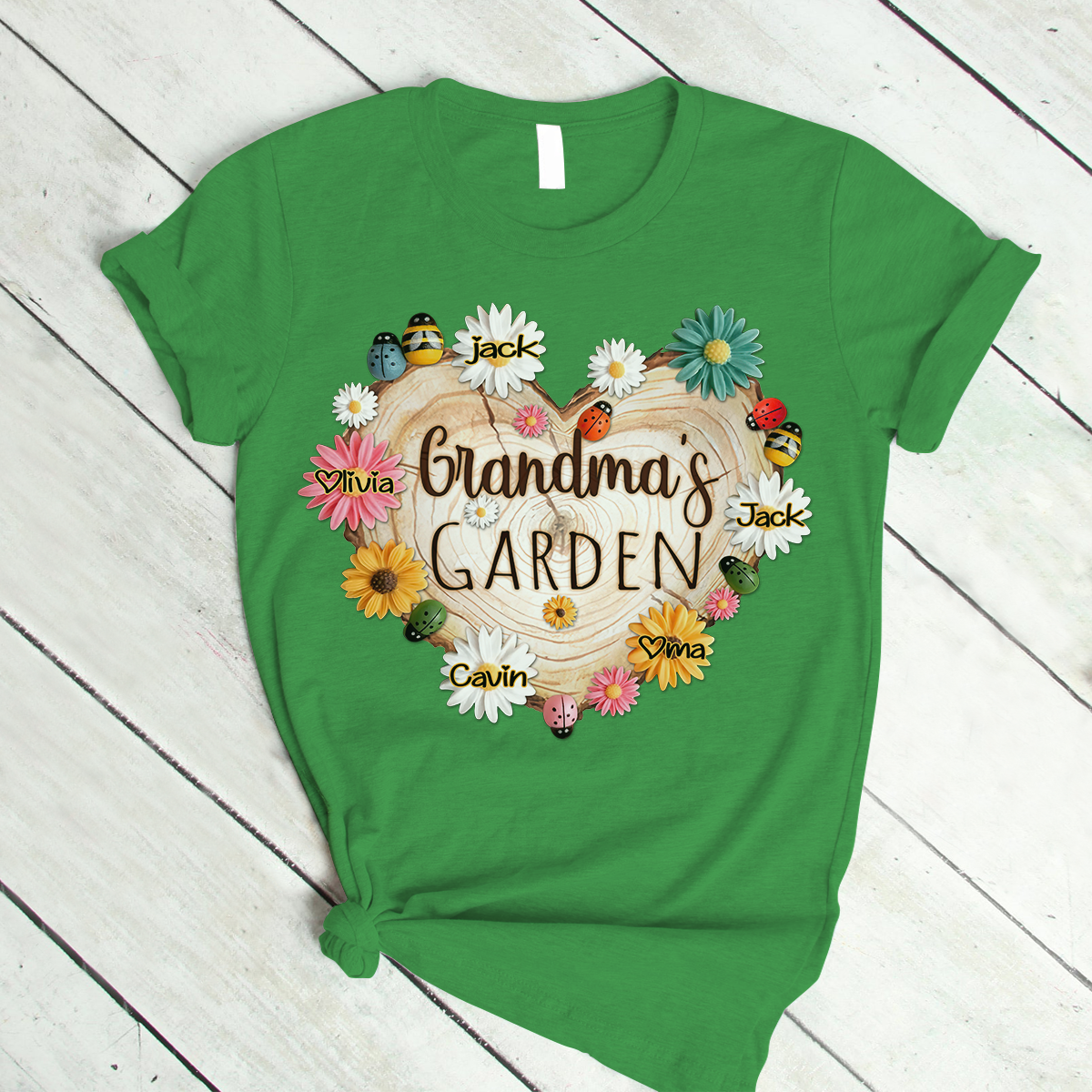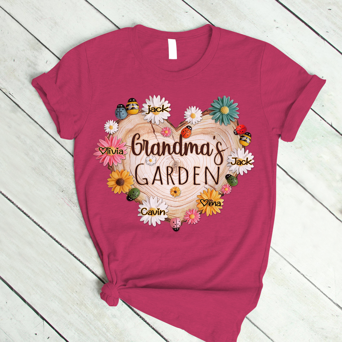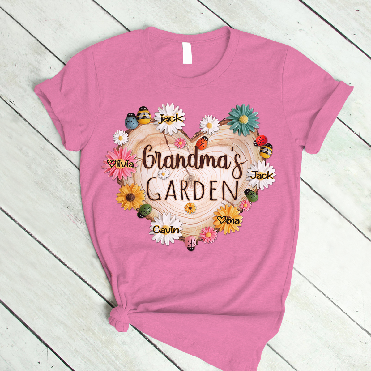 Personalized Grandma Garden With Grandkids Floral Ladybug And Bee T-Shirt