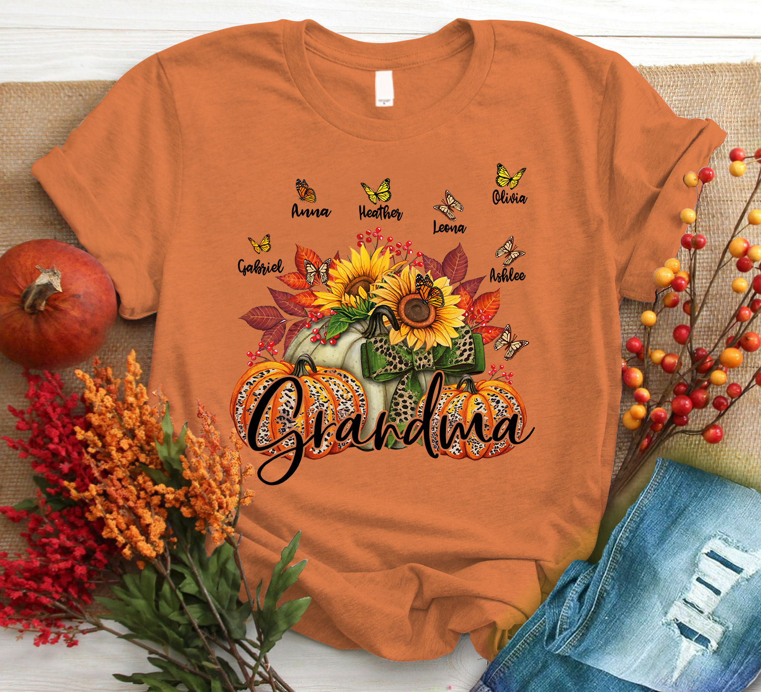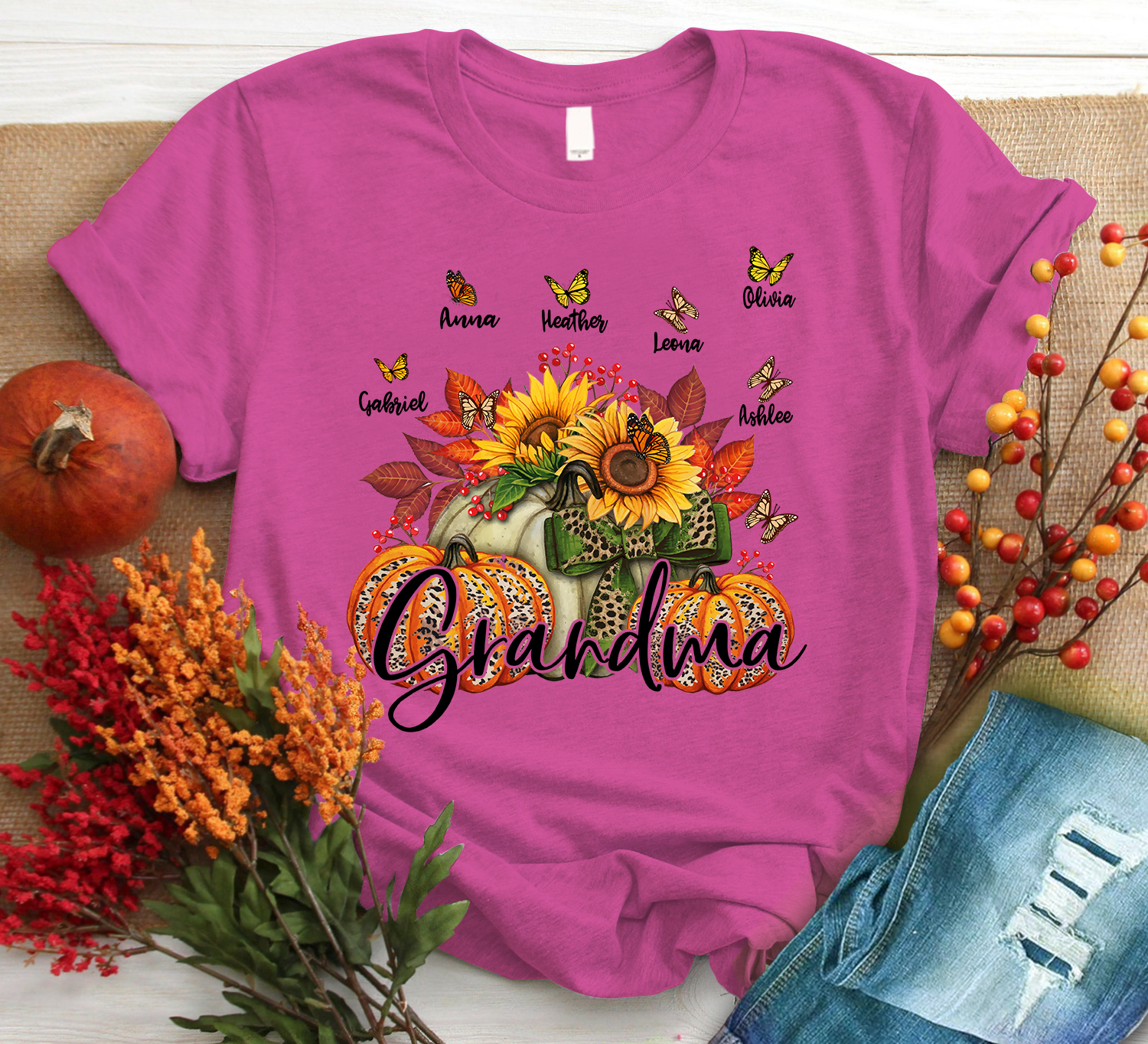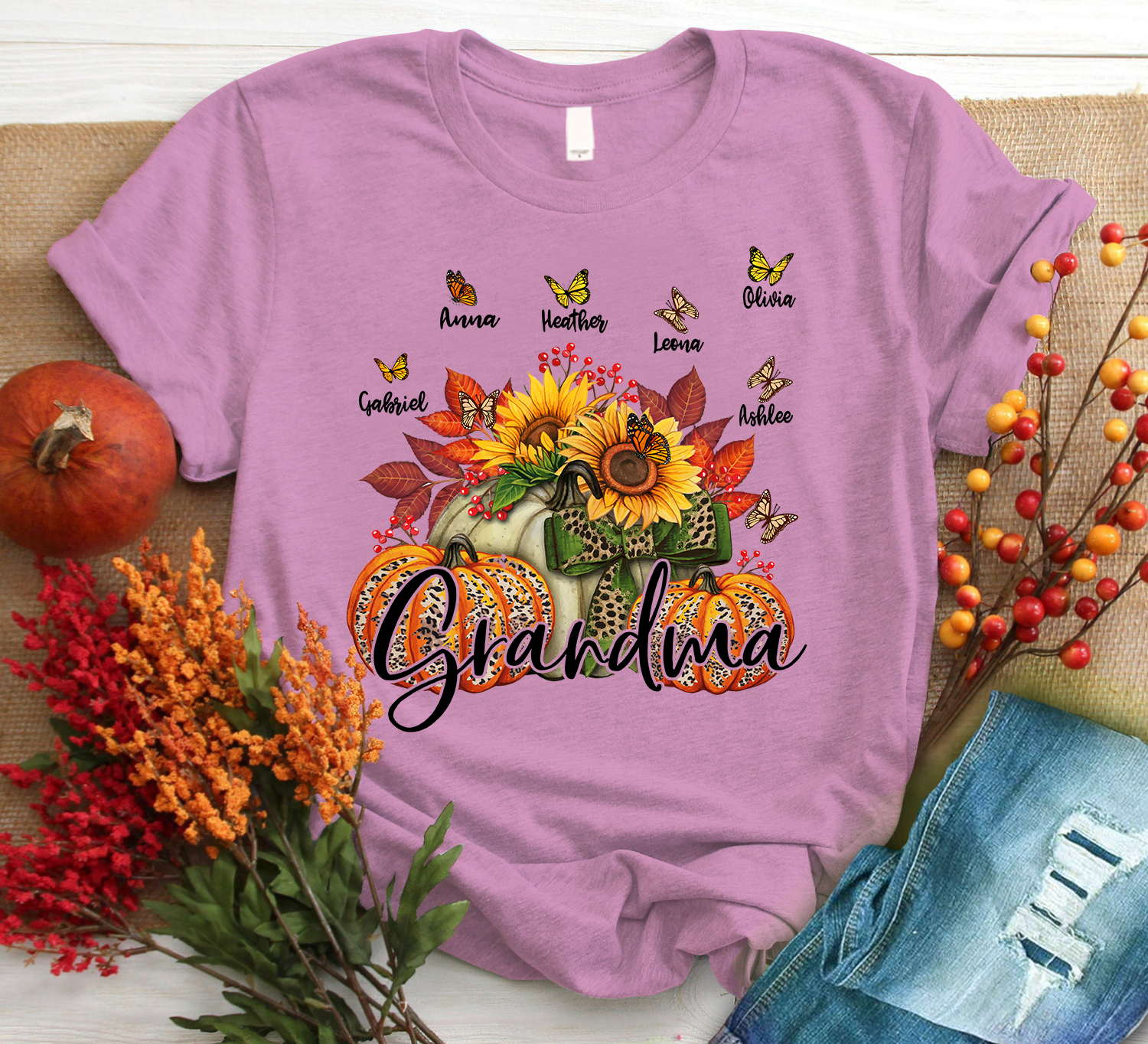 Personalized Grandma Pumpkin Autumn Trending Family T-Shirt