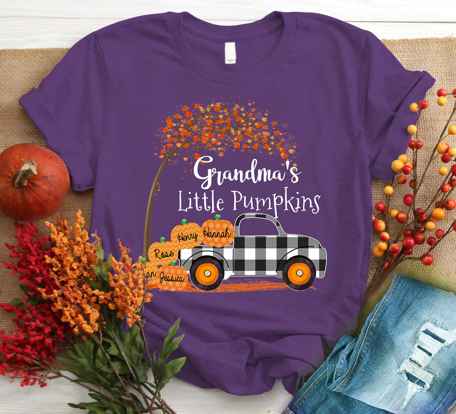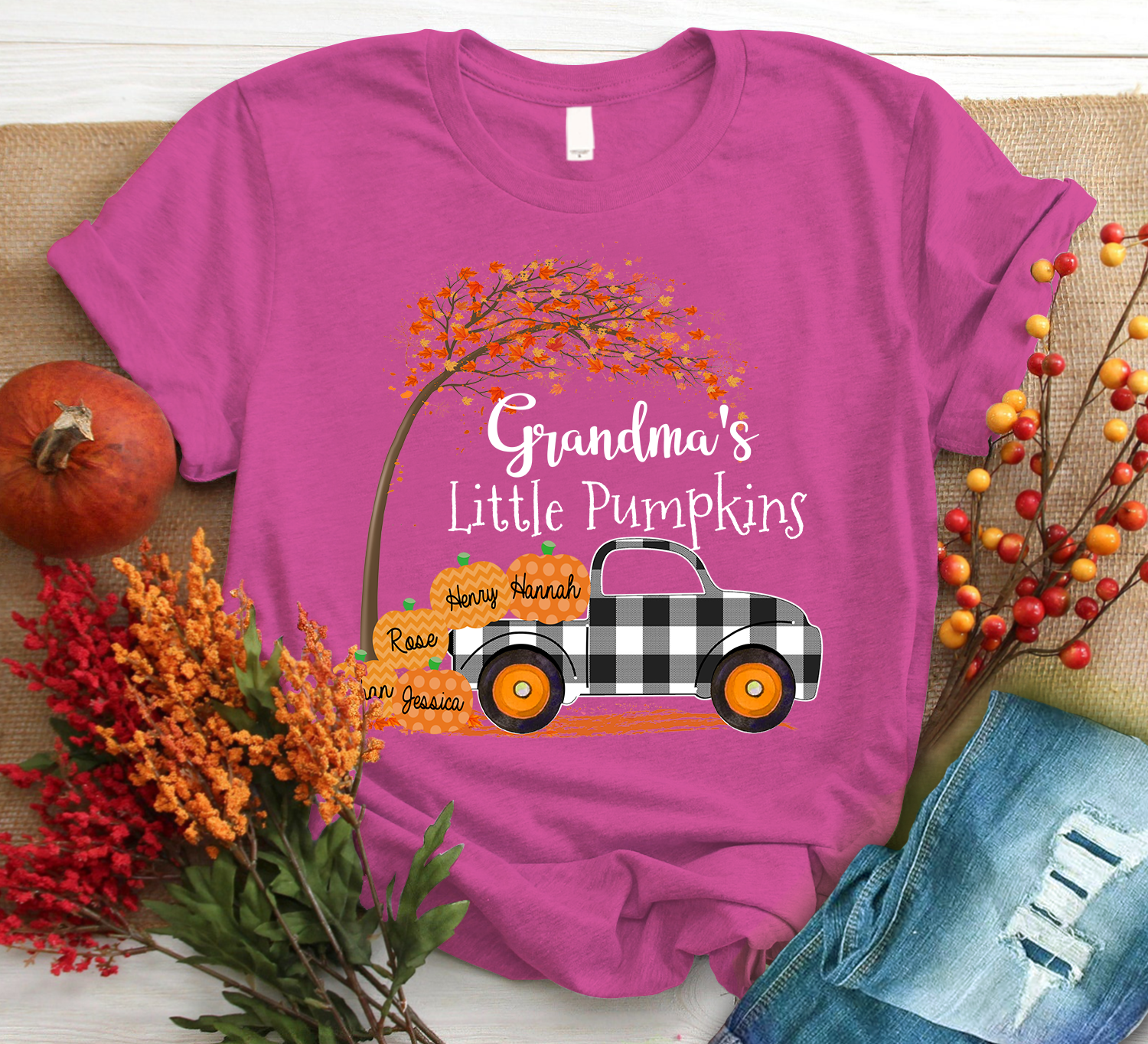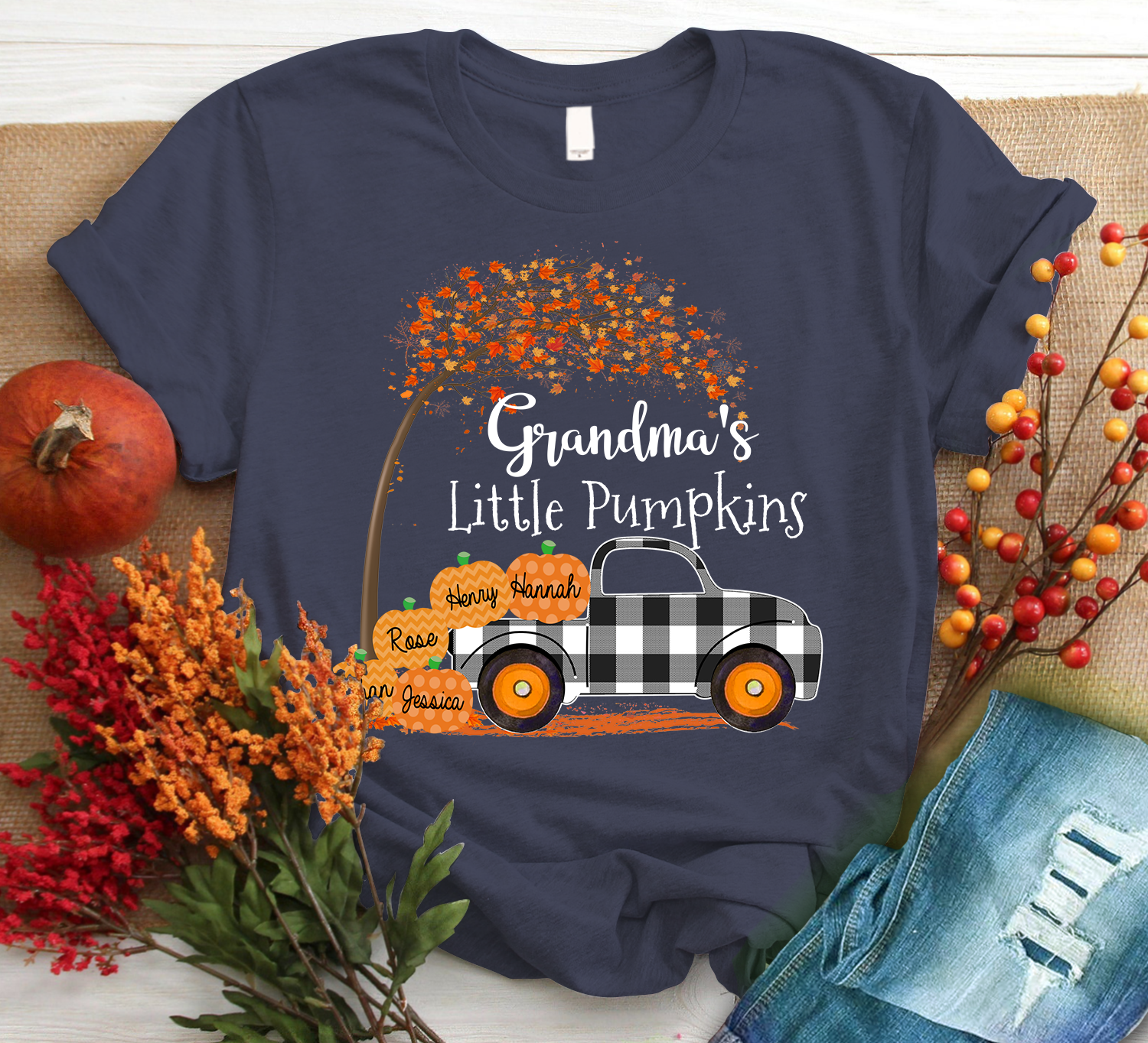 Personalized Grandma S Little Pumpkins 2021 Autumn Black Family T-Shirt