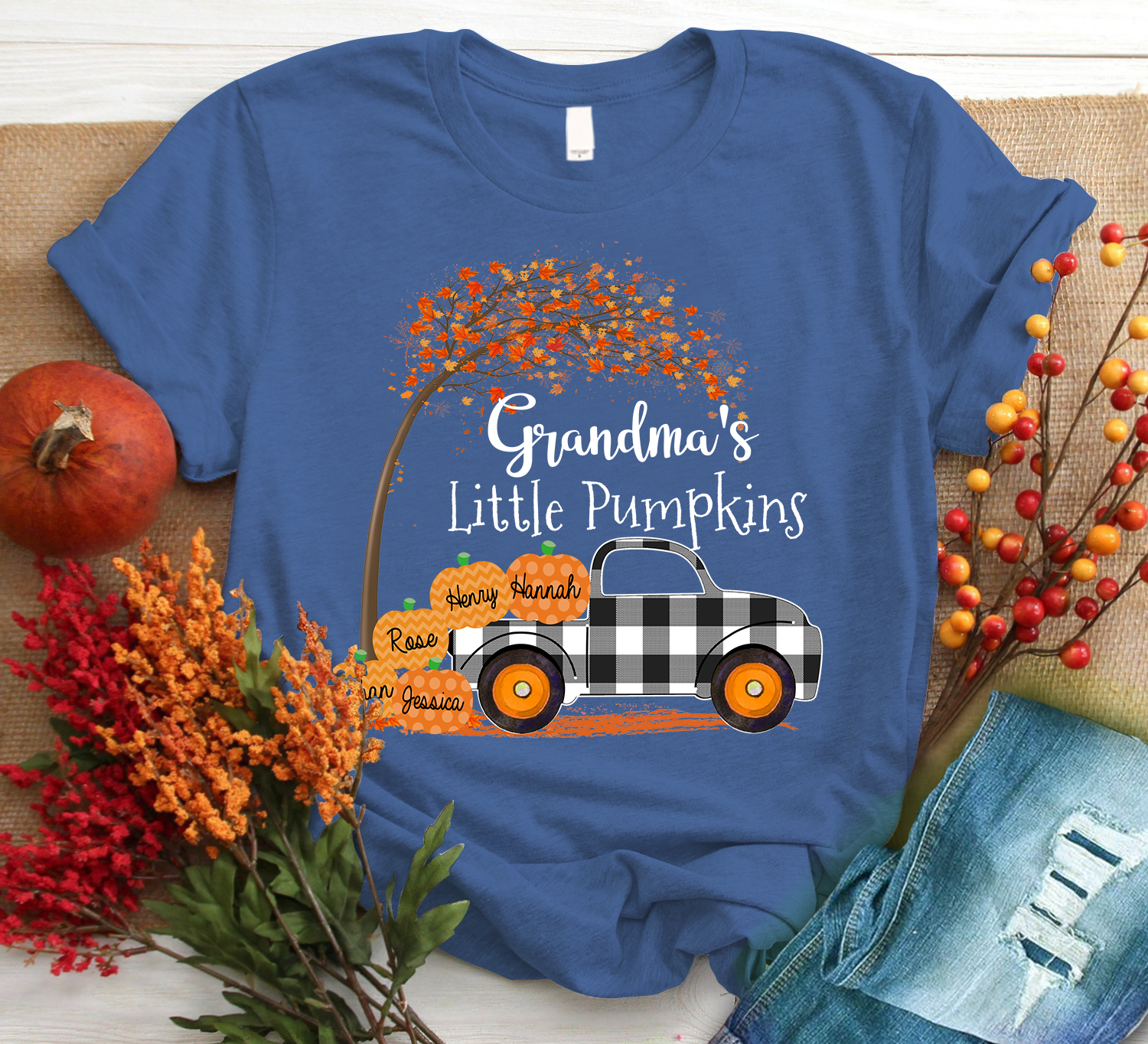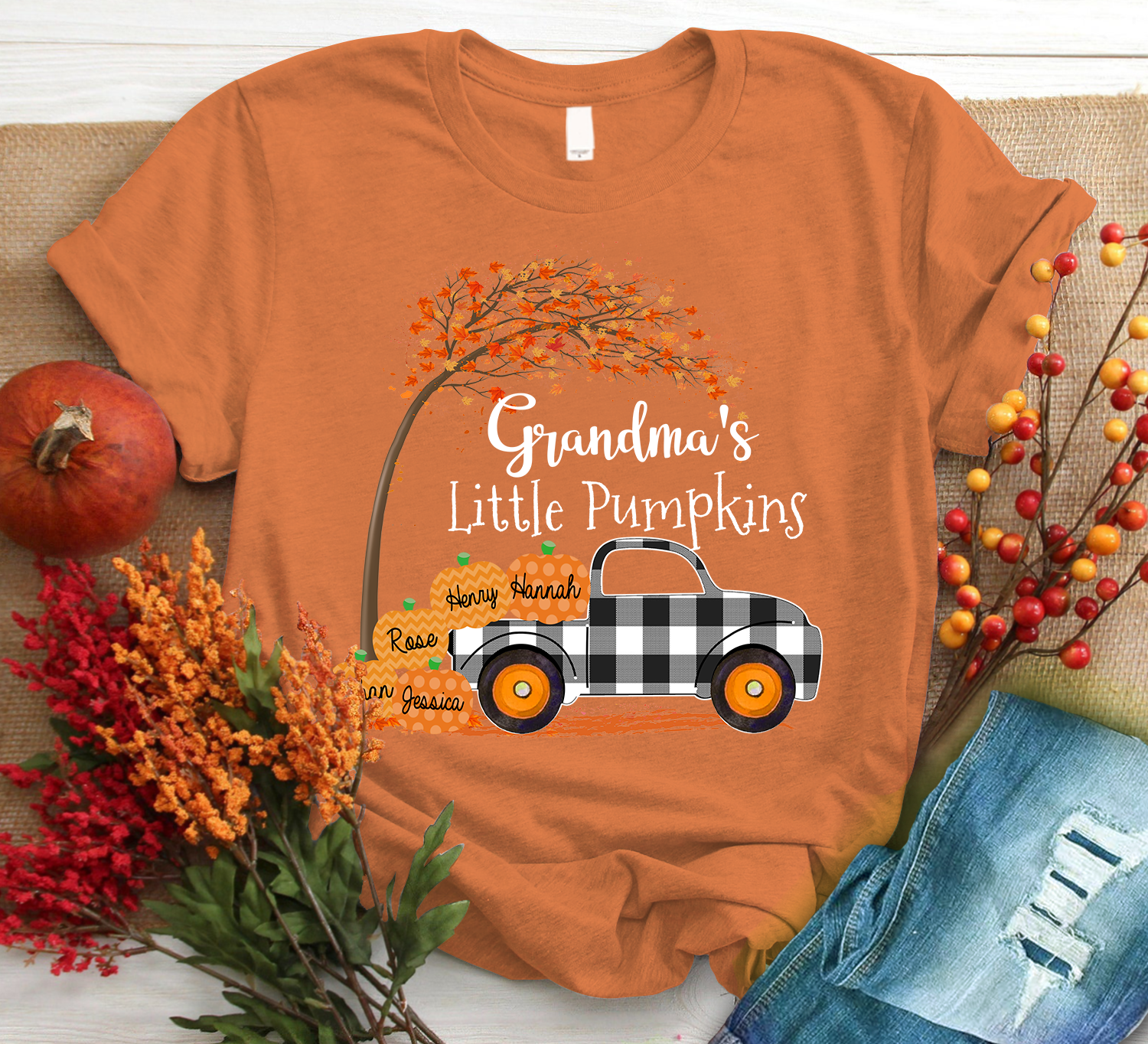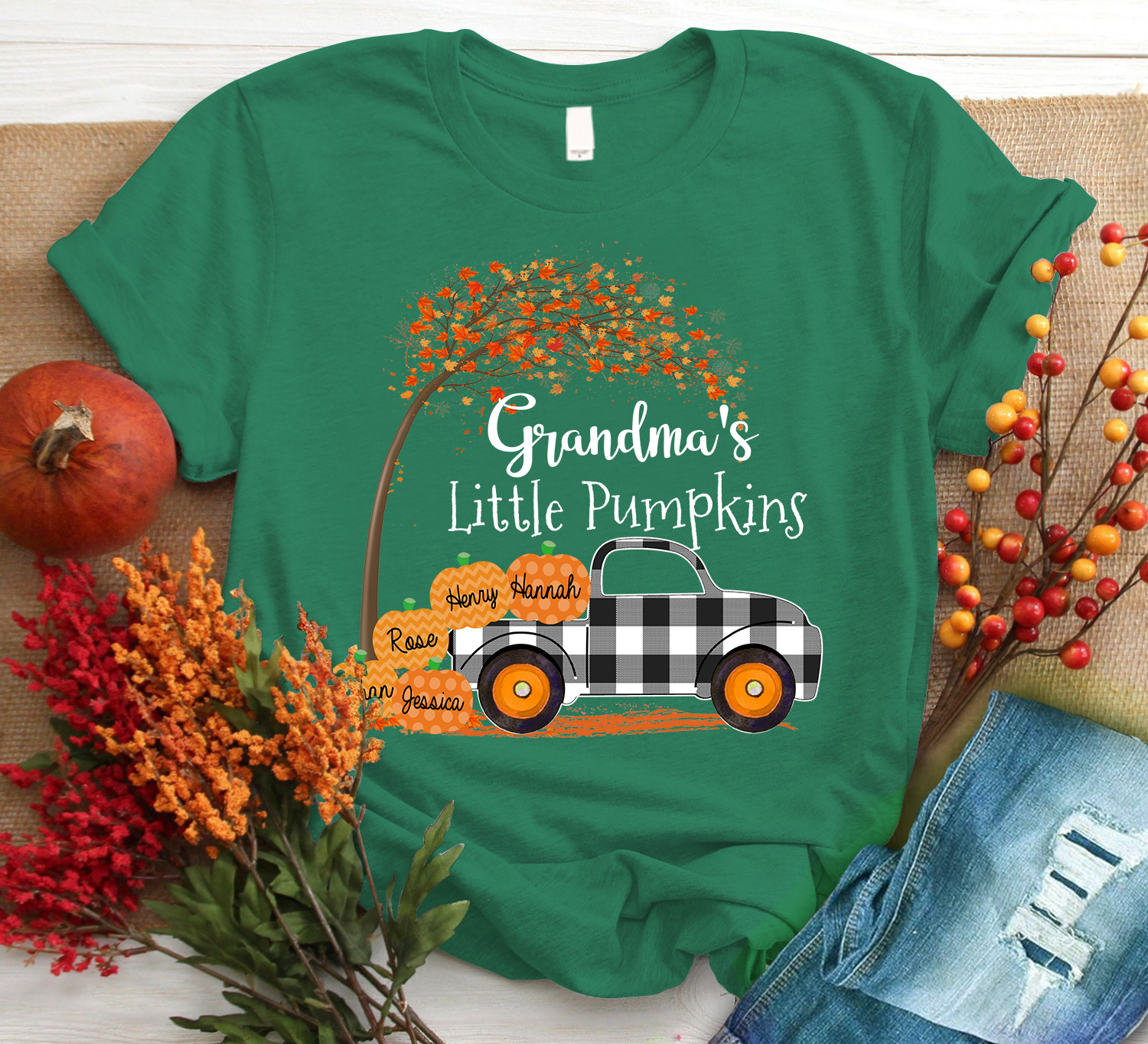 Personalized Grandma S Little Pumpkins 2021 Autumn Black Family T-Shirt