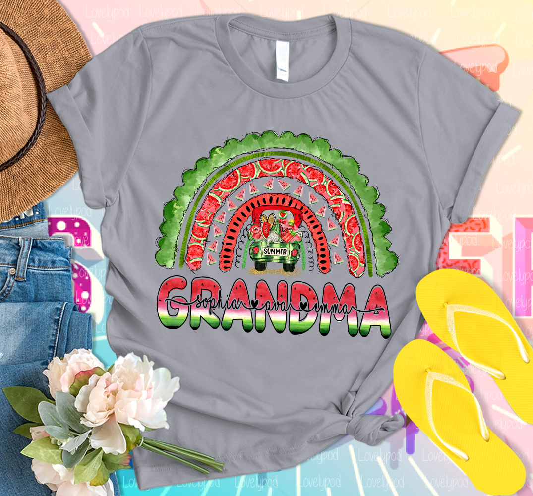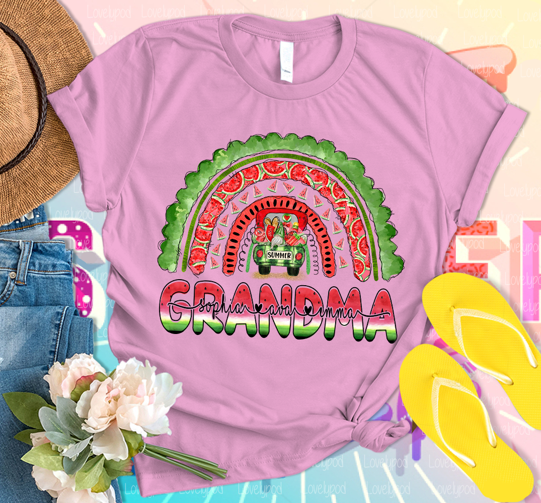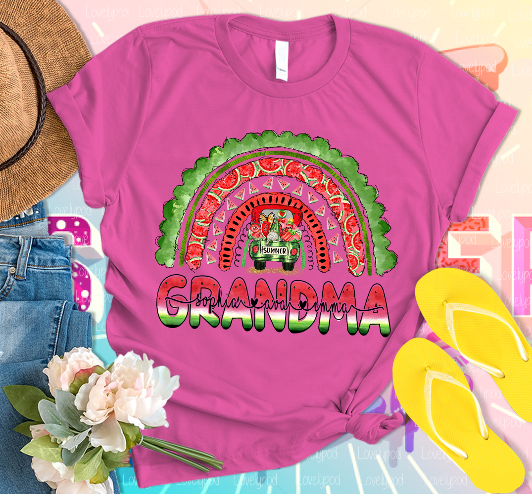 Personalized Grandma Summer Shirt, Watermelon Summer Rainbow With Grandkids T-Shirt