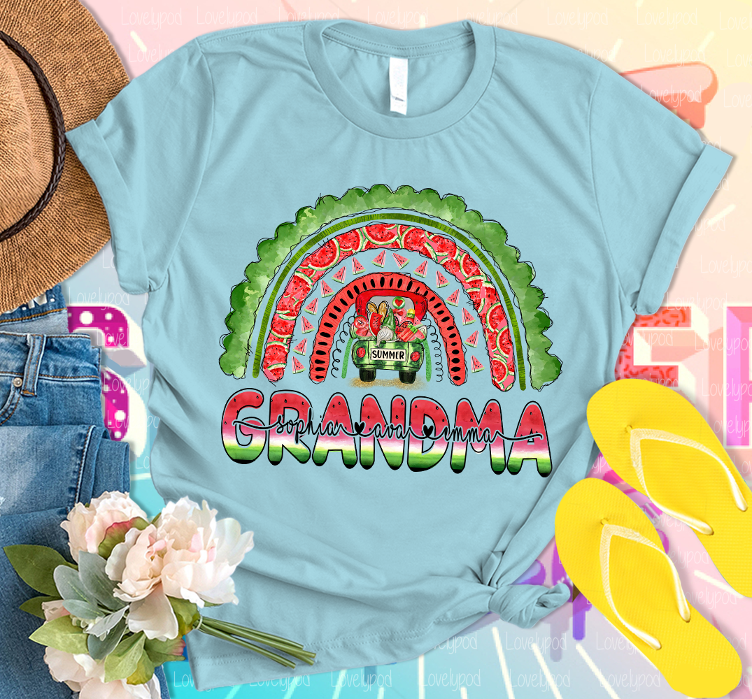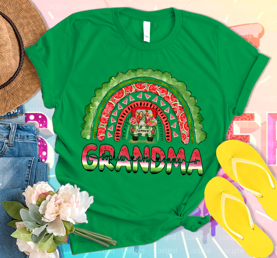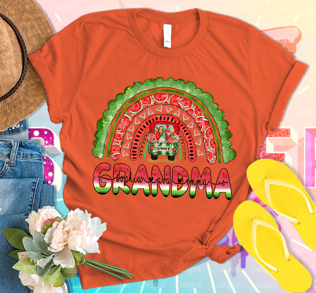 Personalized Grandma Summer Shirt, Watermelon Summer Rainbow With Grandkids T-Shirt