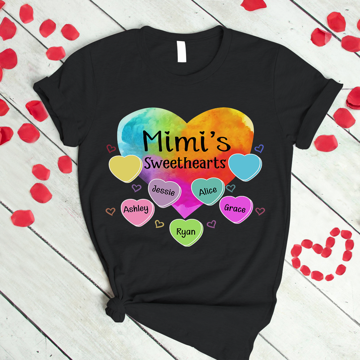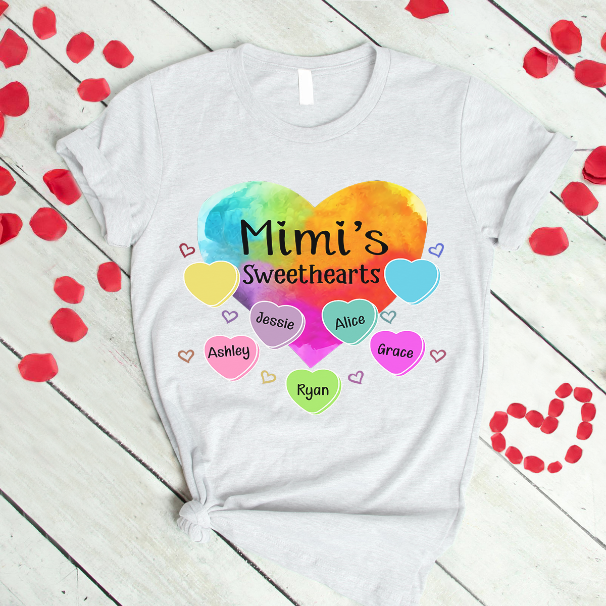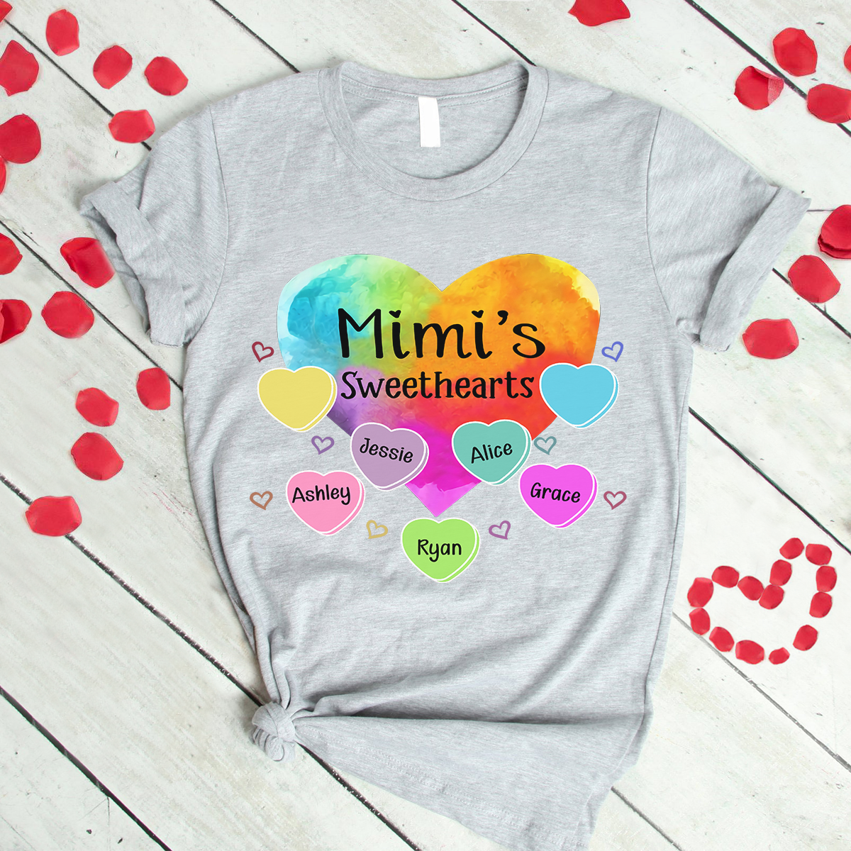Personalized Grandma Sweethearts With Grandkids Heart Color Art T-Shirt