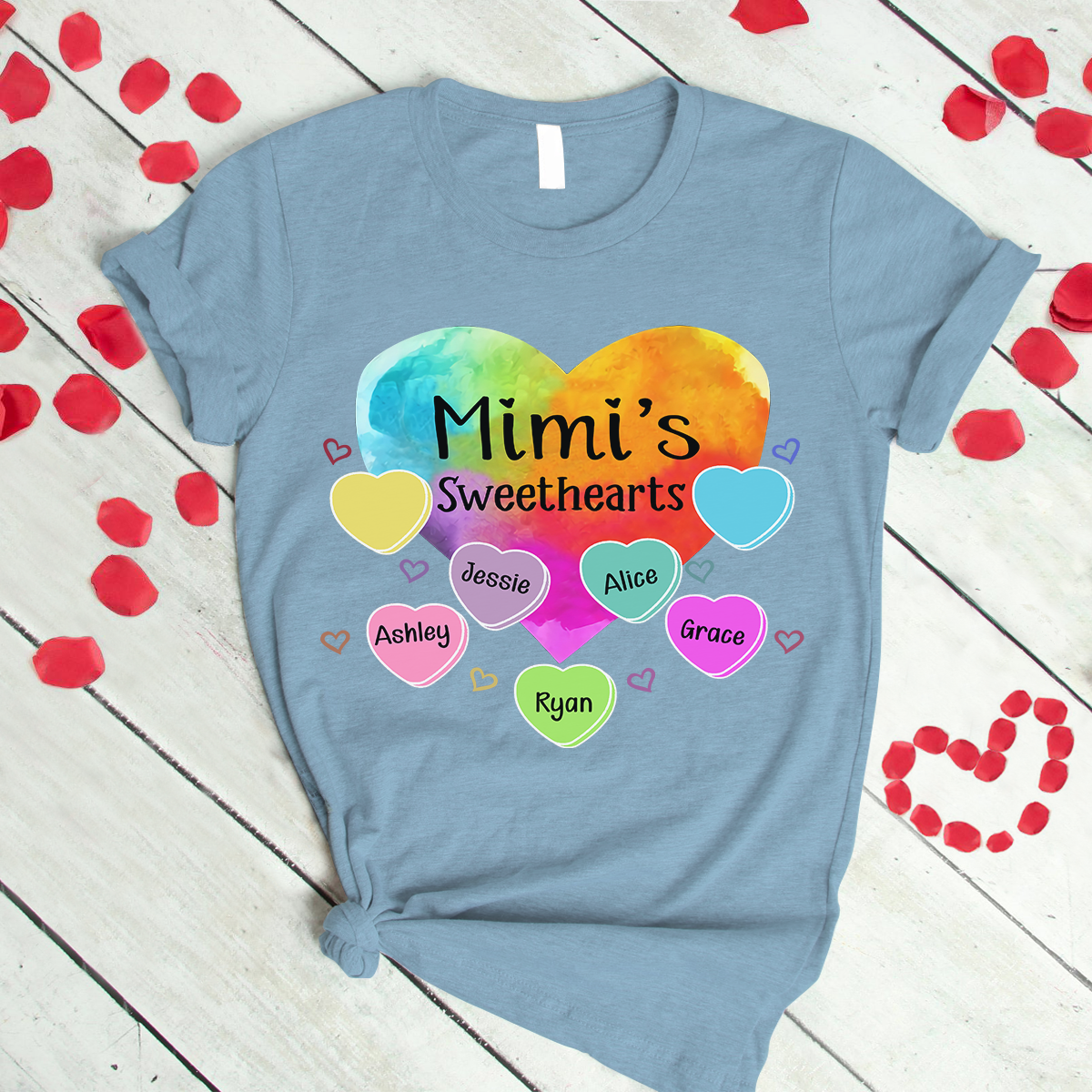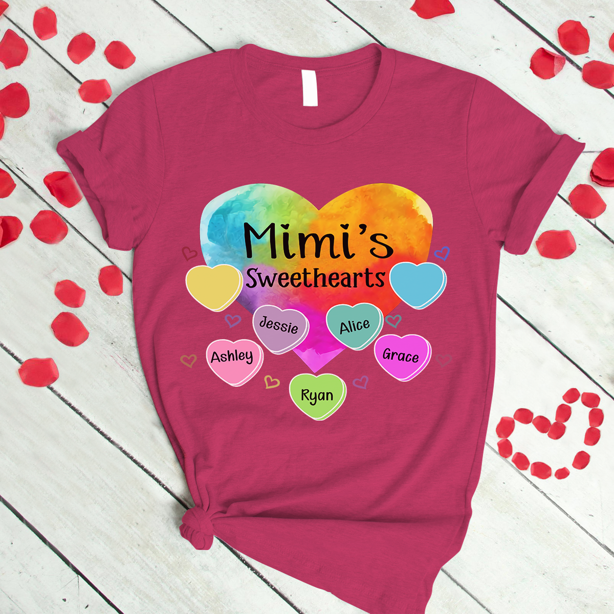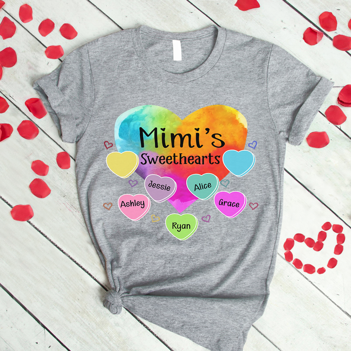 Personalized Grandma Sweethearts With Grandkids Heart Color Art T-Shirt