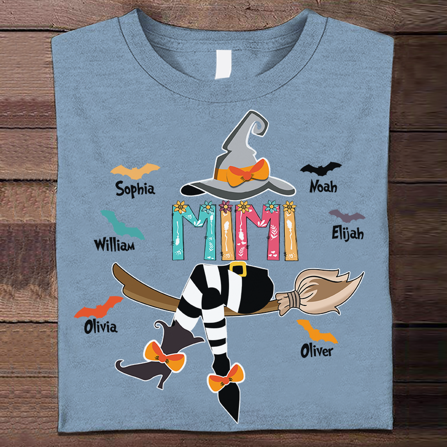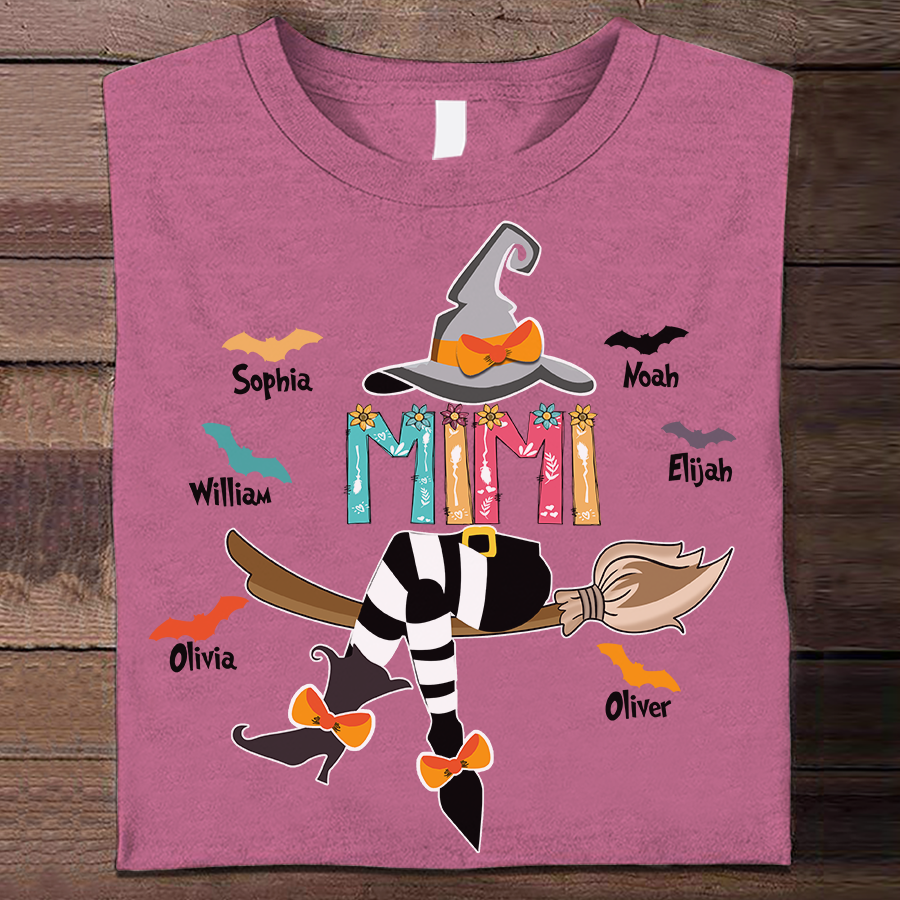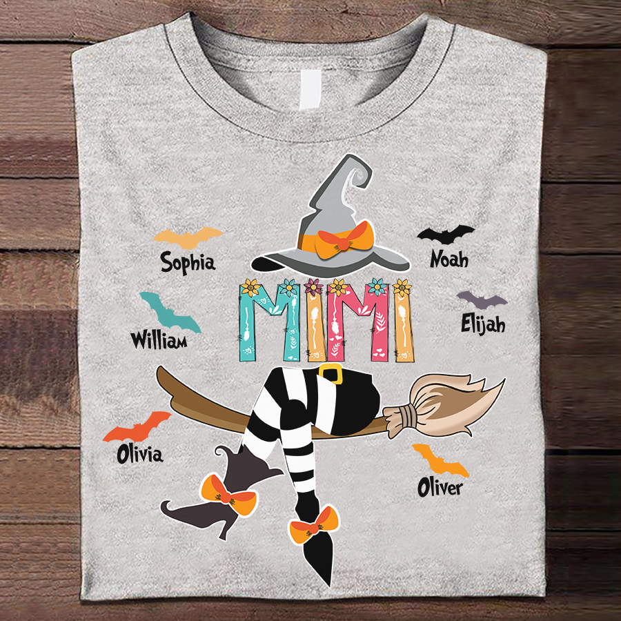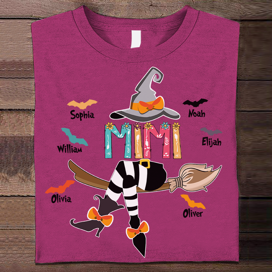 Personalized Grandma Witch And Grandkids Art Halloween Family T Shirt