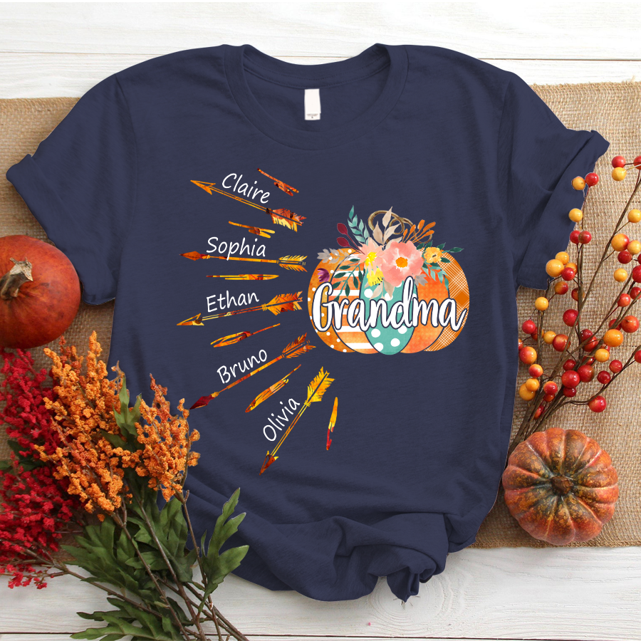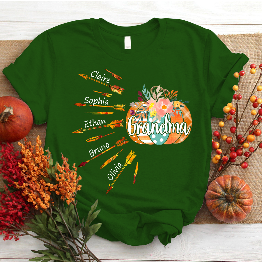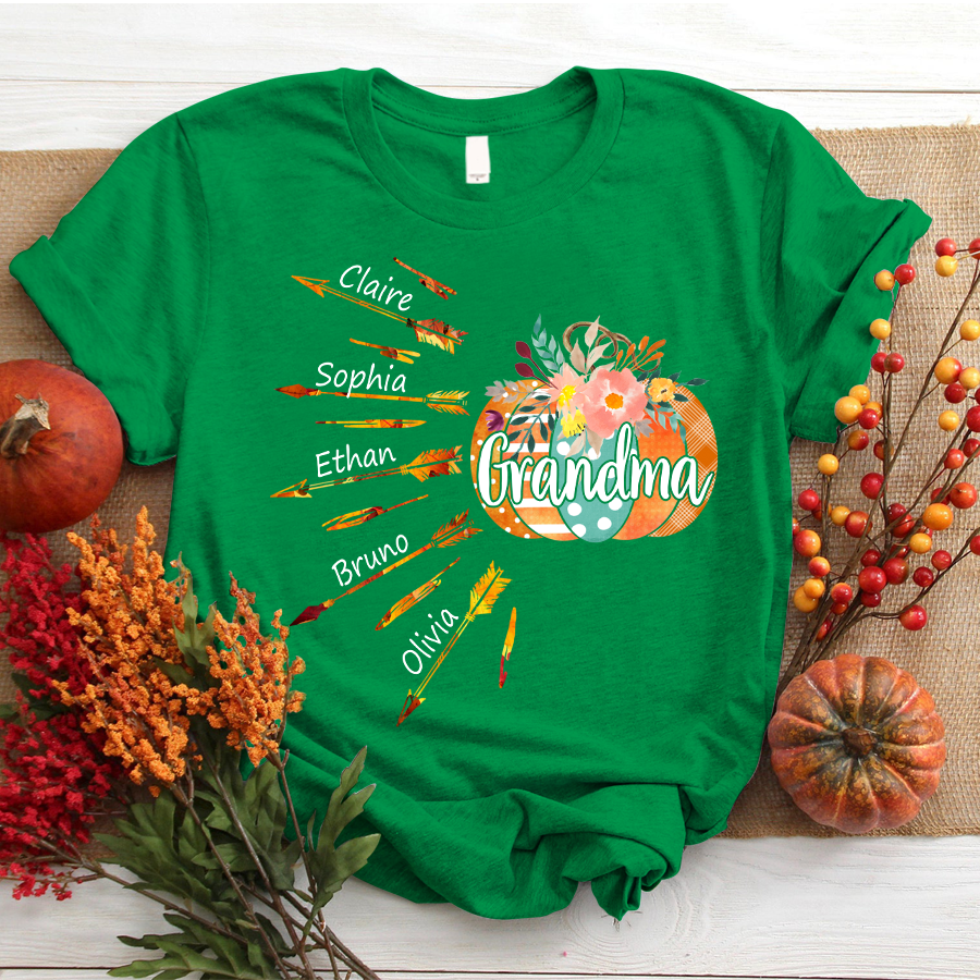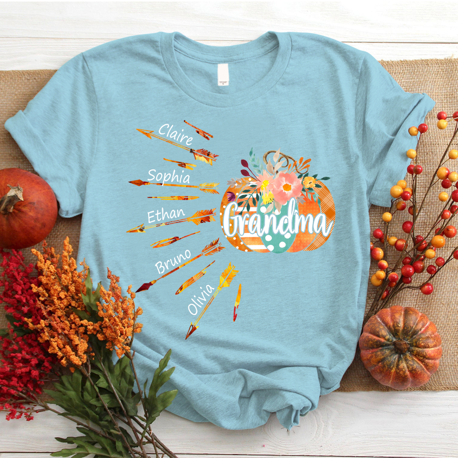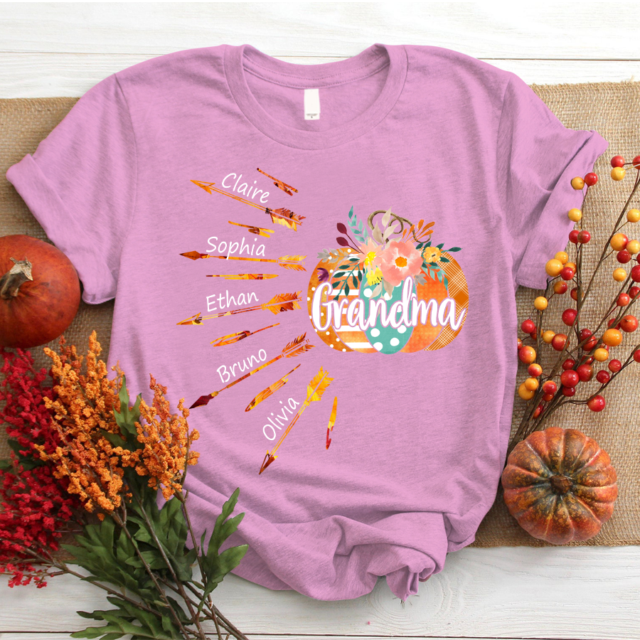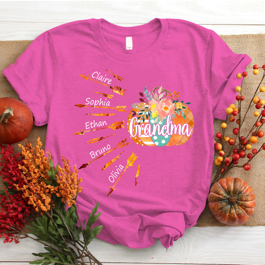 Personalized Grandma With Grandkids Pumpkin Arrow Fall Halloween Shirt Gift