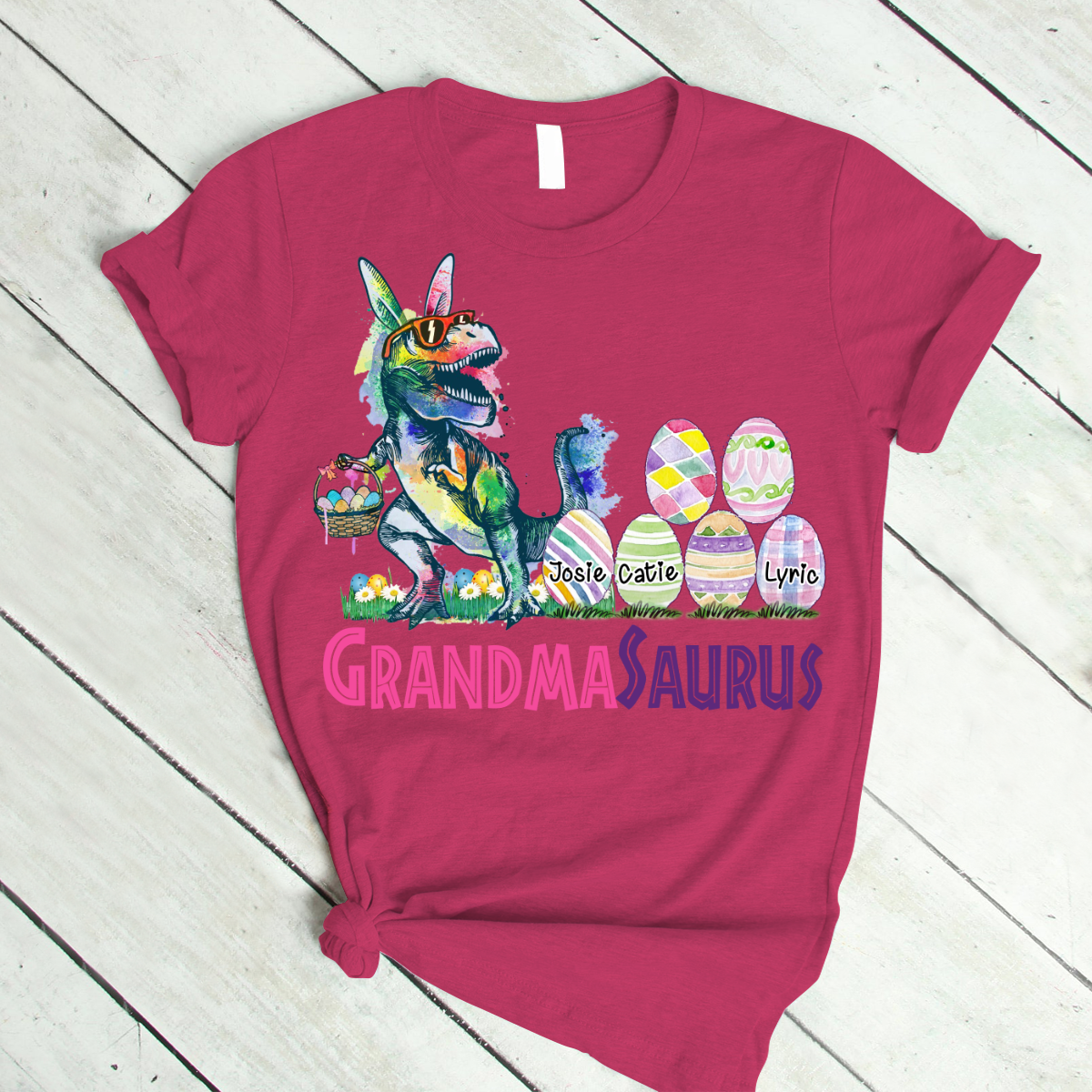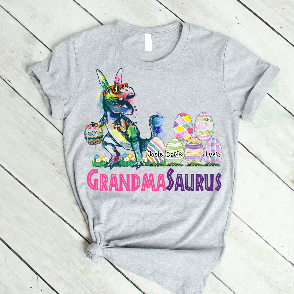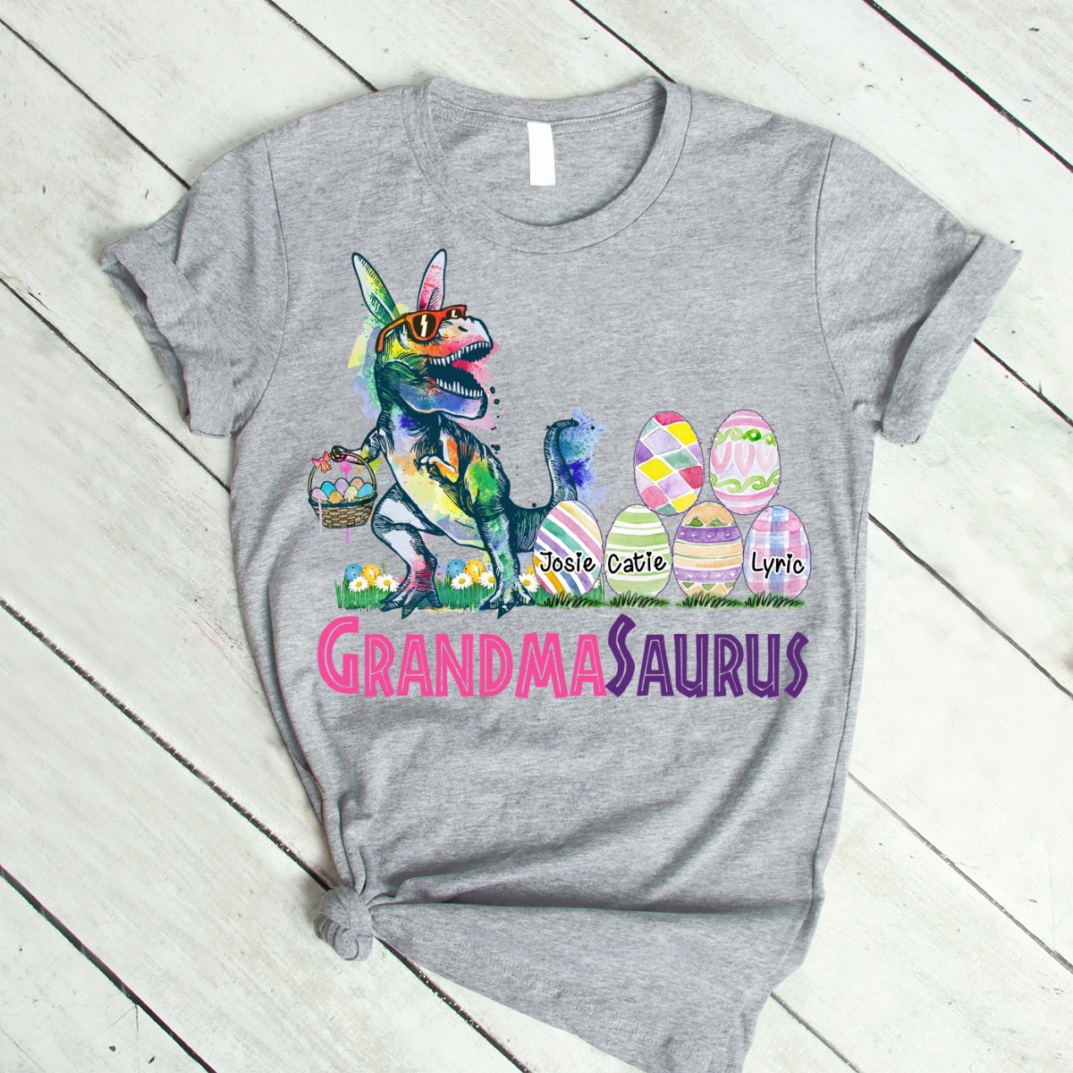 Personalized Grandma With Grandkids Saurus Easter T-Shirt
