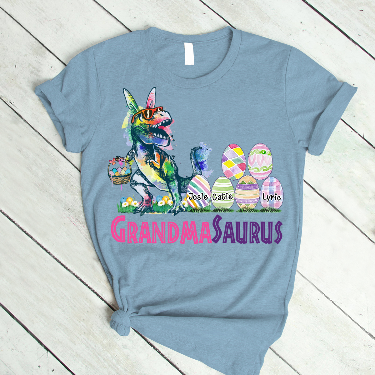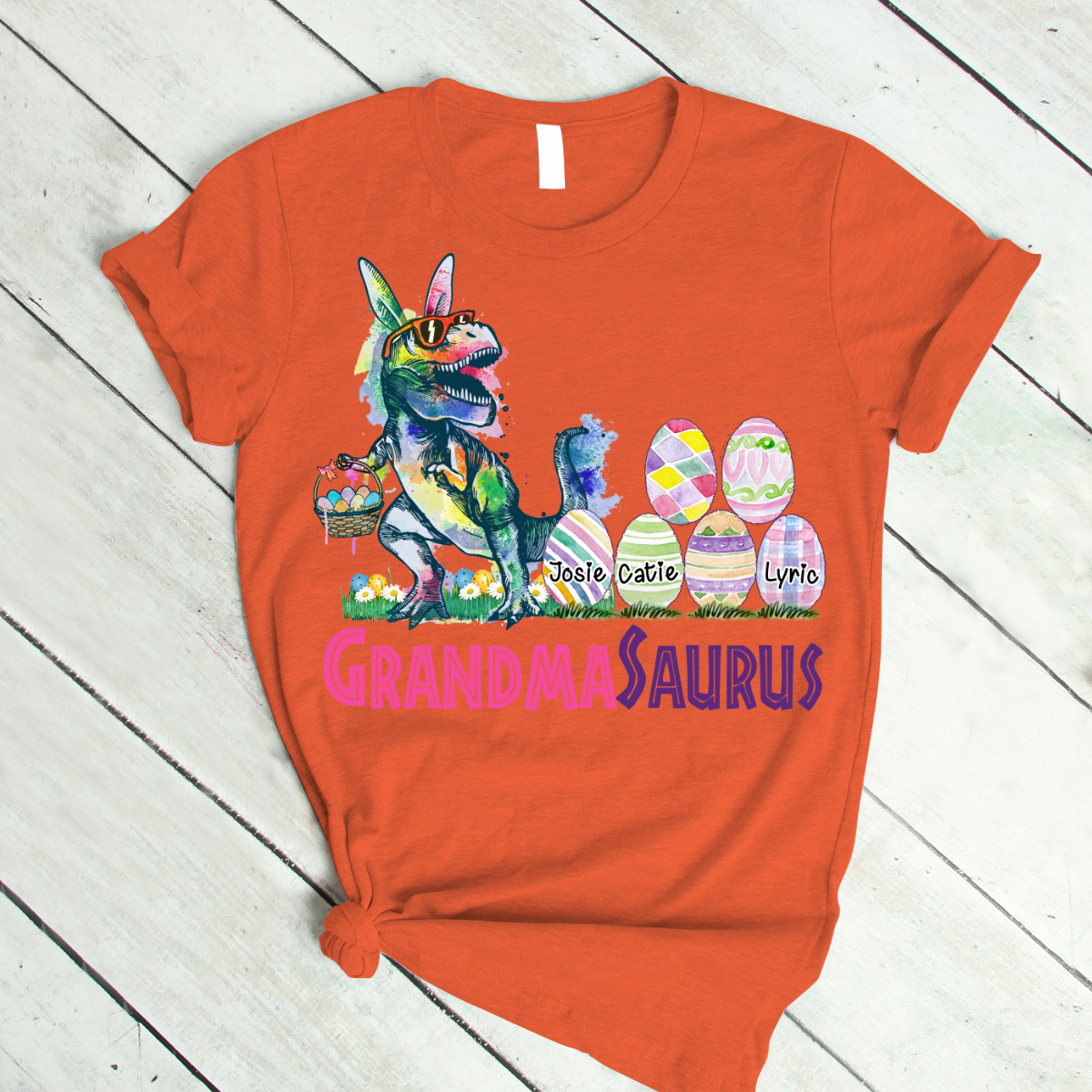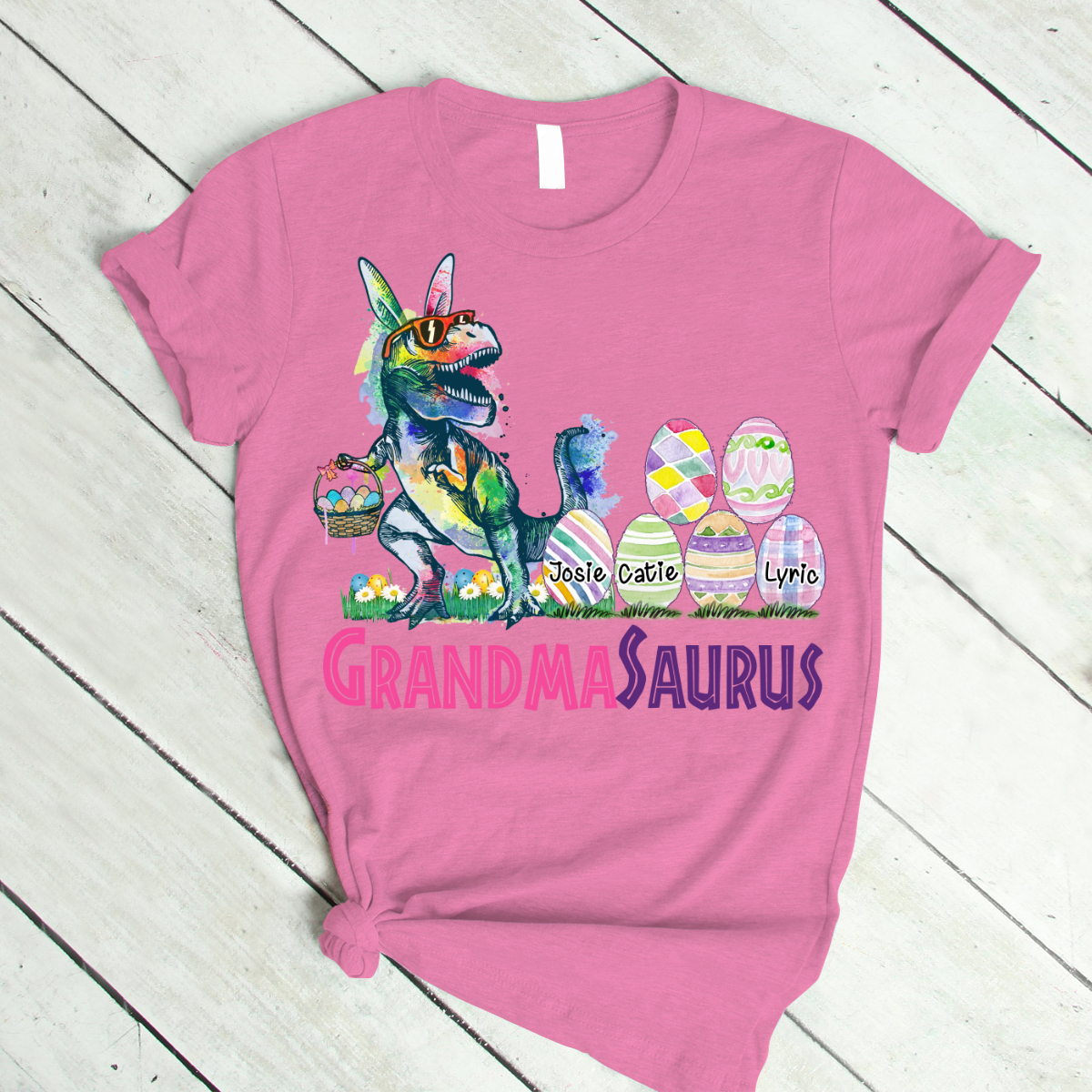 Personalized Grandma With Grandkids Saurus Easter T-Shirt