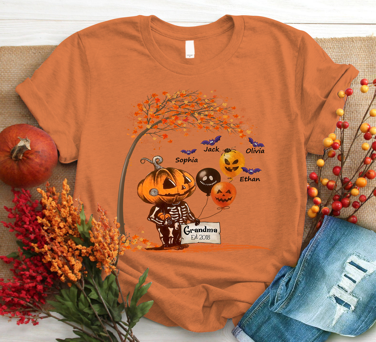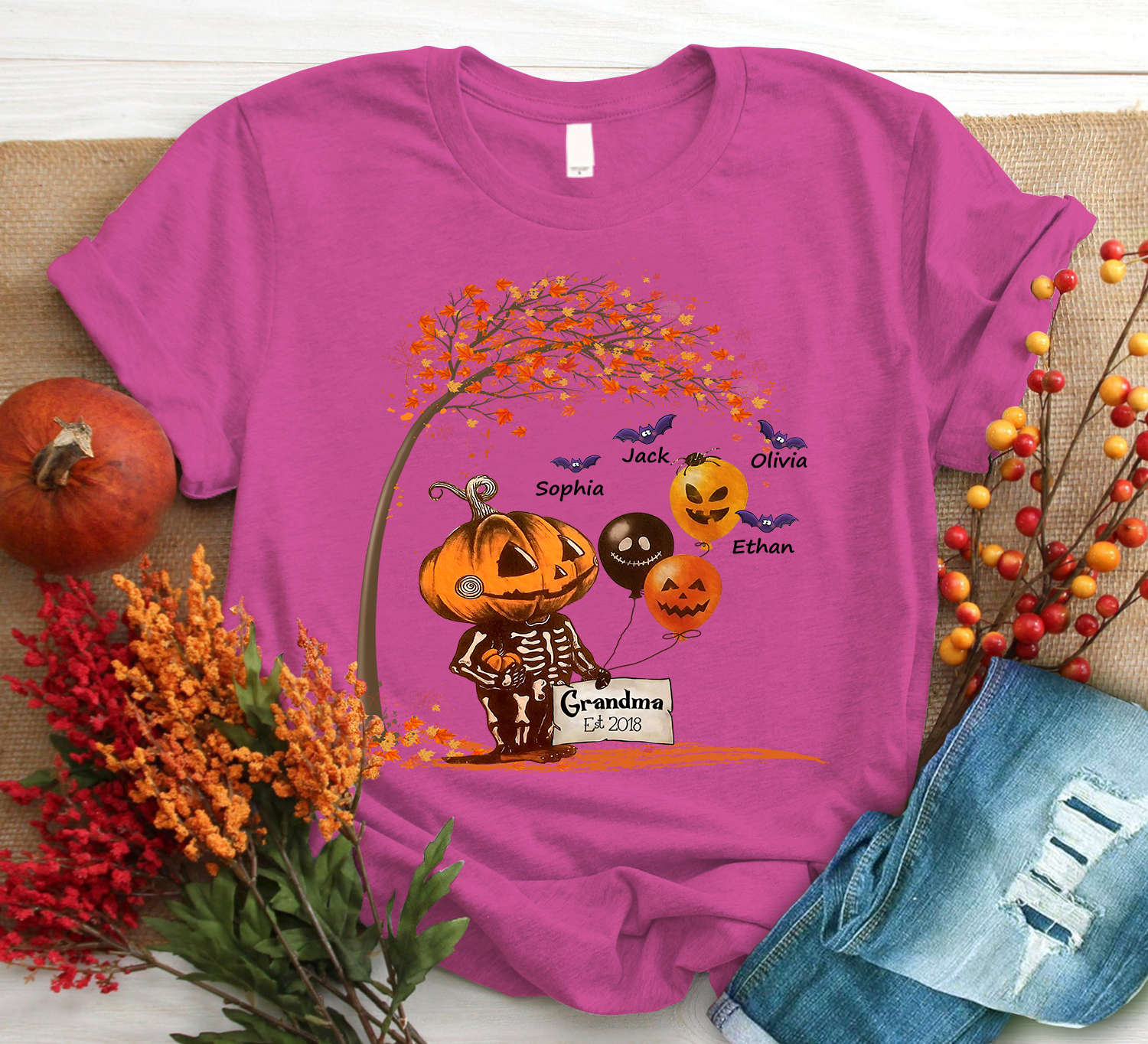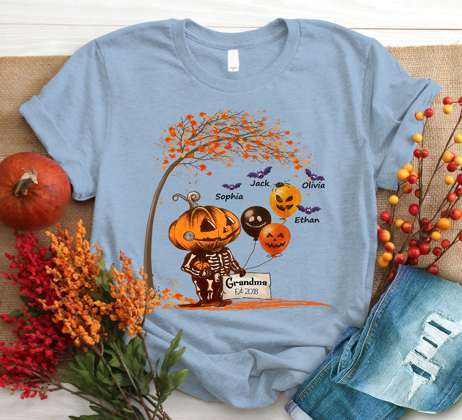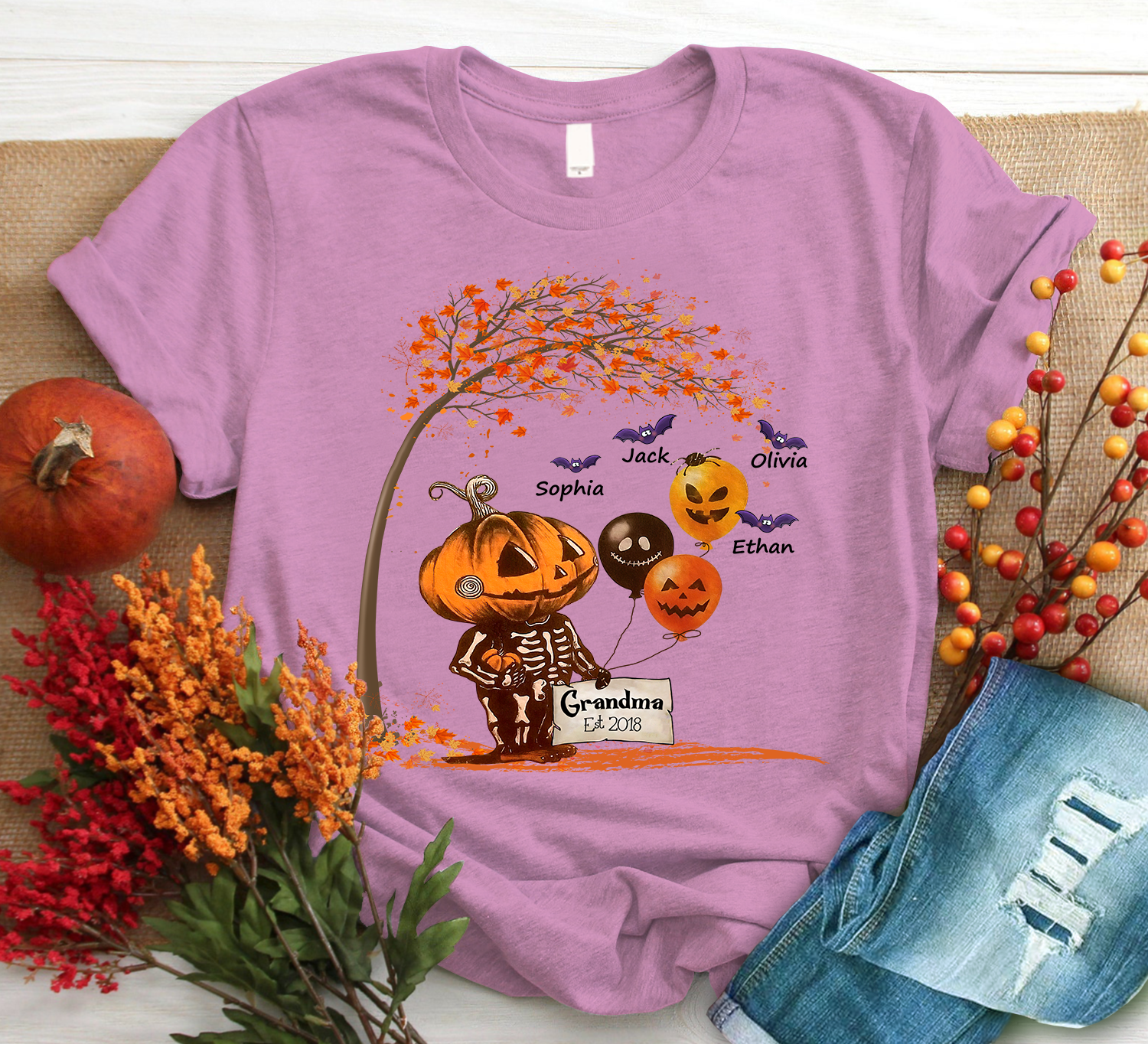 Personalized Grandma With Grandkids Spooky Halloween, Love Family T-Shirt
