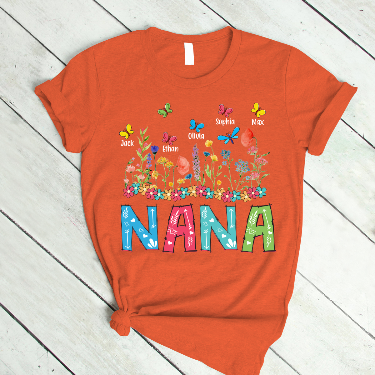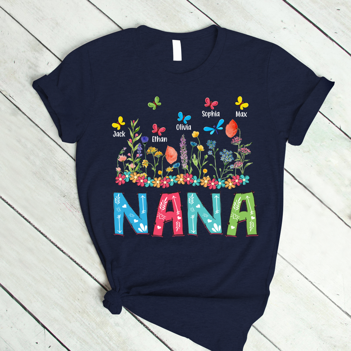 Personalized Grandma With Grandkids Watercolor T-Shirt