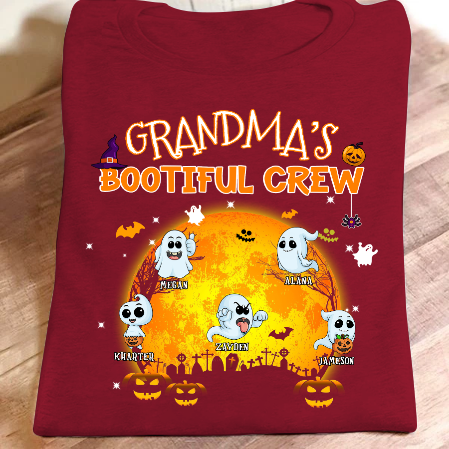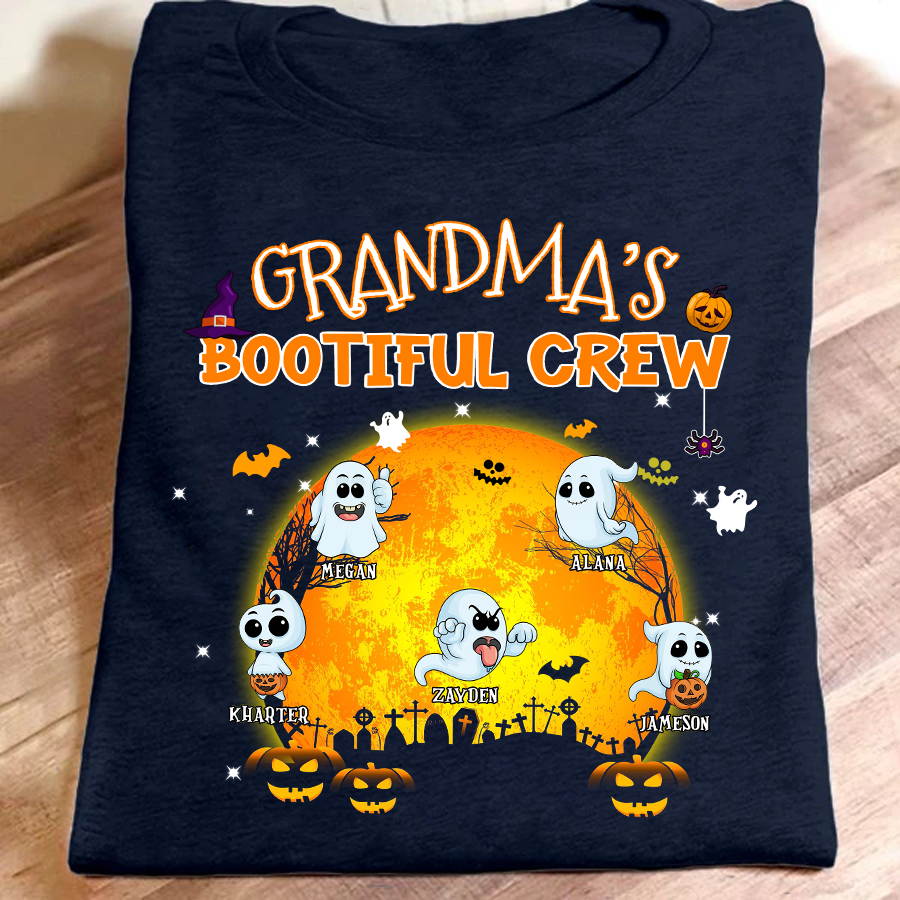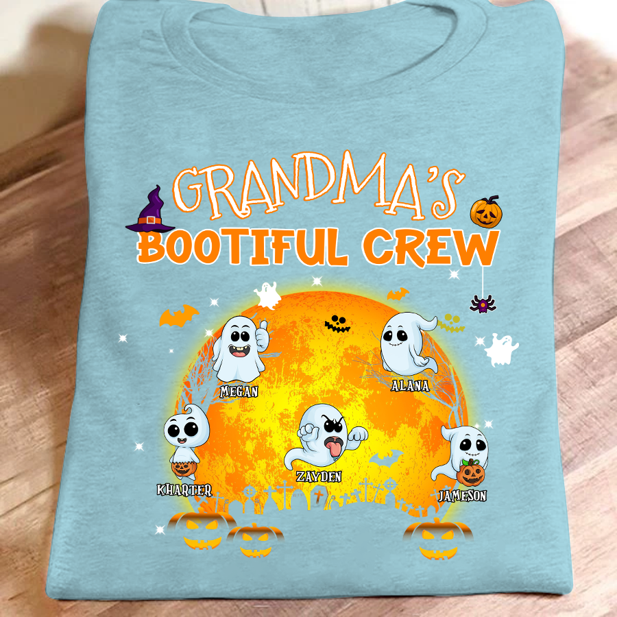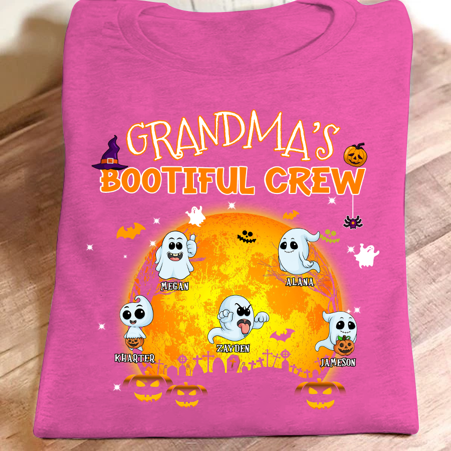 Personalized Grandma’S Bootiful Crew Shirt, Grandma Halloween Shirt, Halloween Boo Shirt, Grandma Shirt With Grandkids Name, Halloween Gift