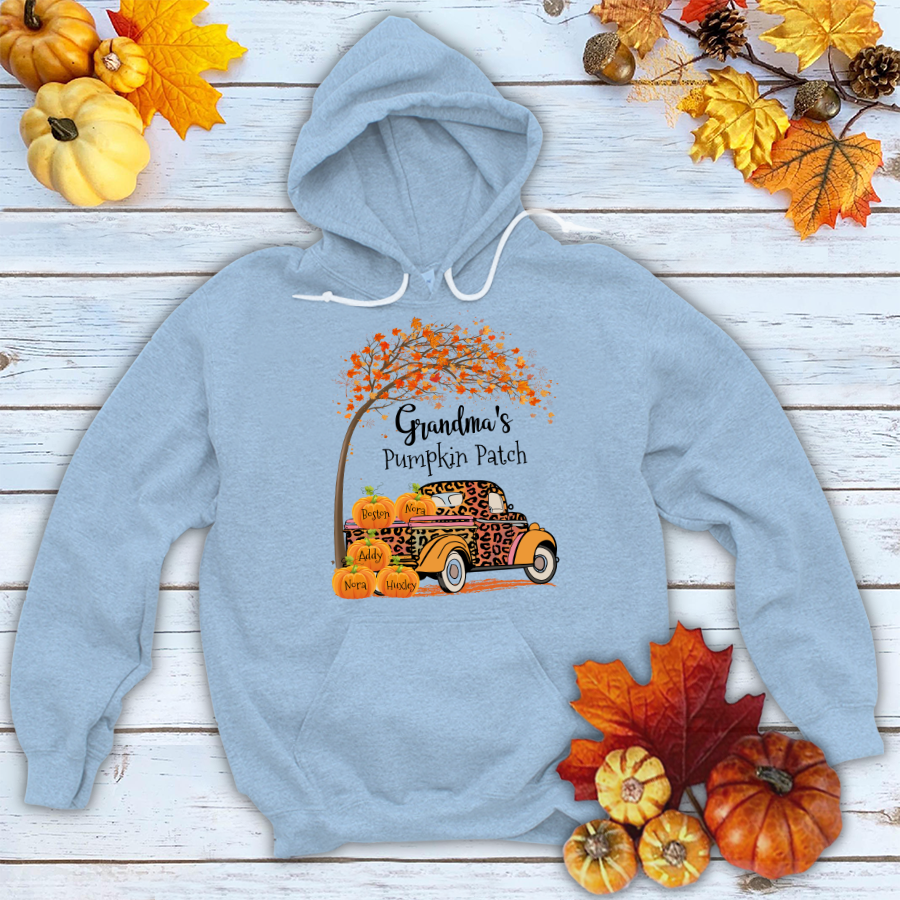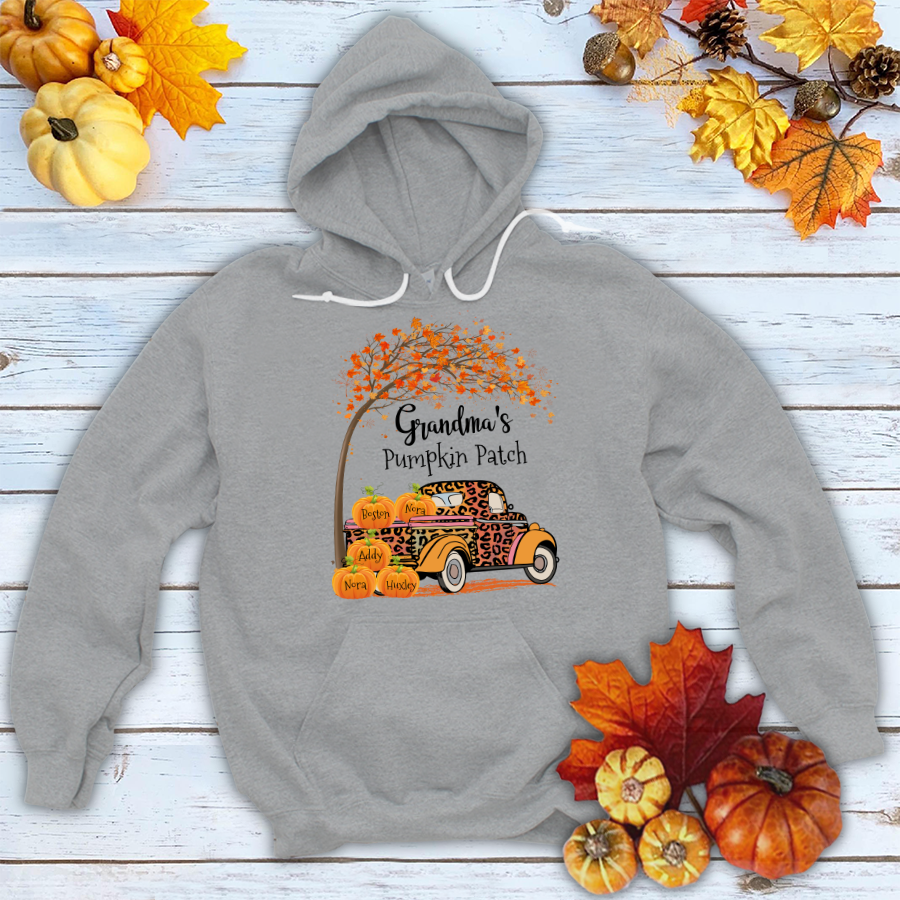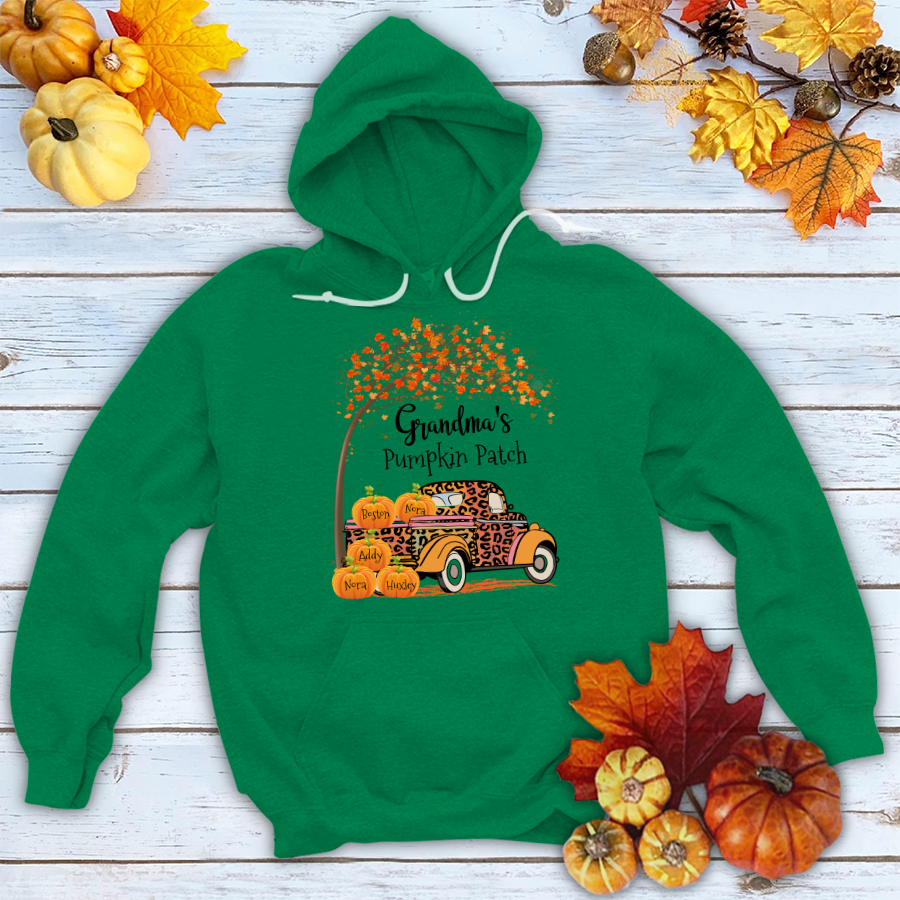 Personalized Grandma’S Pumpkin Patch With Grandkids Name Hoodie Women