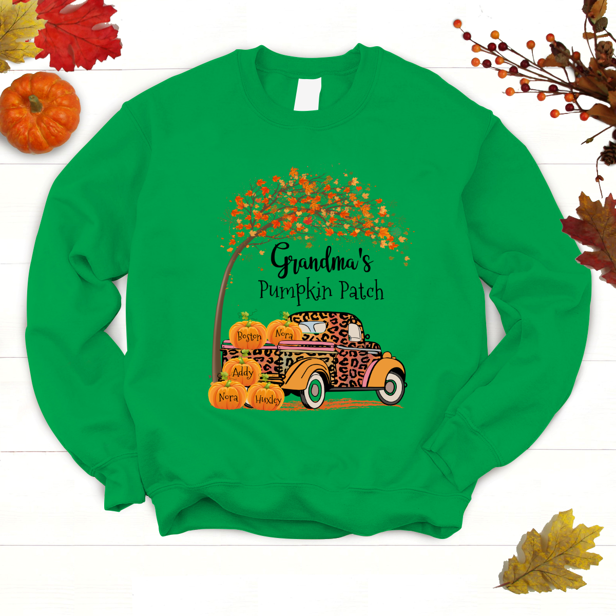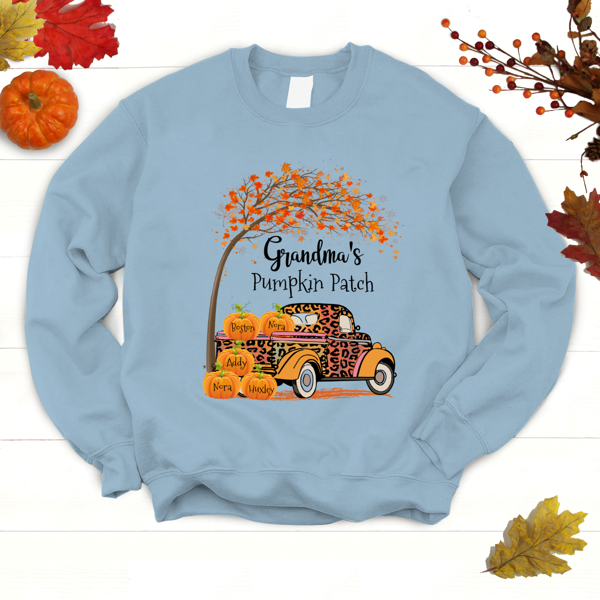 Personalized Grandma’S Pumpkin Patch With Grandkids Name Sweatshirt Women