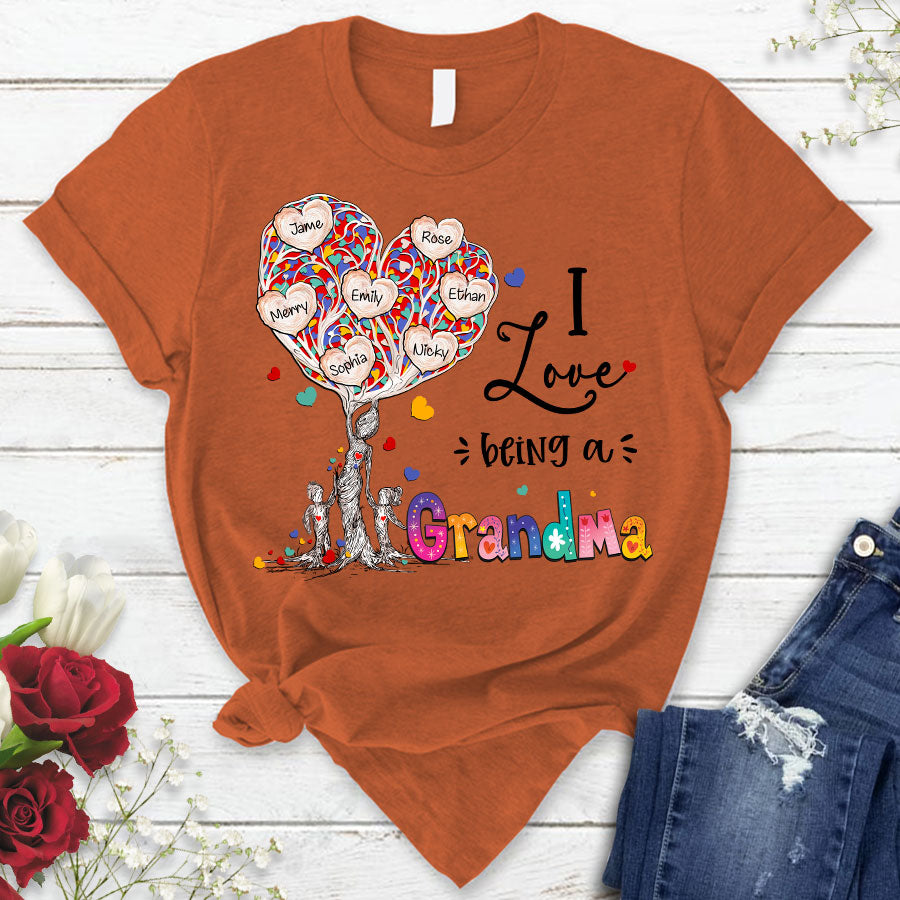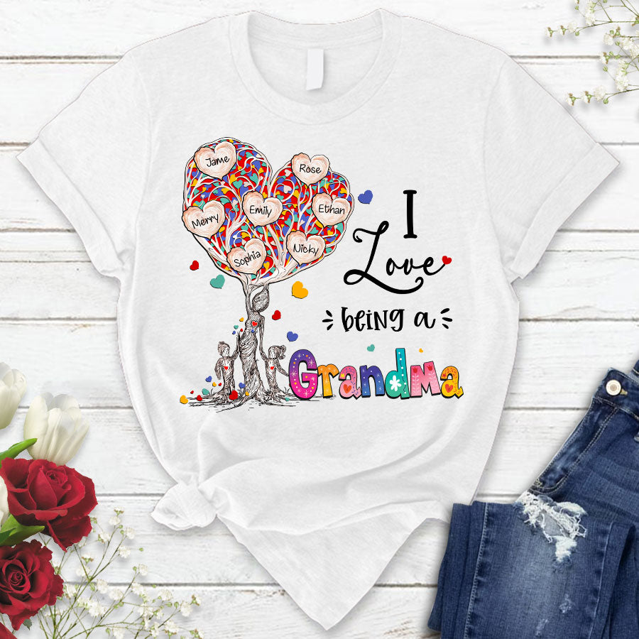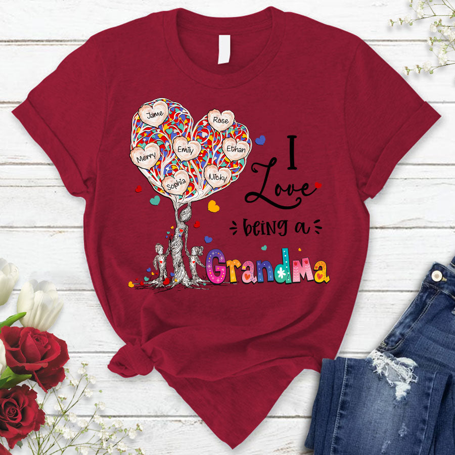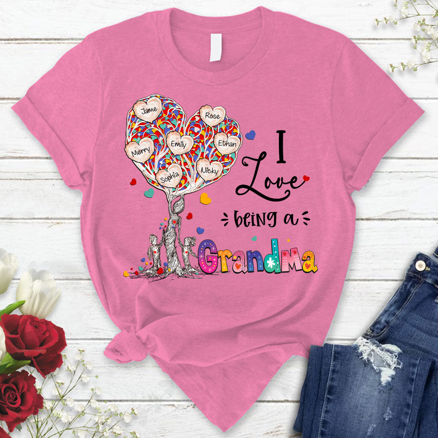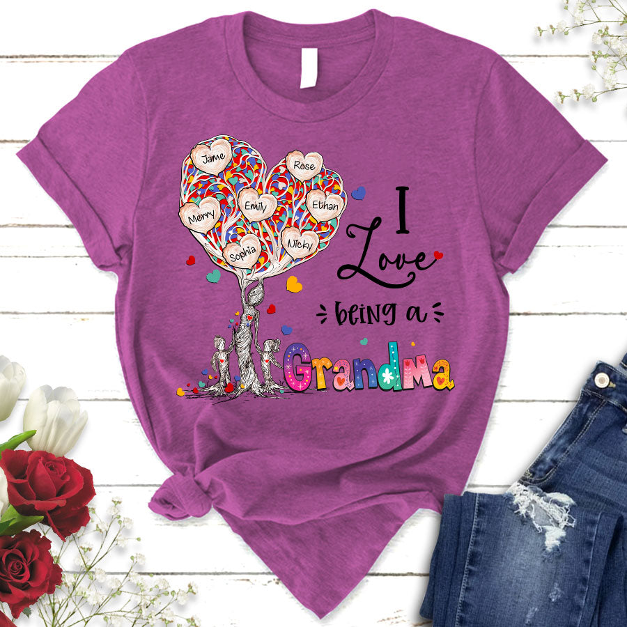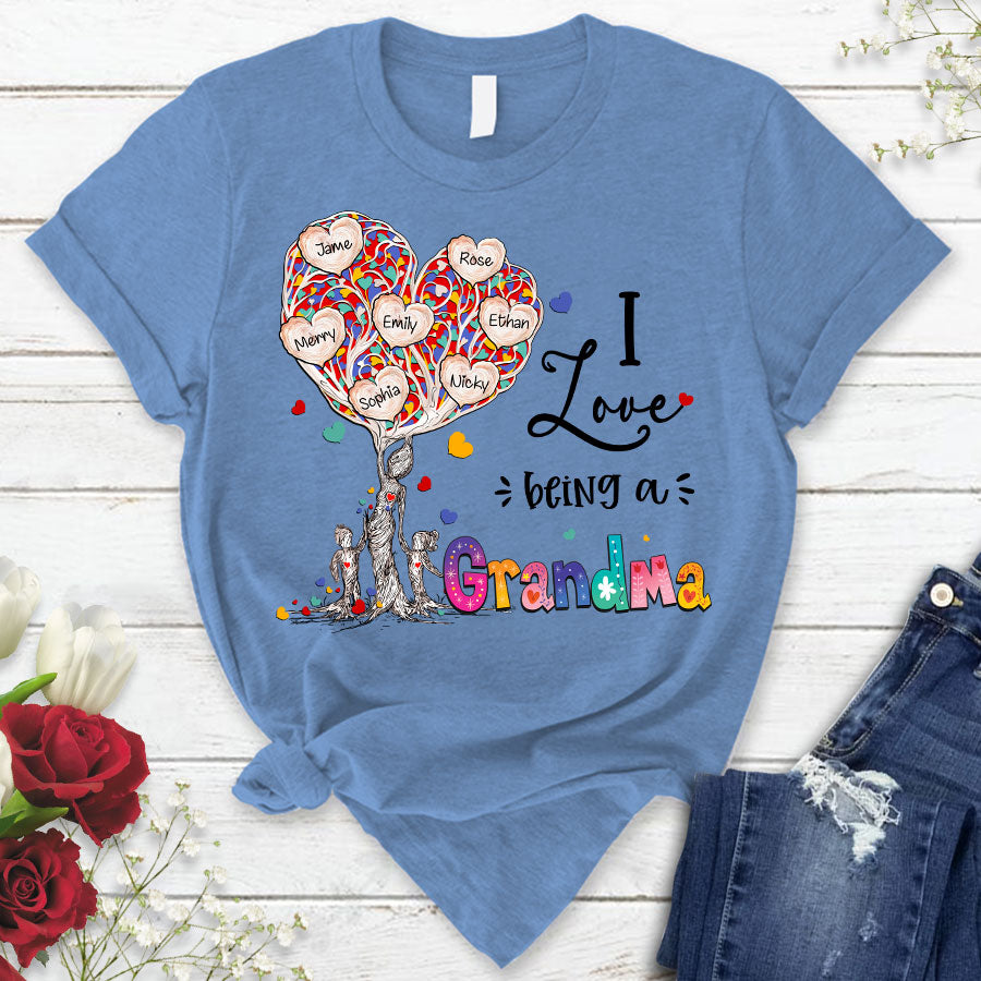 Personalized I Love Being A Grandma With Grandkids Love Tree Heart L94 T-Shirt