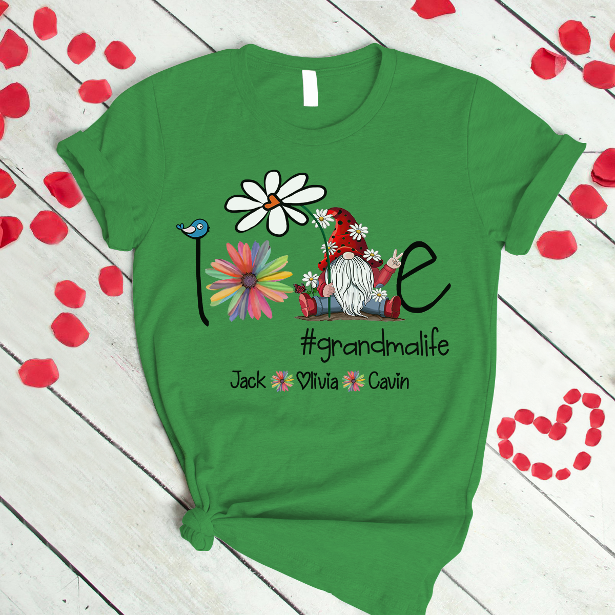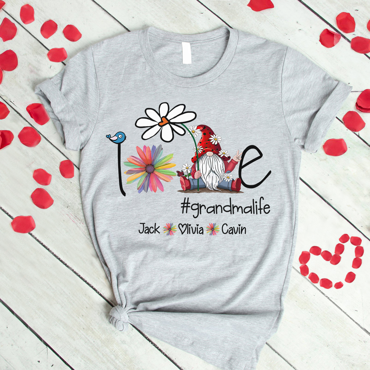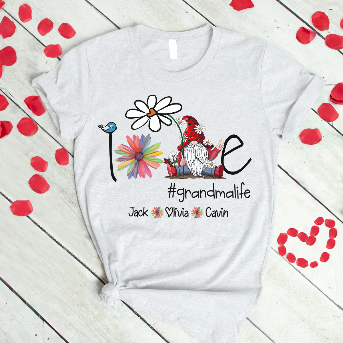 Personalized Love Grandma With Grandkids Gnome White T-Shirt
