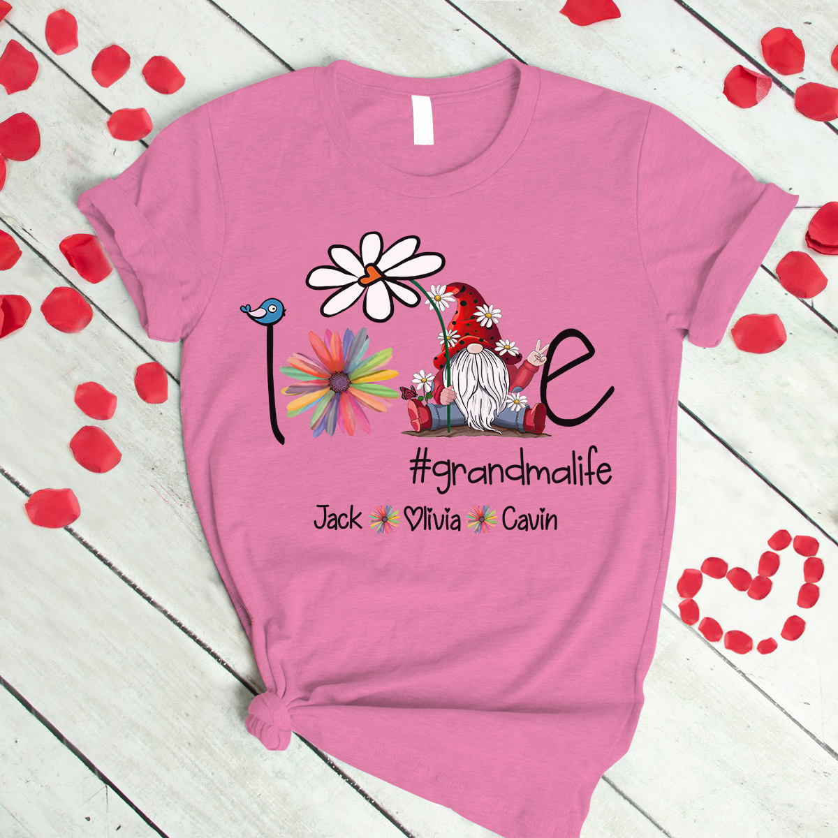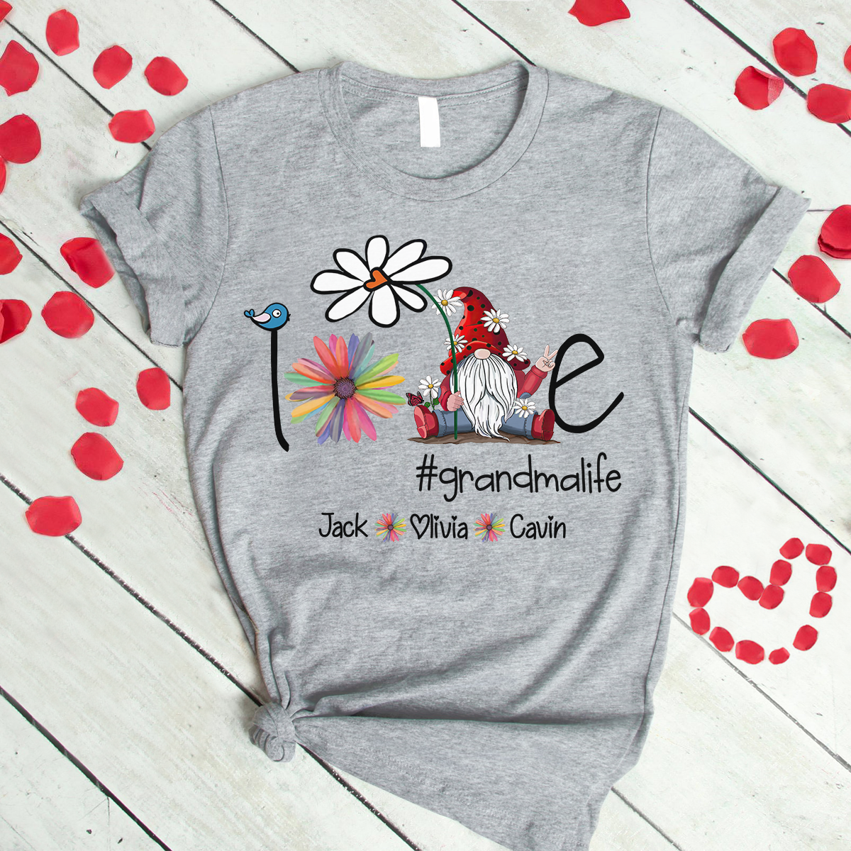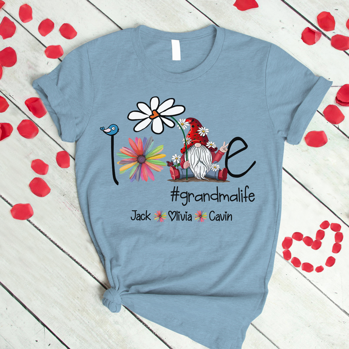 Personalized Love Grandma With Grandkids Gnome White T-Shirt