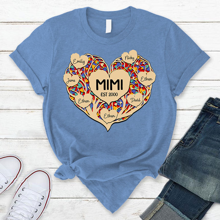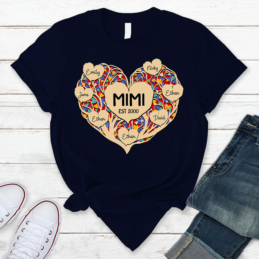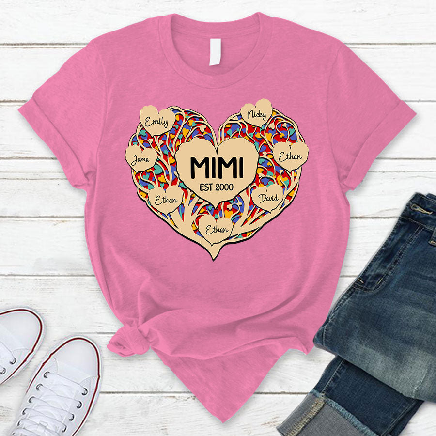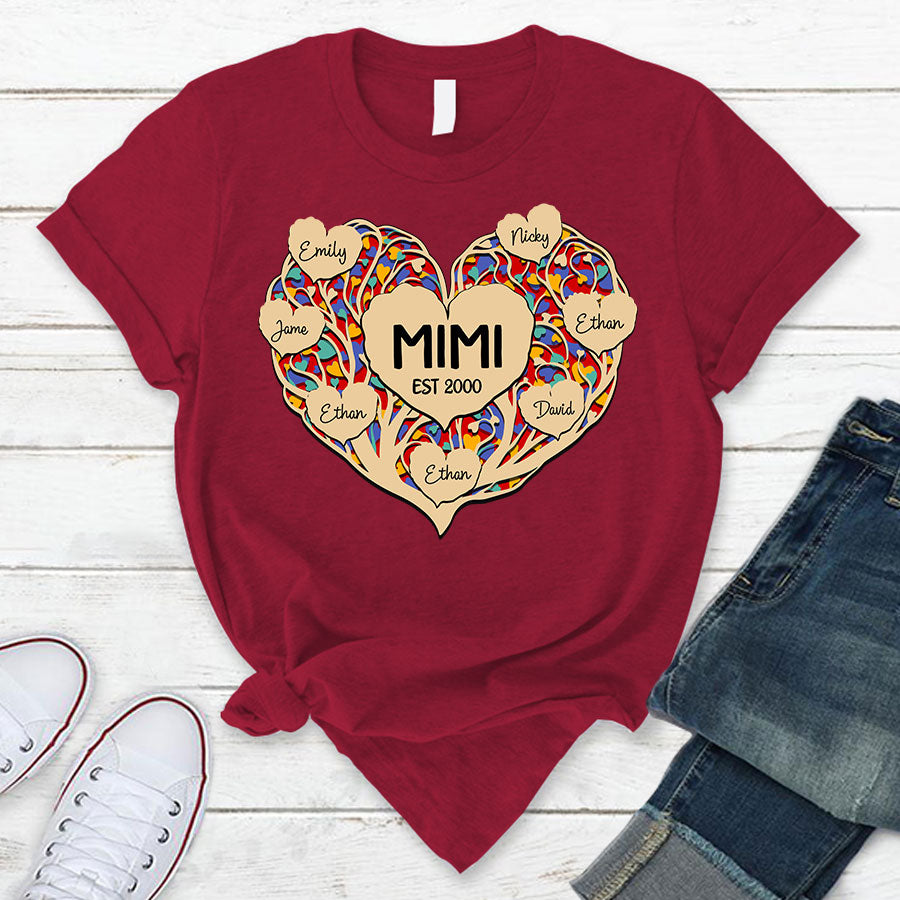 Personalized Love Tree Heart Grandma With Grandkids T-Shirt