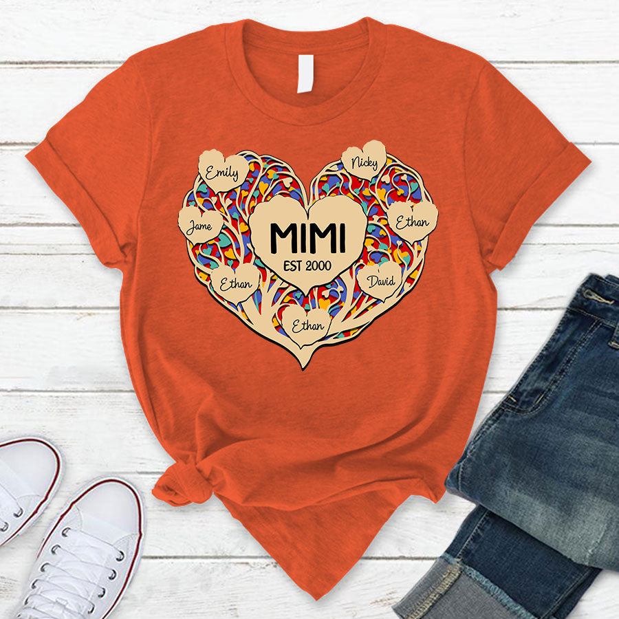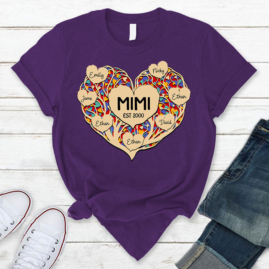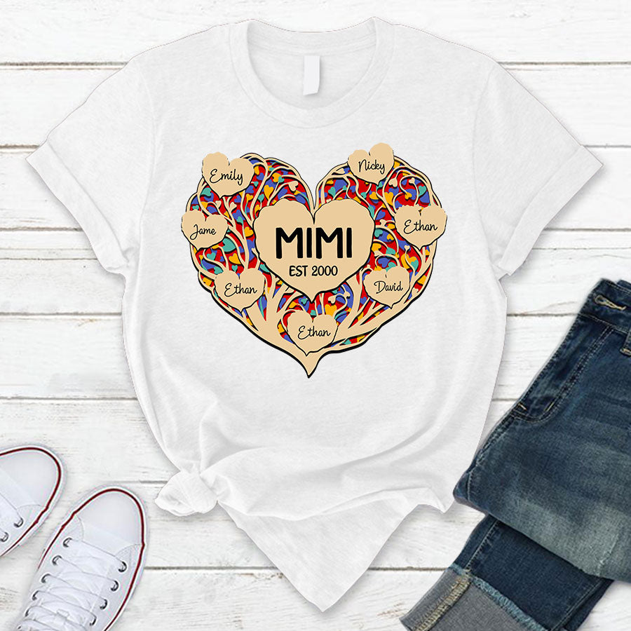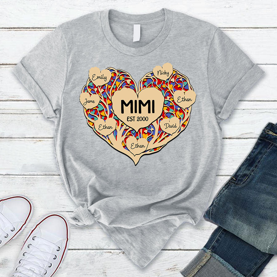 Personalized Love Tree Heart Grandma With Grandkids T-Shirt