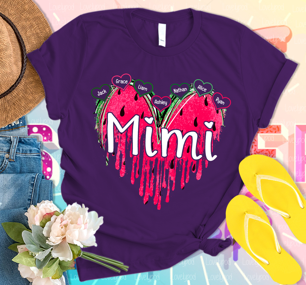 Personalized Mimi Watermelon Heart With Grandkids T-Shirt