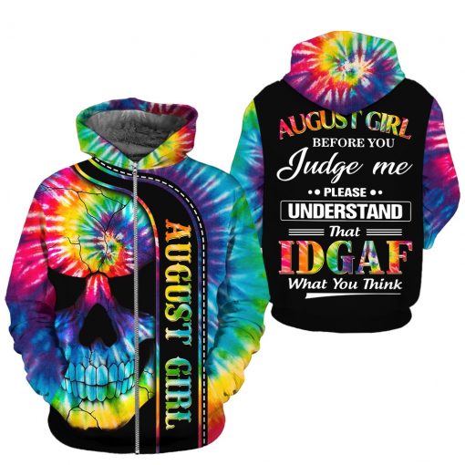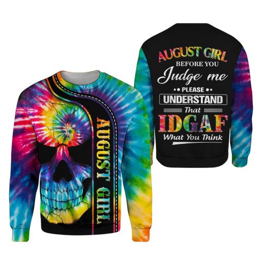 Personalized Name August Girl Skull Die Tye 3D All Over Printed, Styles 3D Print Casual Tops For Women Tees