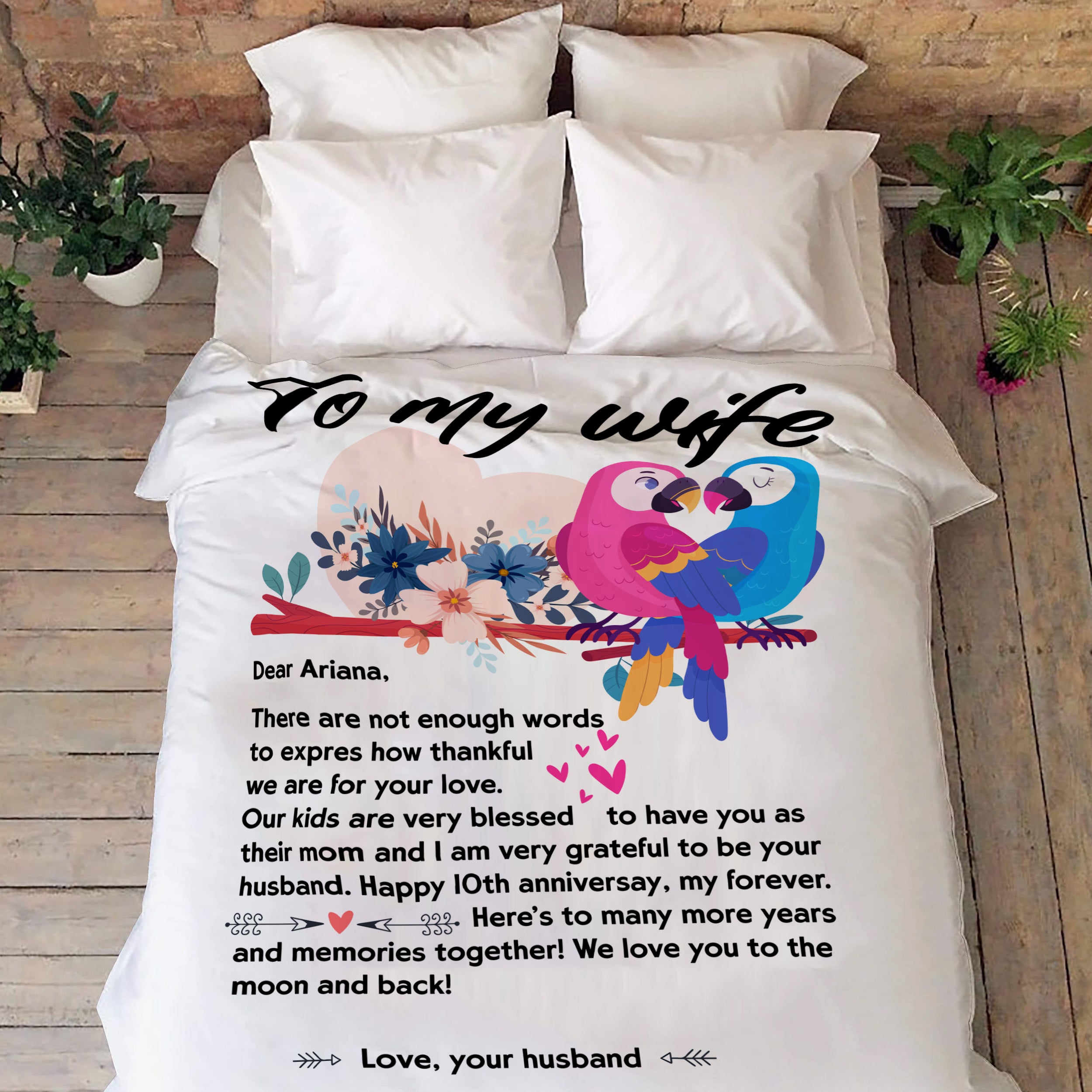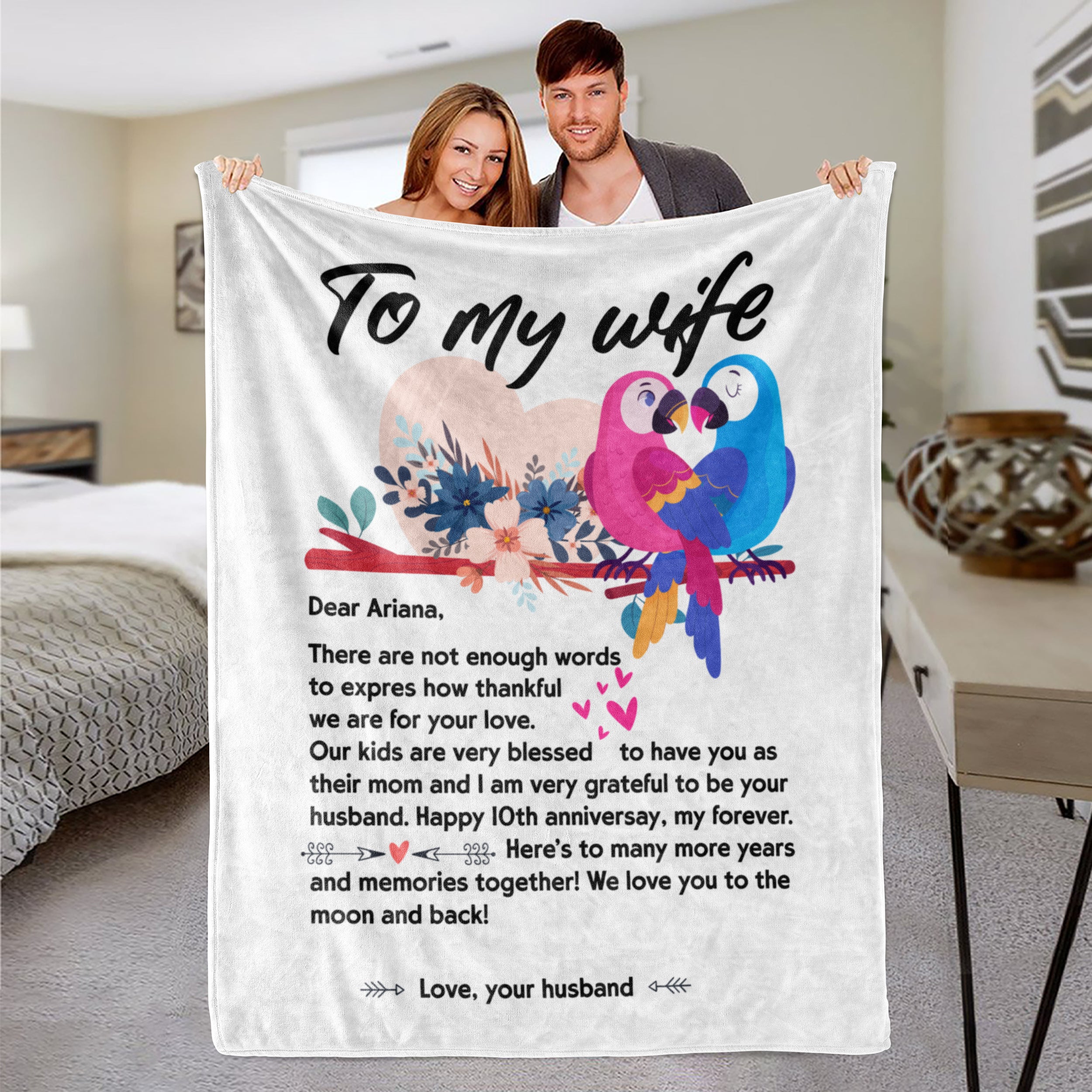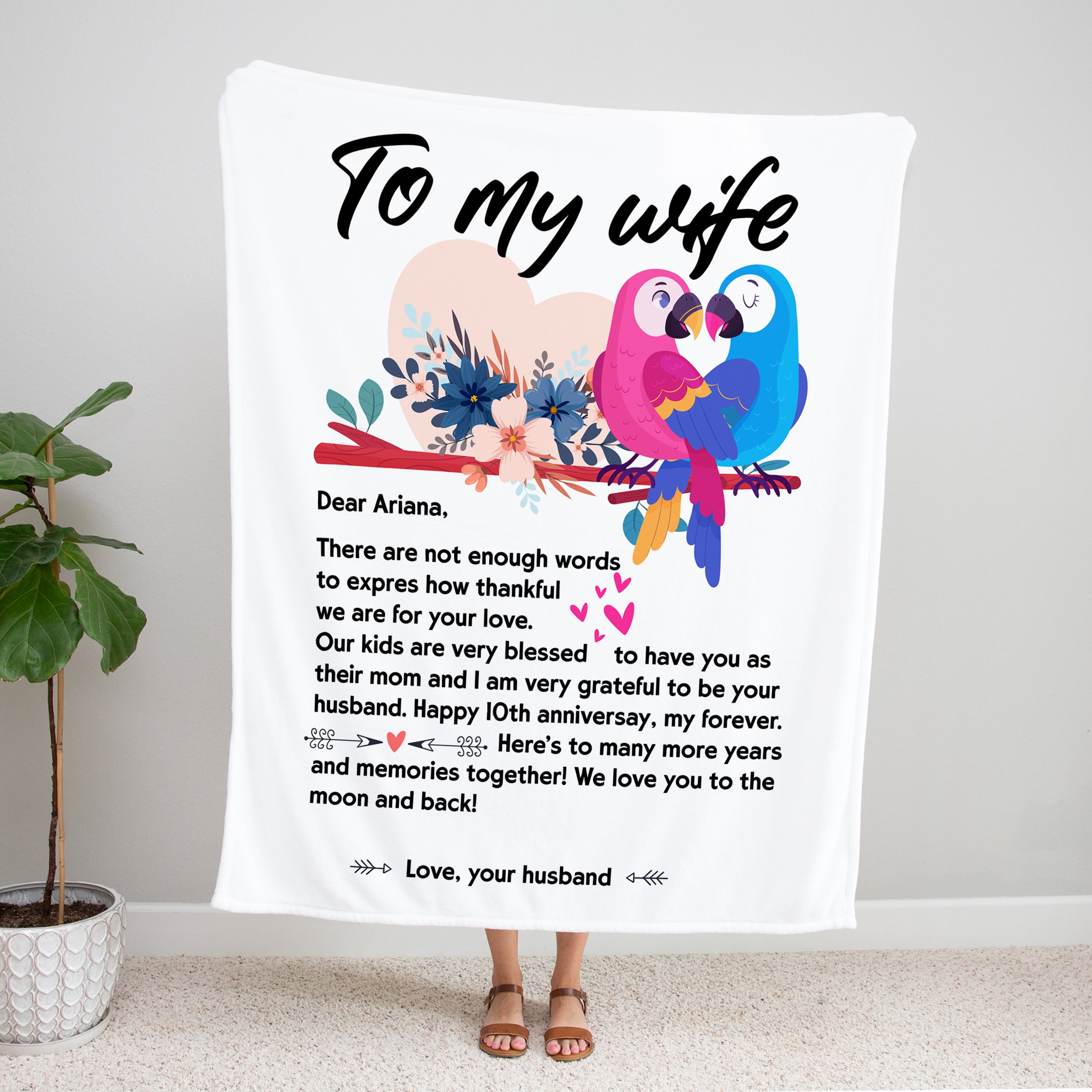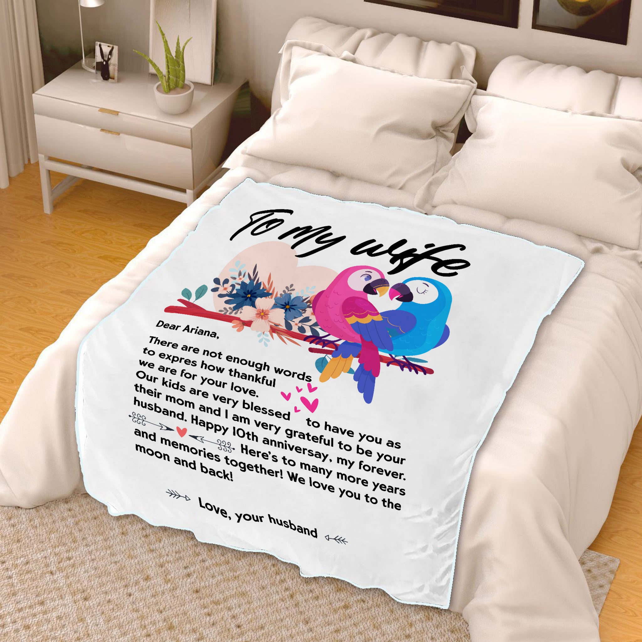 Personalized Name Letter To My Wife Parrot Blanket