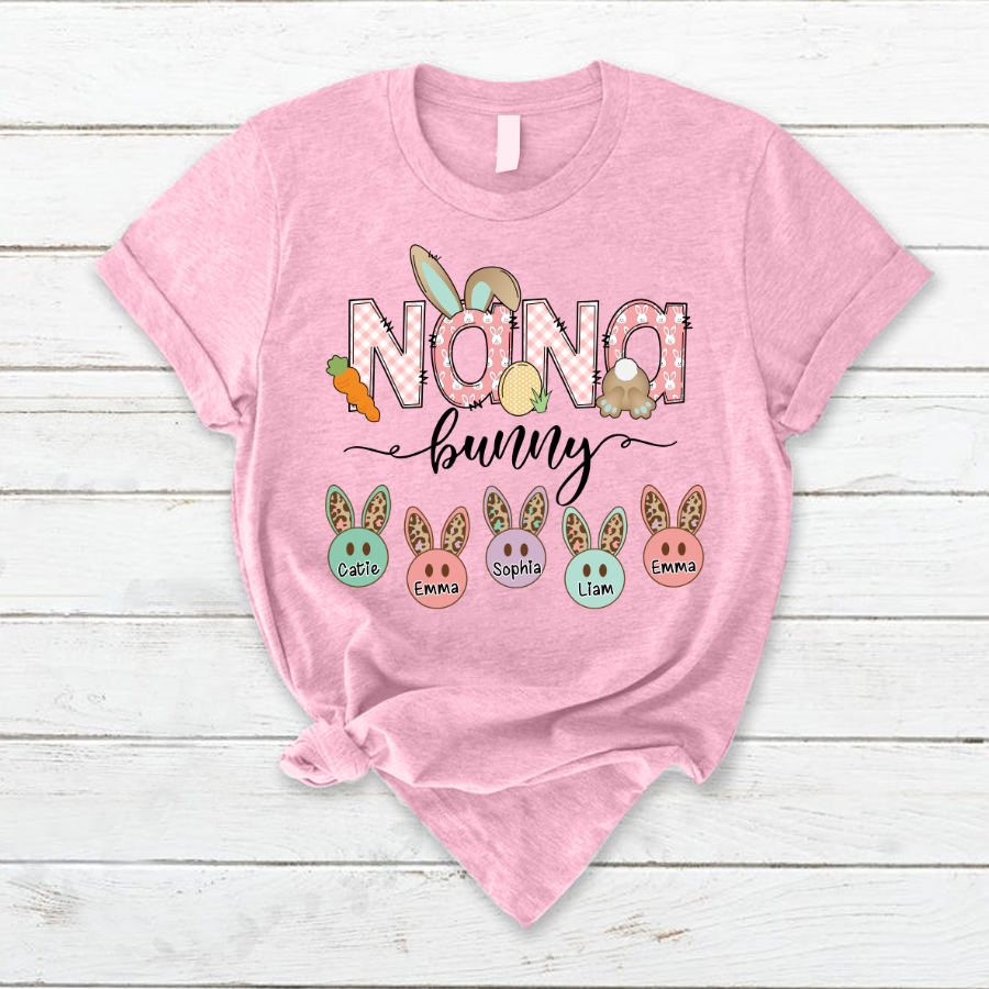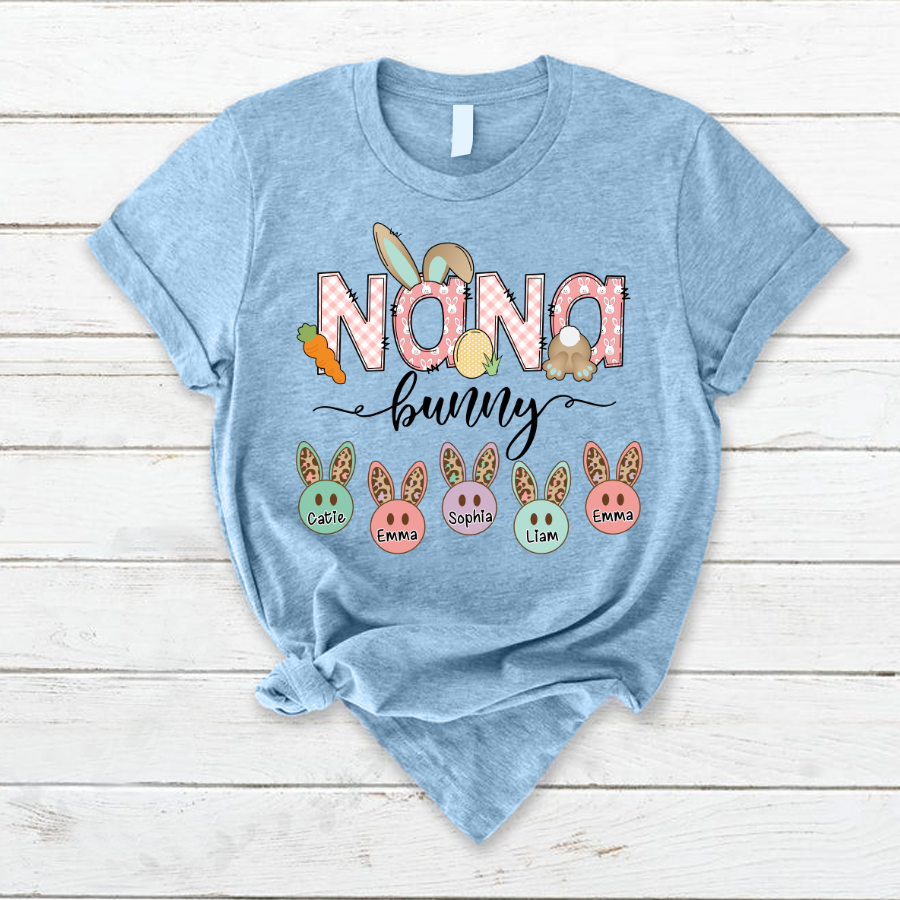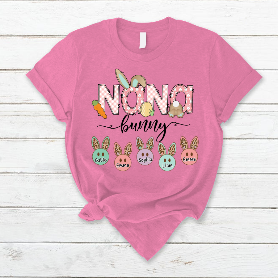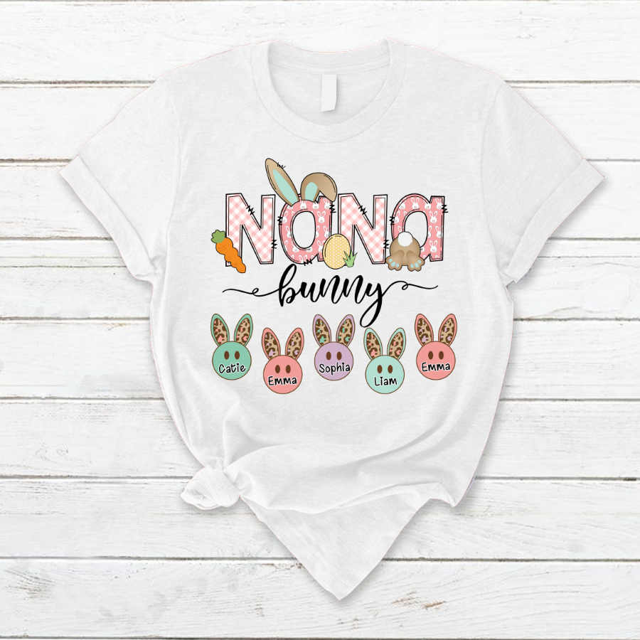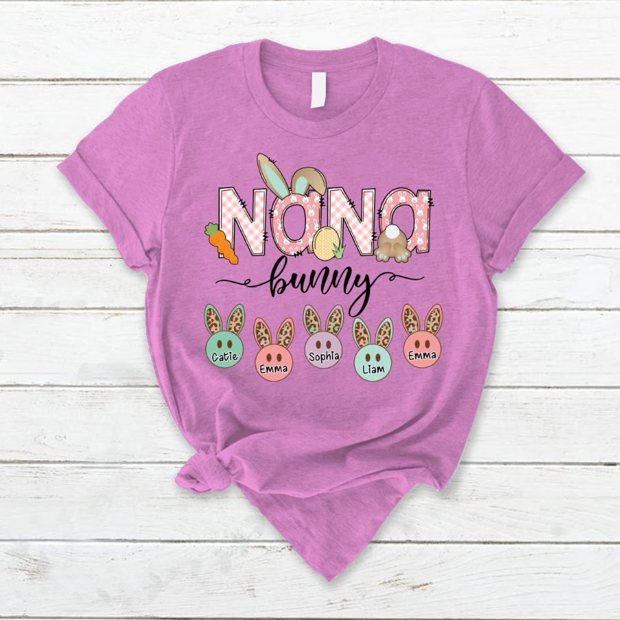 Personalized Nana Bunny And Grandkids Cute Easter T-Shirt