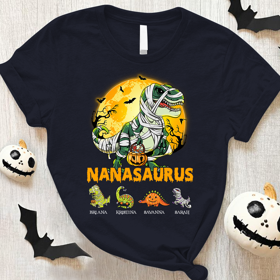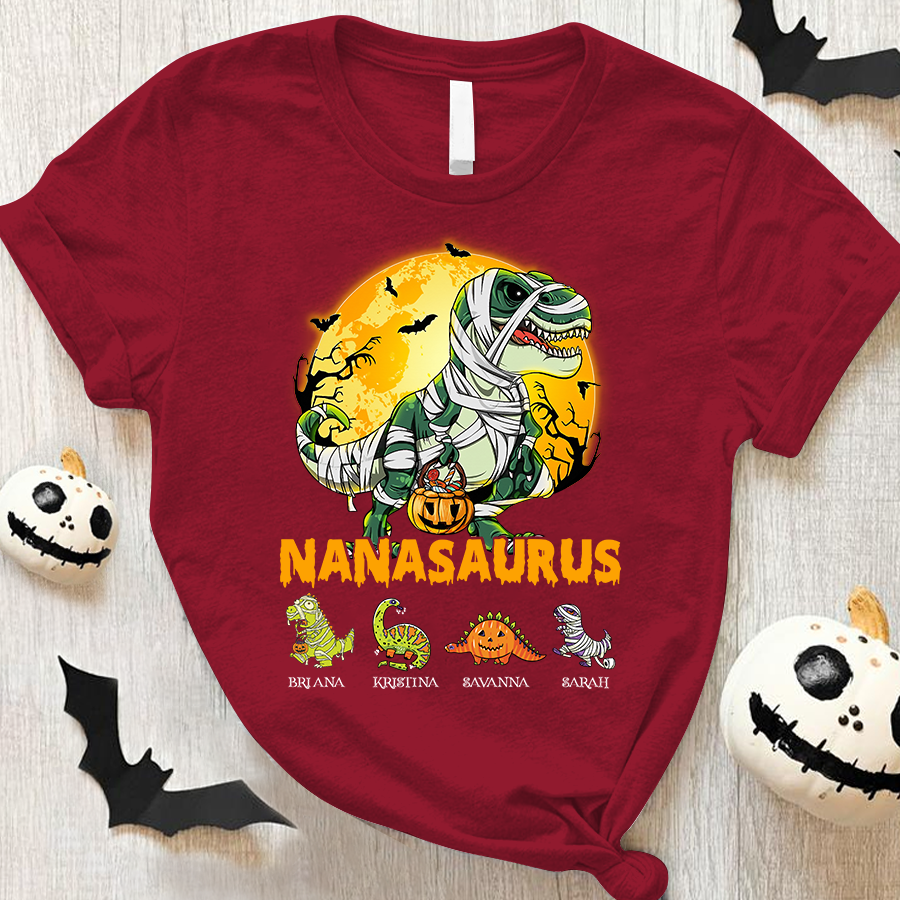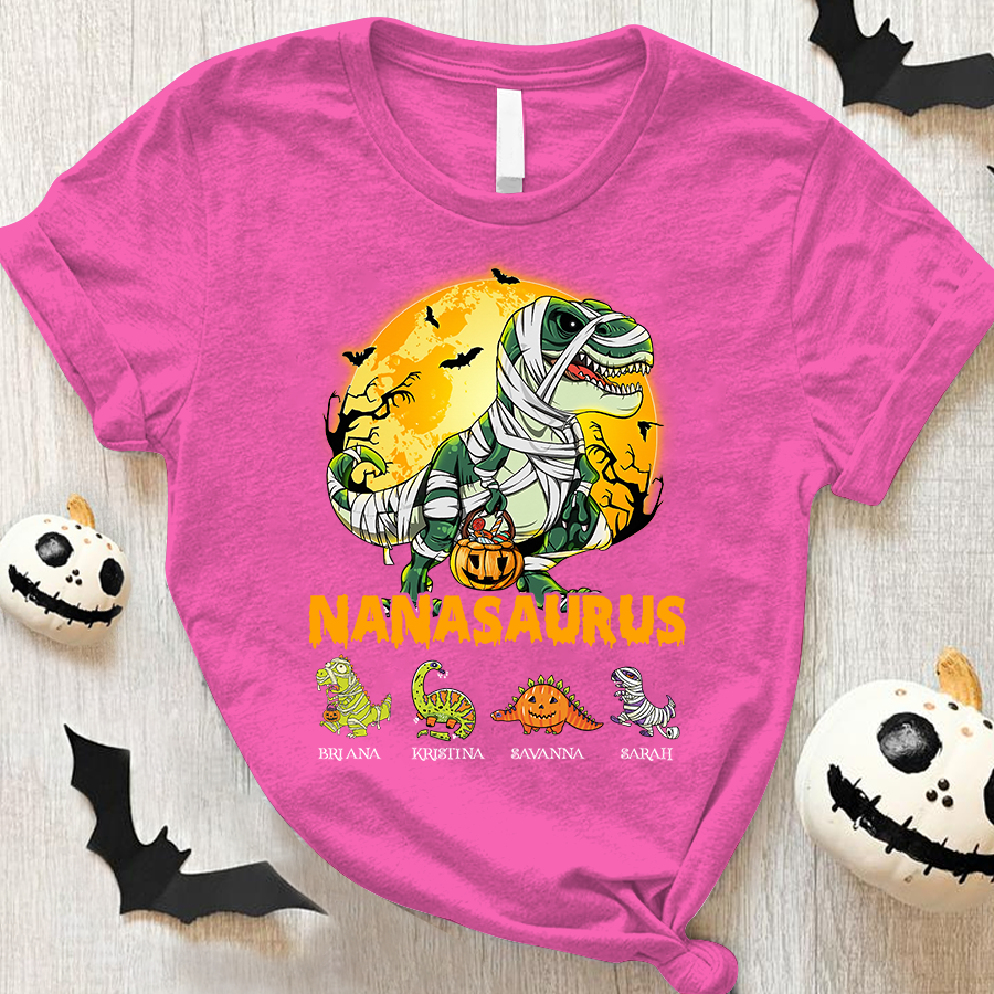 Personalized Nana Saurus With Grandkids Halloween T-Shirt