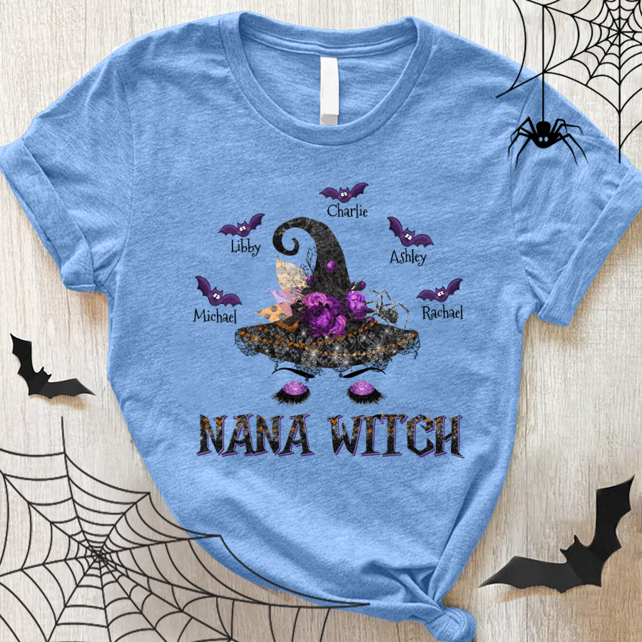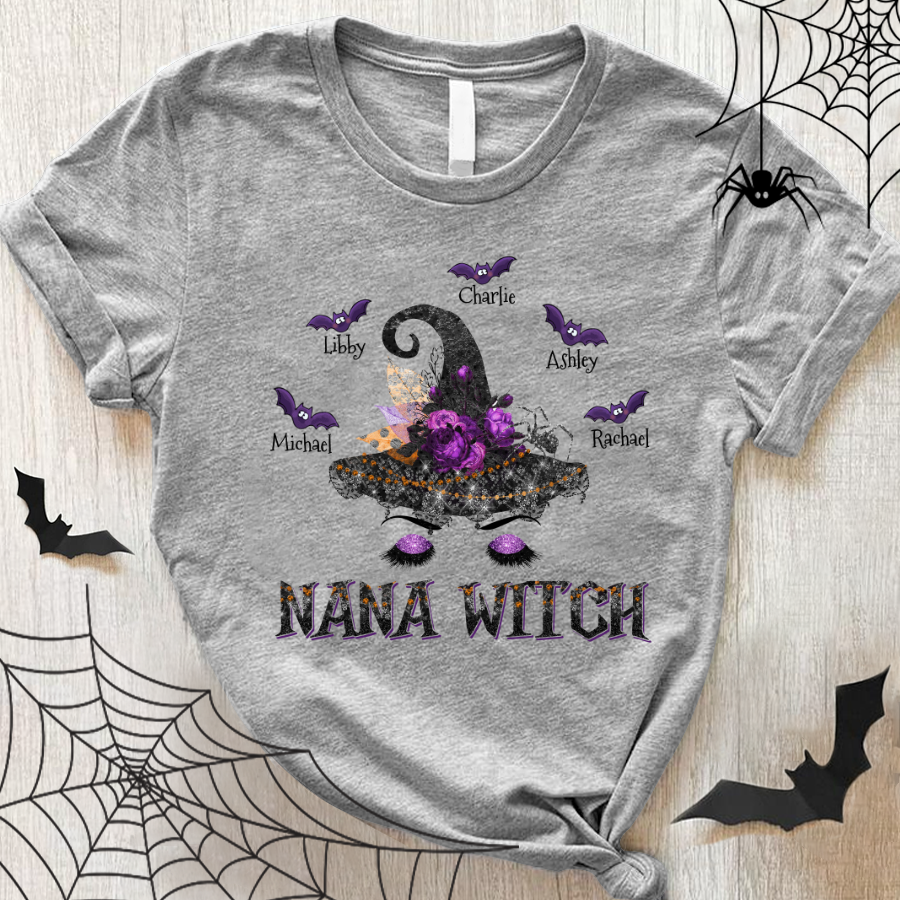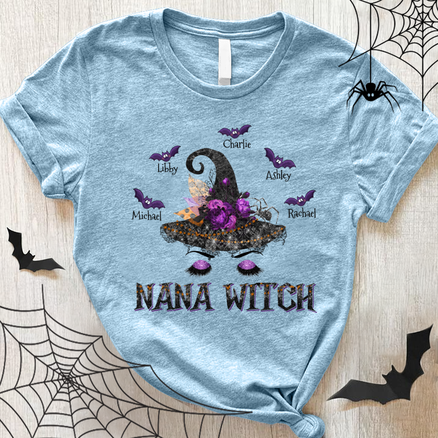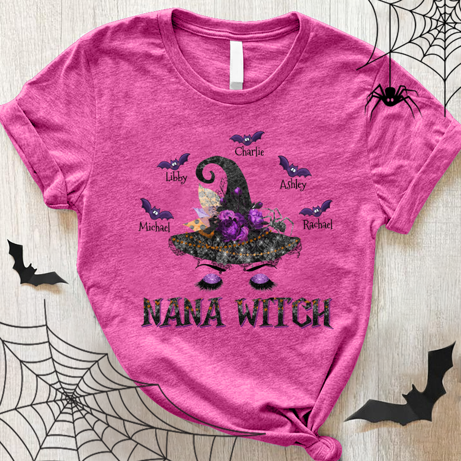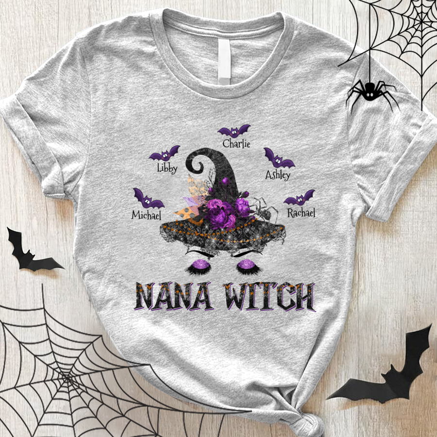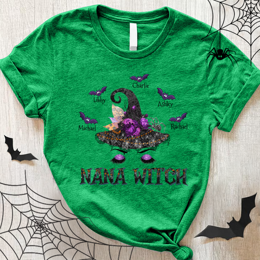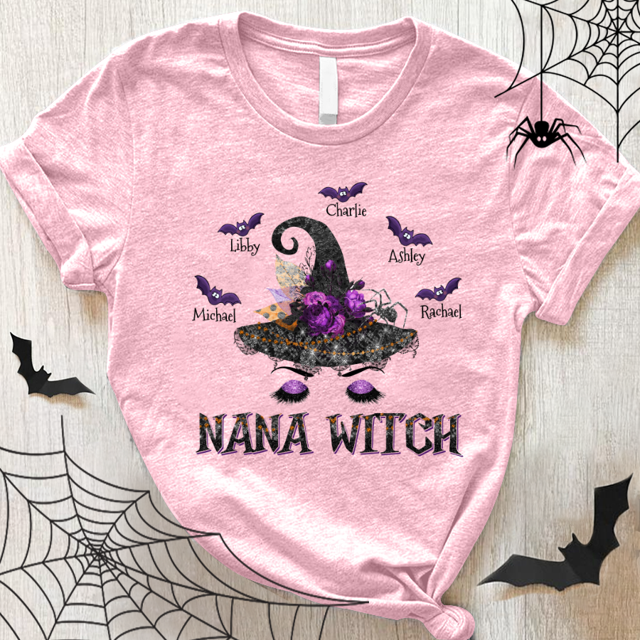 Personalized Nana Witch Hat Halloween With Grandkids Shirt Gift