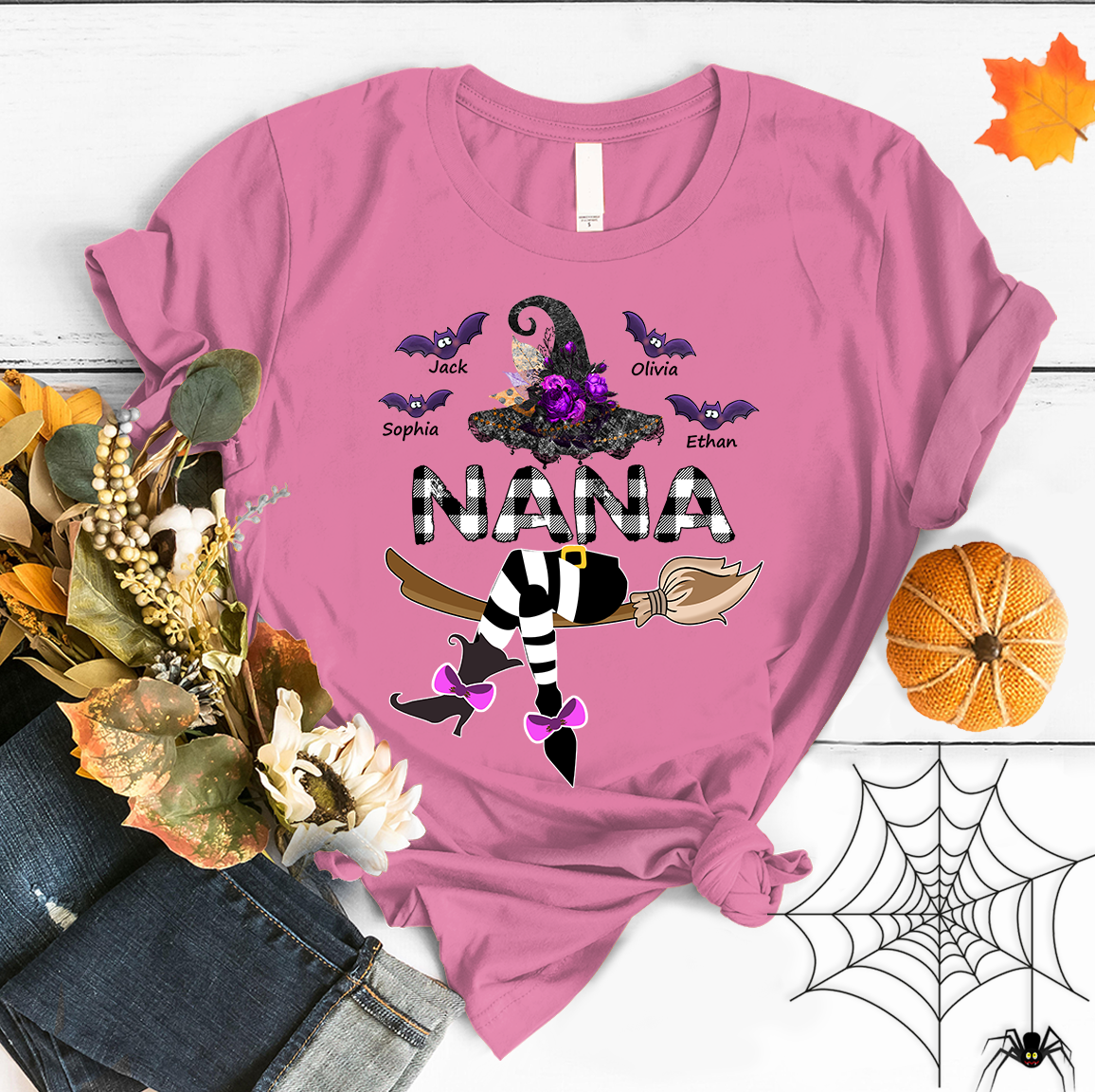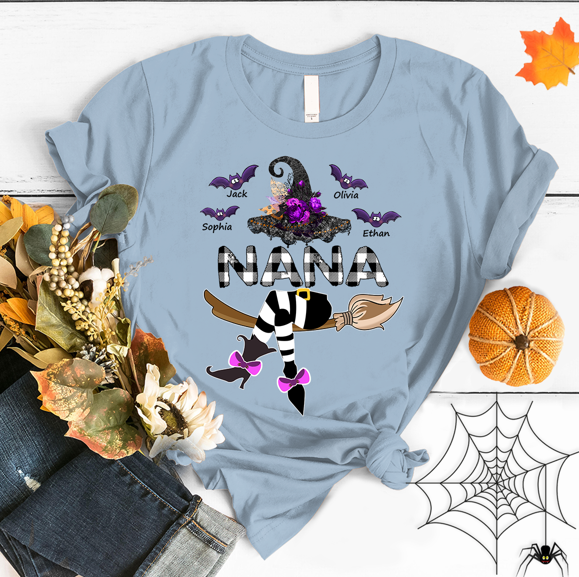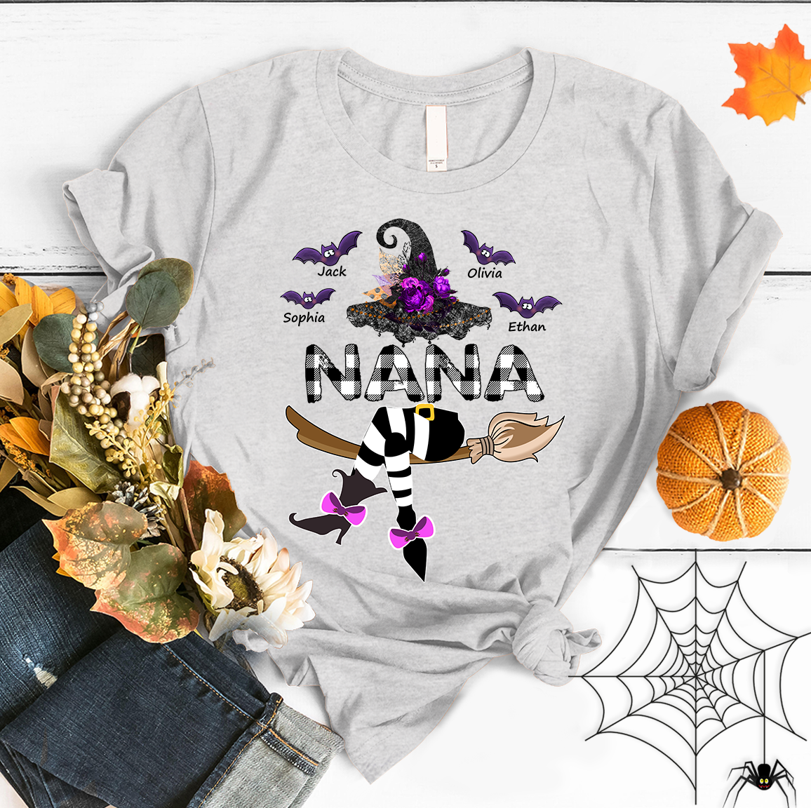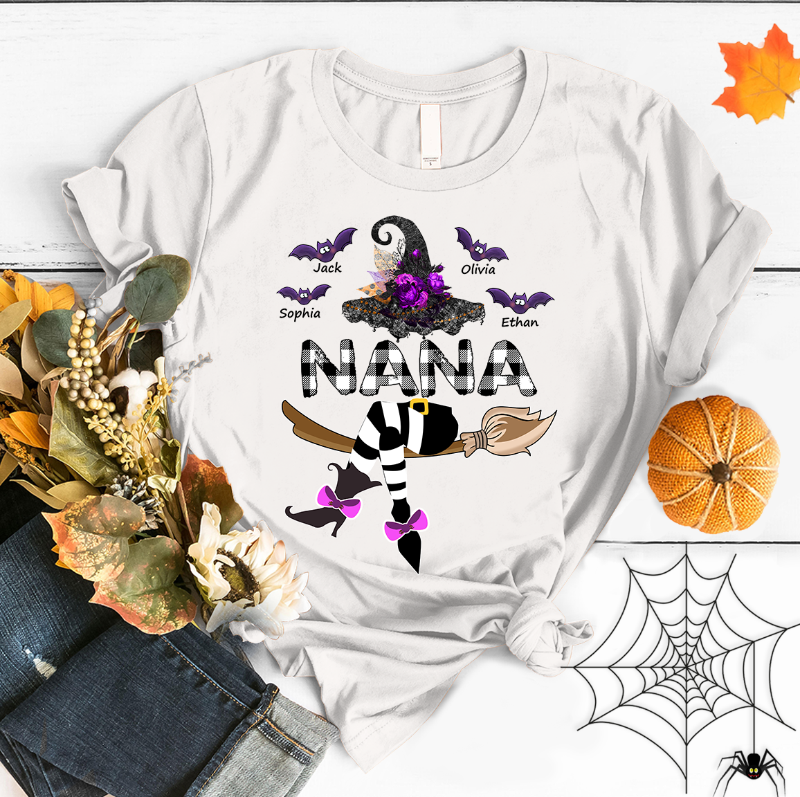 Personalized Nana With Grandkids Witch Halloween 2021 Family T-Shirt