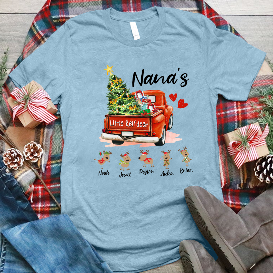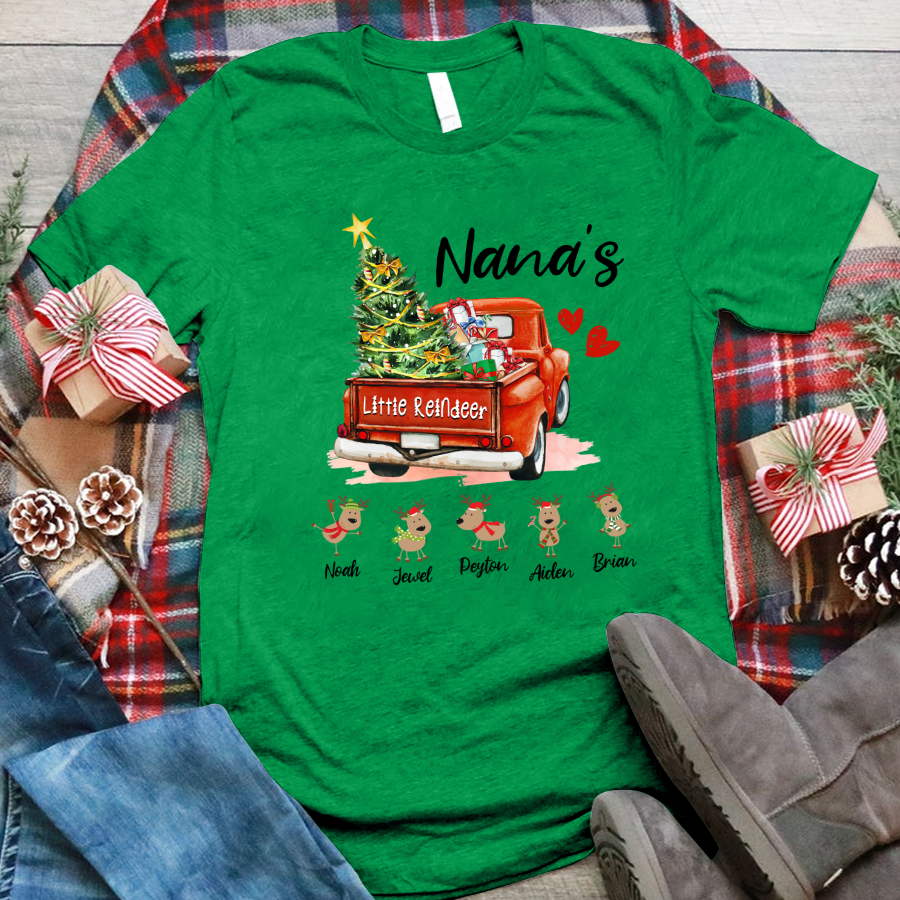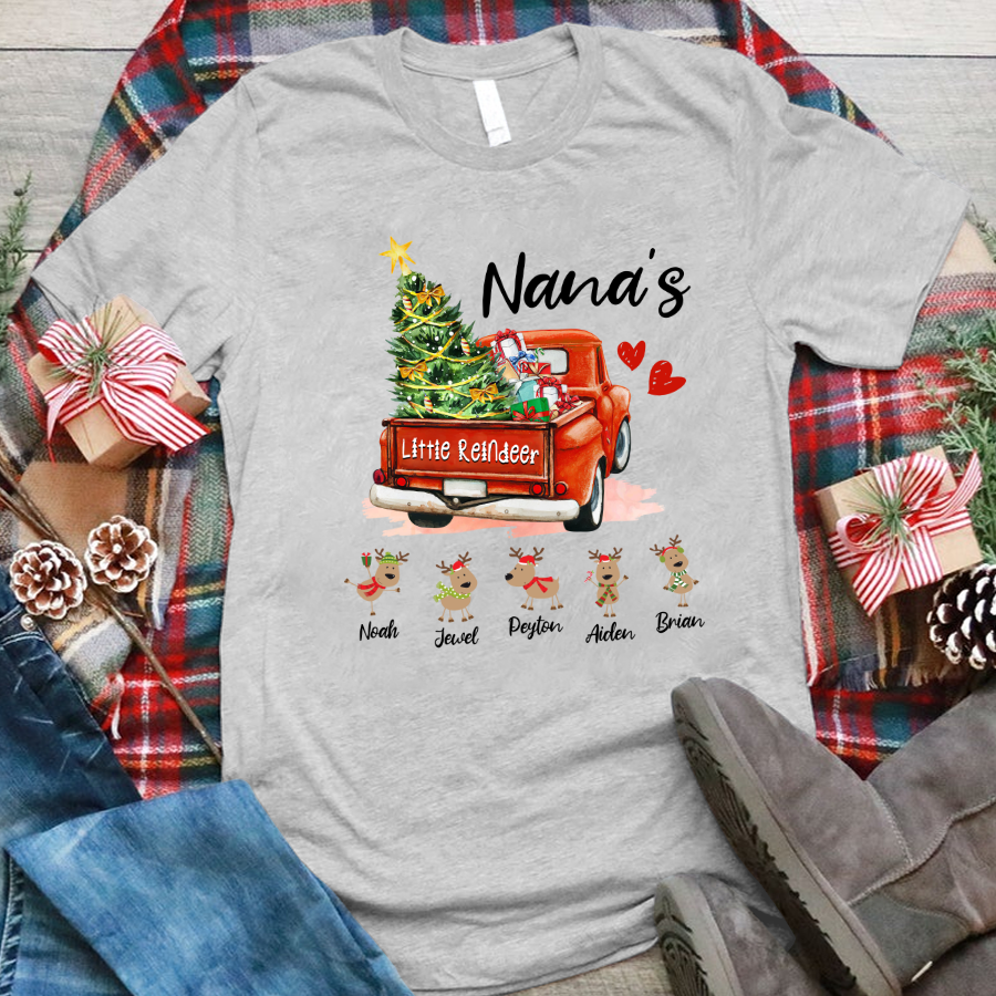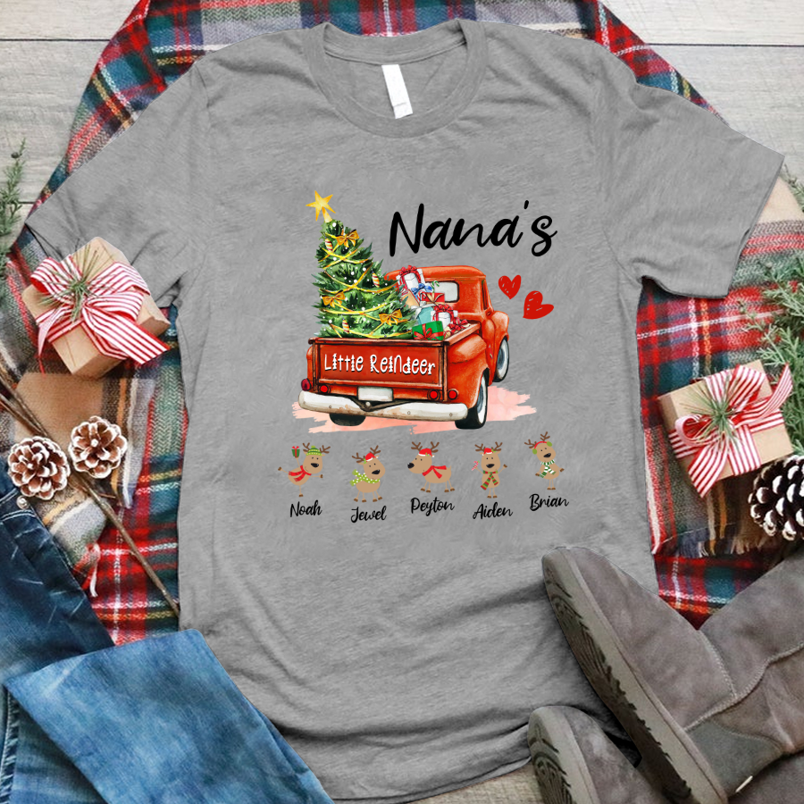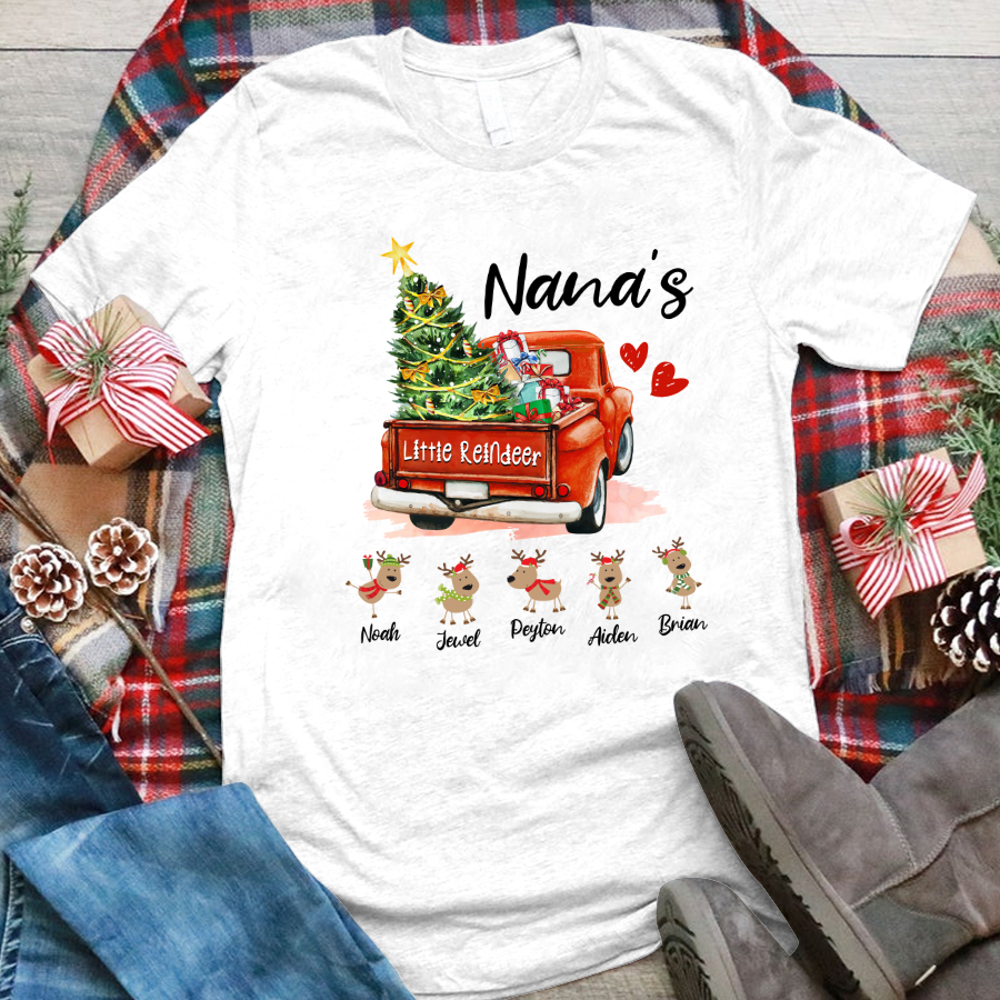 Personalized Nana’S Little Reindeer Truck, Nana Christmas Shirt With Grandkids Name