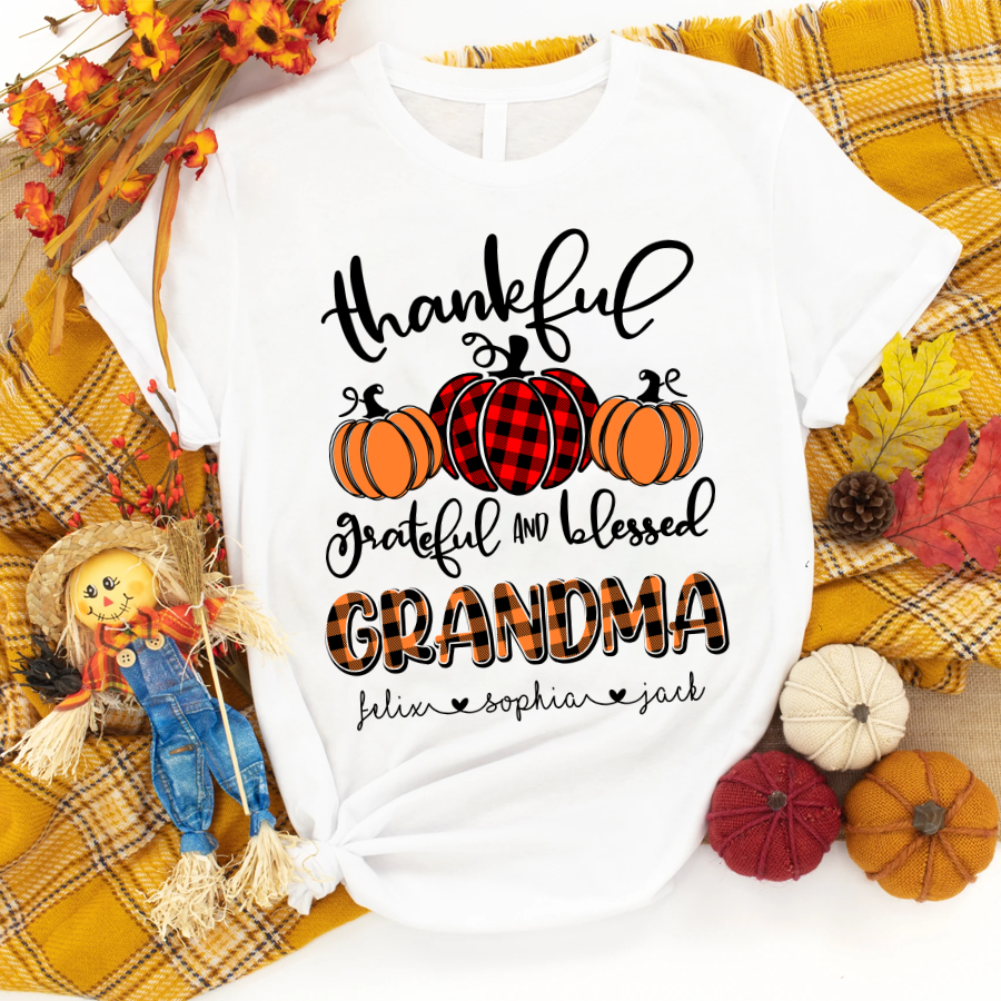 Personalized Thankful Grateful Blessed Grandma Shirt, Autumn Shirt