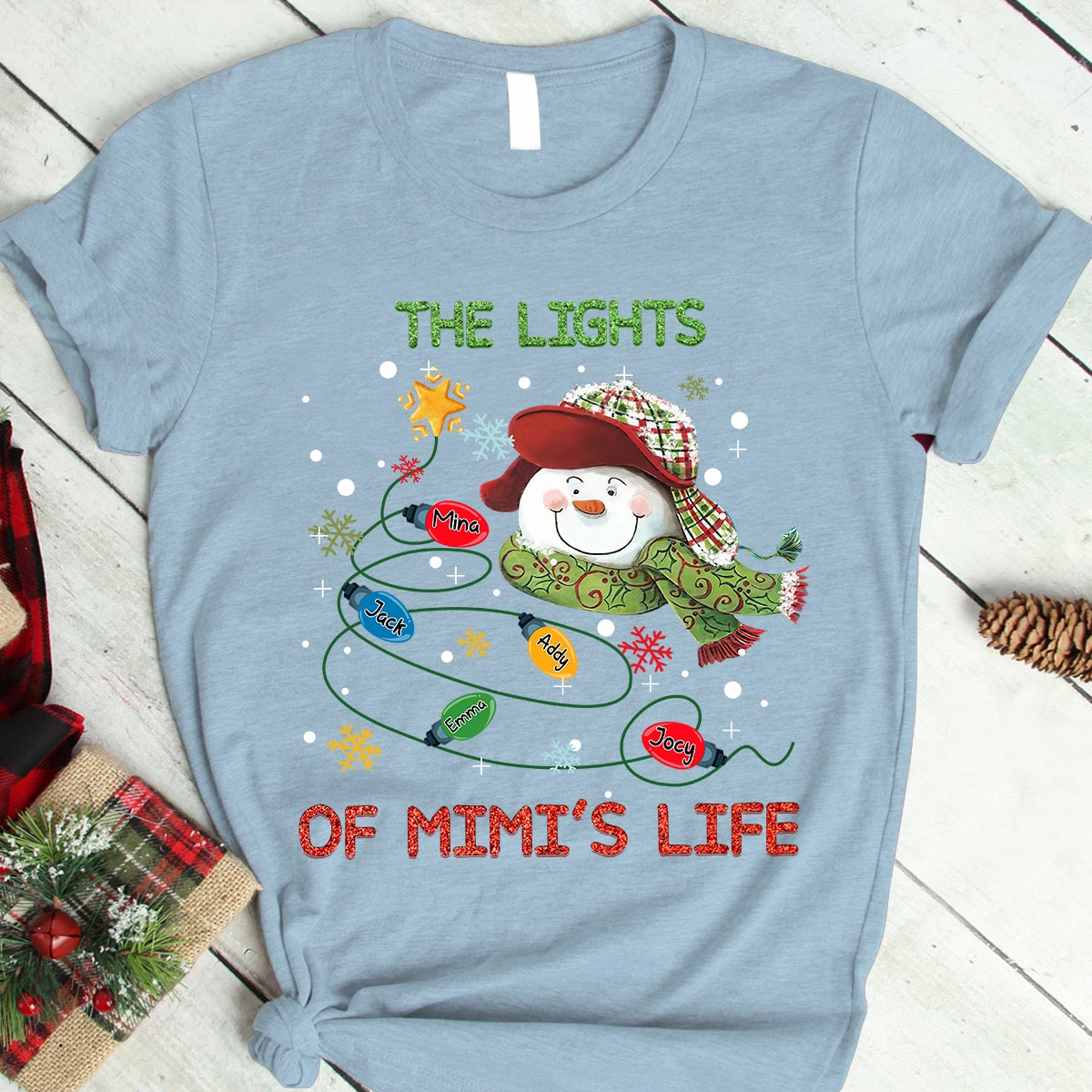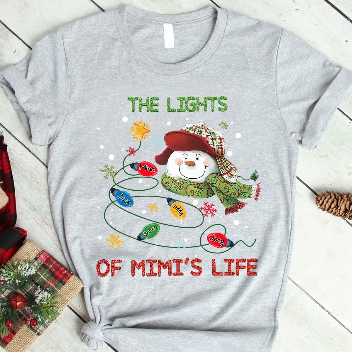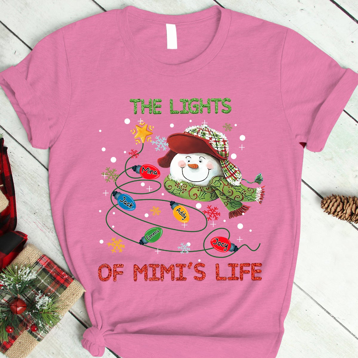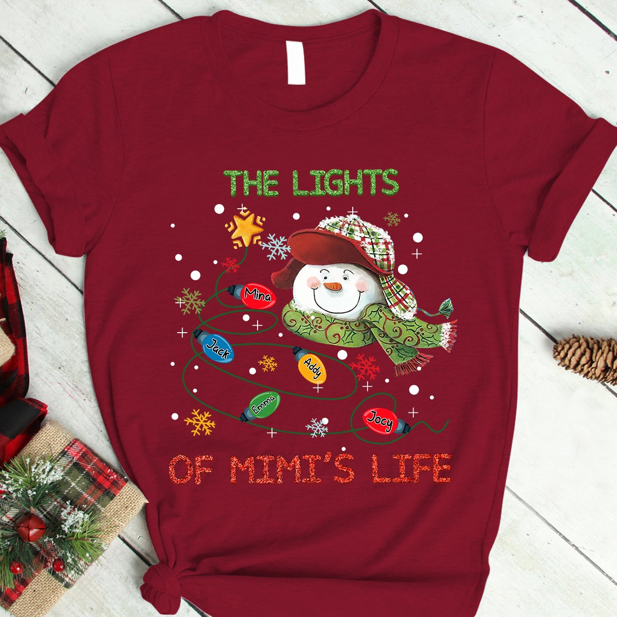 Personalized The Lights Of Grandma’S Life Shirt, Grandma’S Snowman Shirt, Christmas Lights Grandkids Christmas