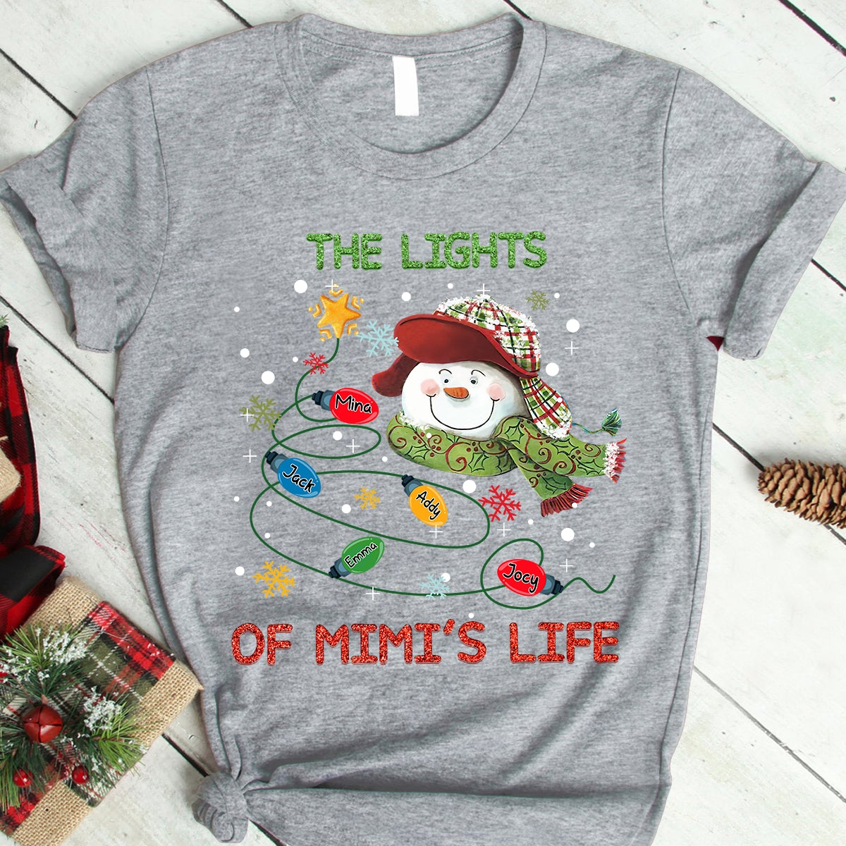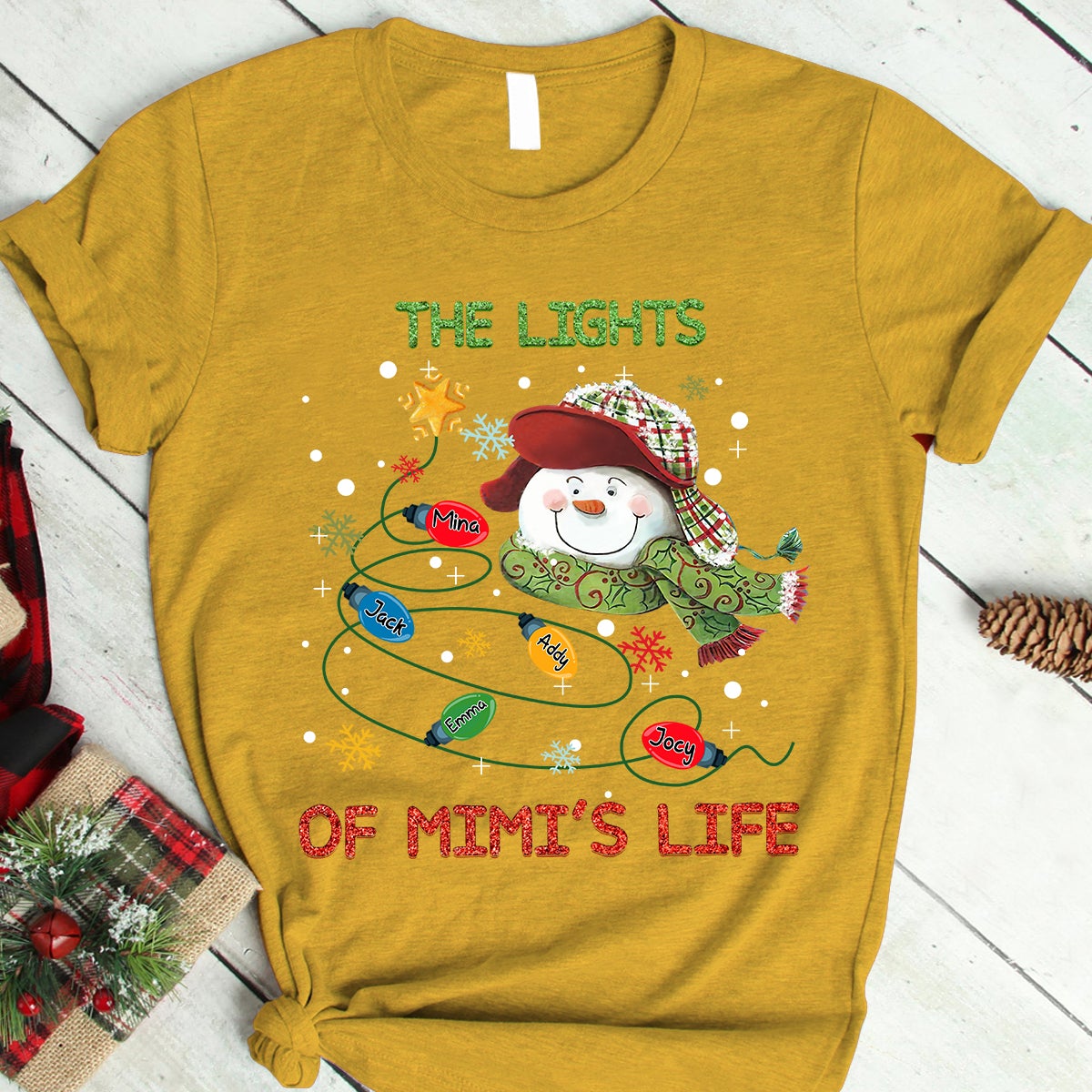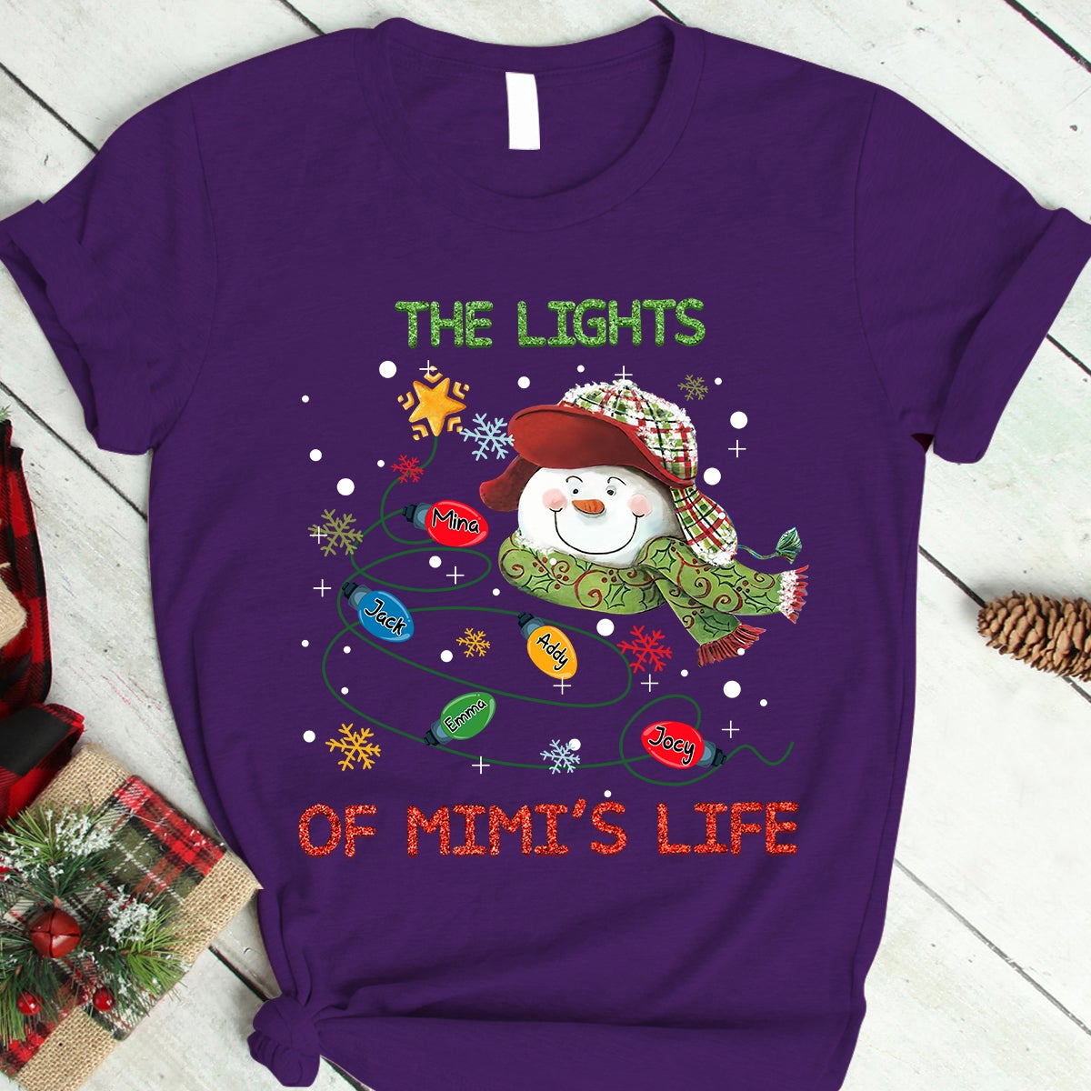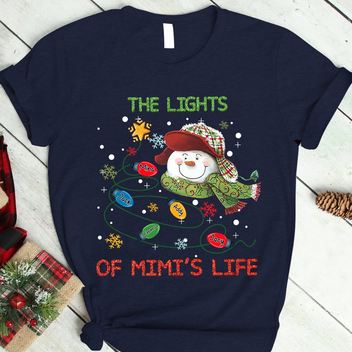 Personalized The Lights Of Grandma’S Life Shirt, Grandma’S Snowman Shirt, Christmas Lights Grandkids Christmas