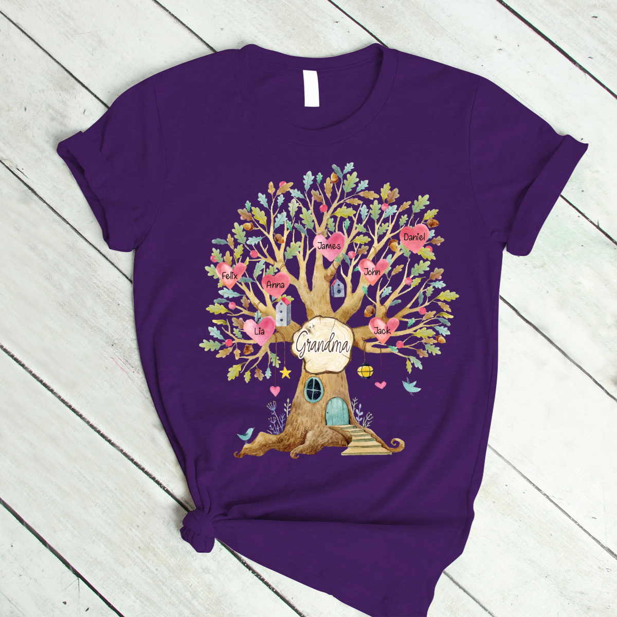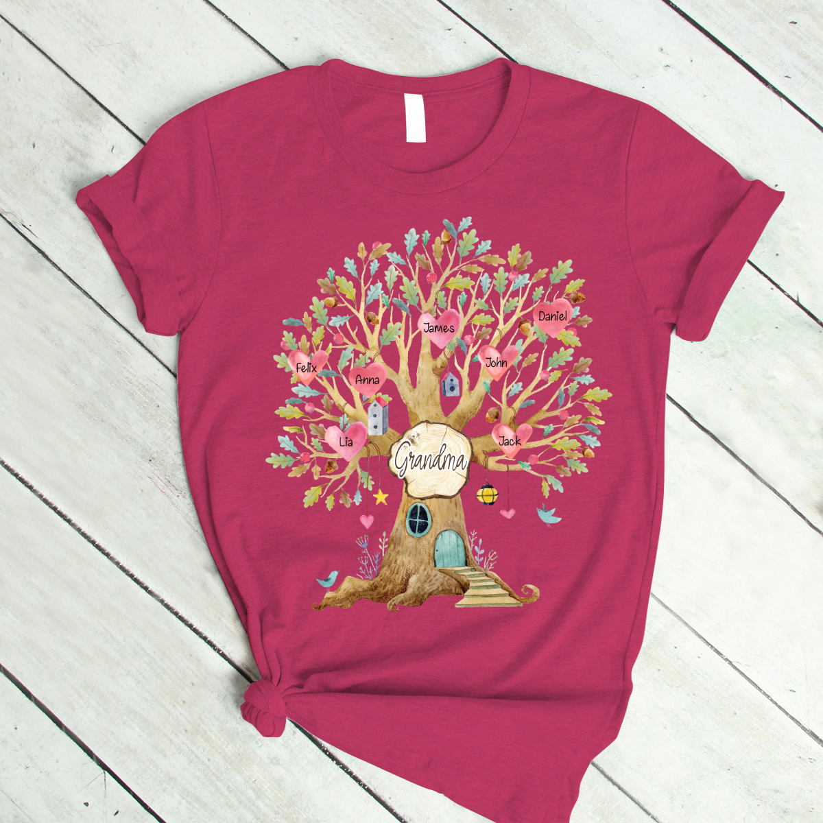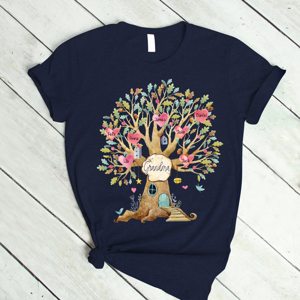 Personalized Tree House Grandma With Grandkids Heart T-Shirt