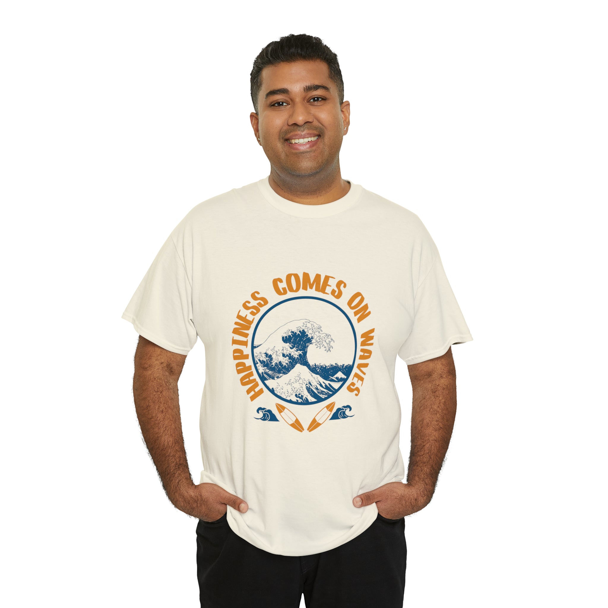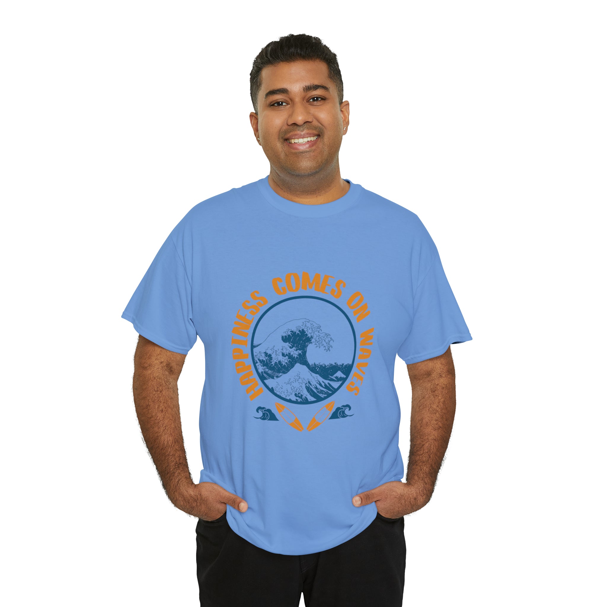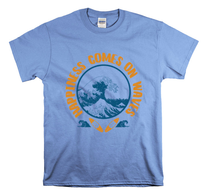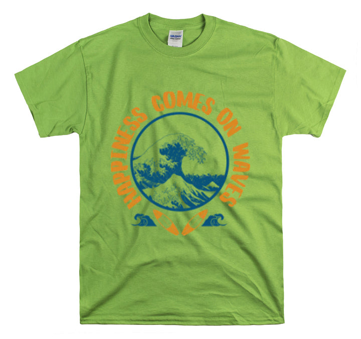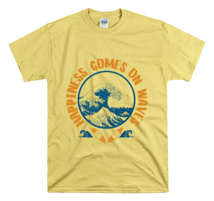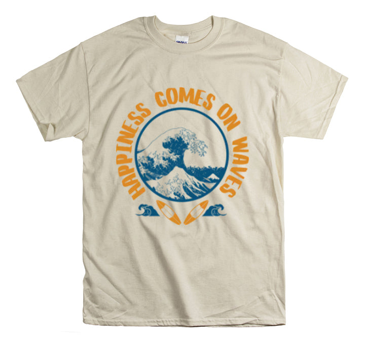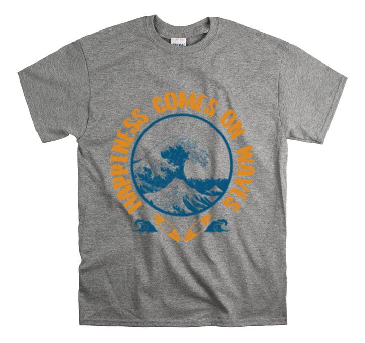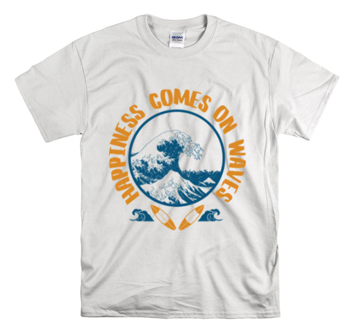 Shirt Happiness Comes On Waves Tropical Vacation Summer Beach Coastal Graphic T-Shirt Gift Unisex Heavy Cotton Tee