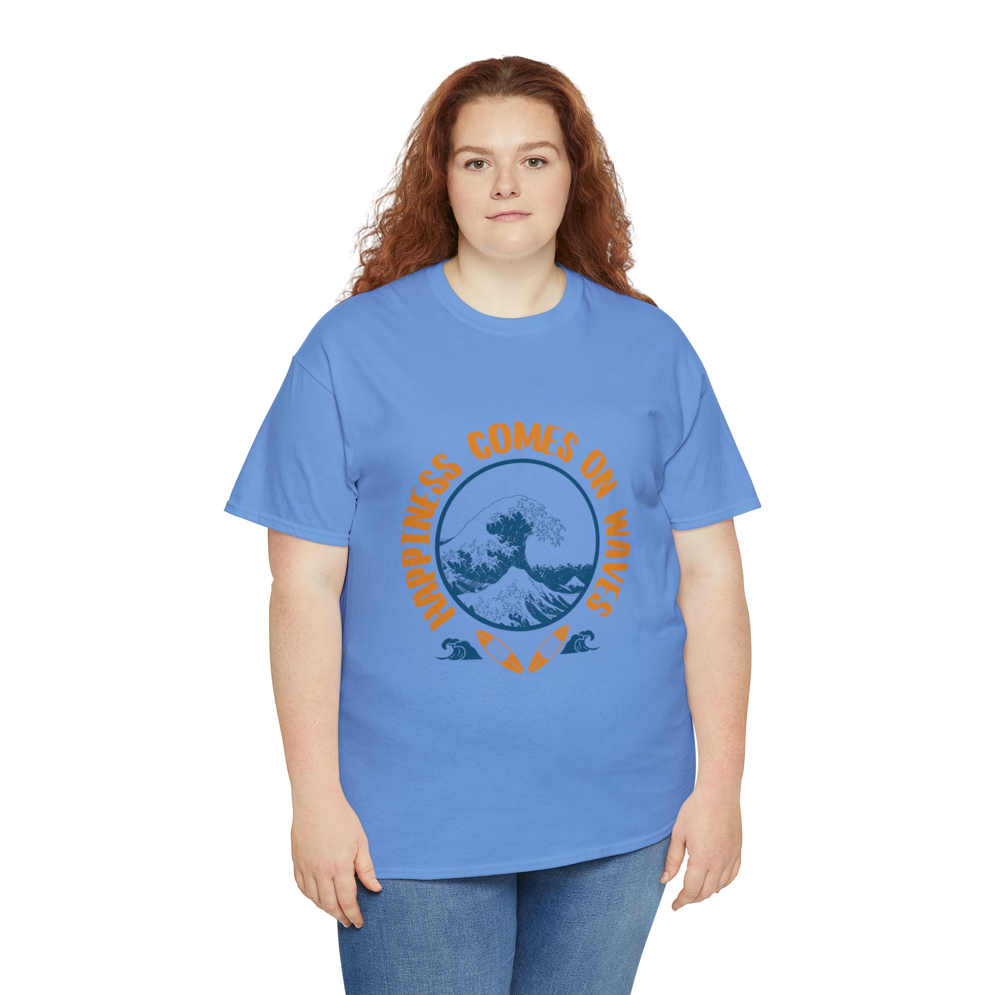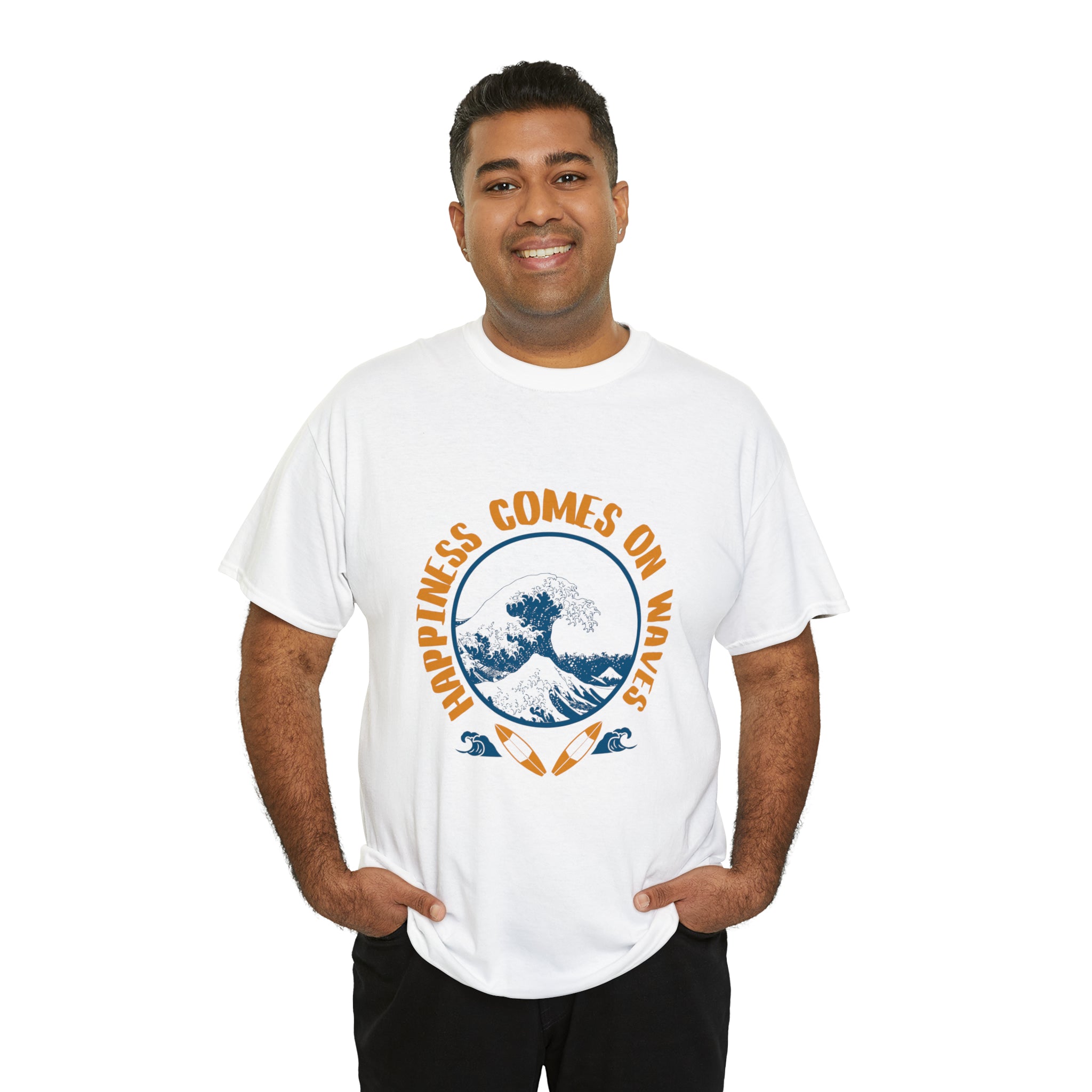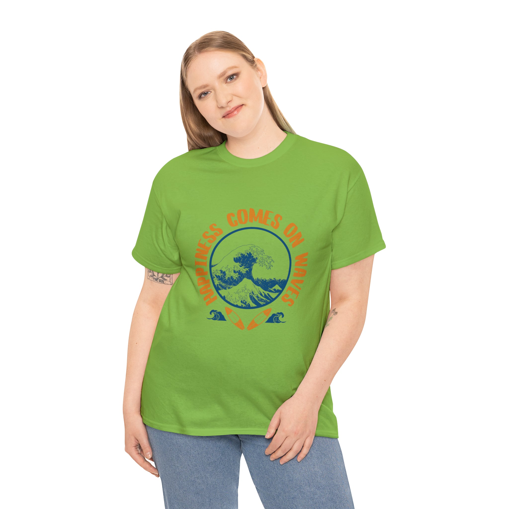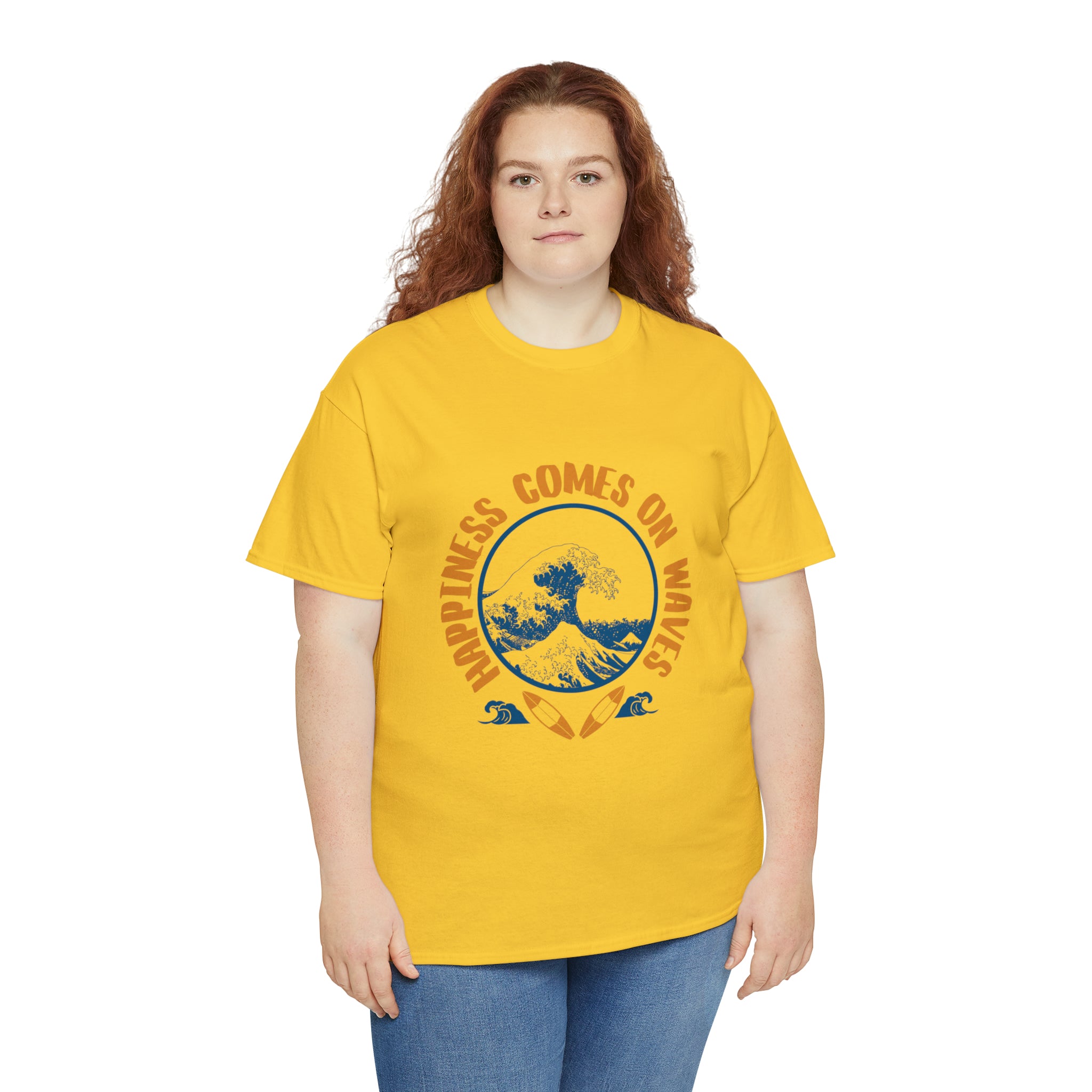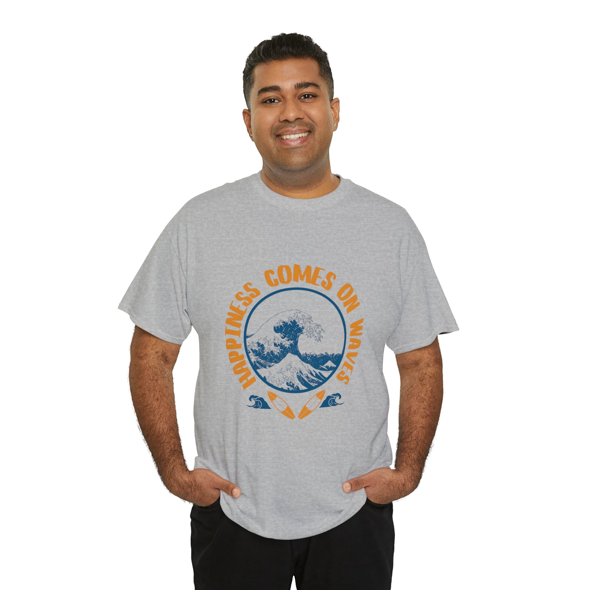 Shirt Happiness Comes On Waves Tropical Vacation Summer Beach Coastal Graphic T-Shirt Gift Unisex Heavy Cotton Tee